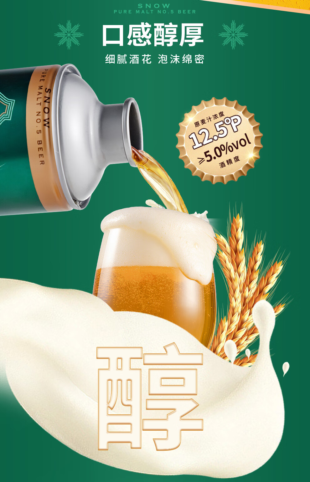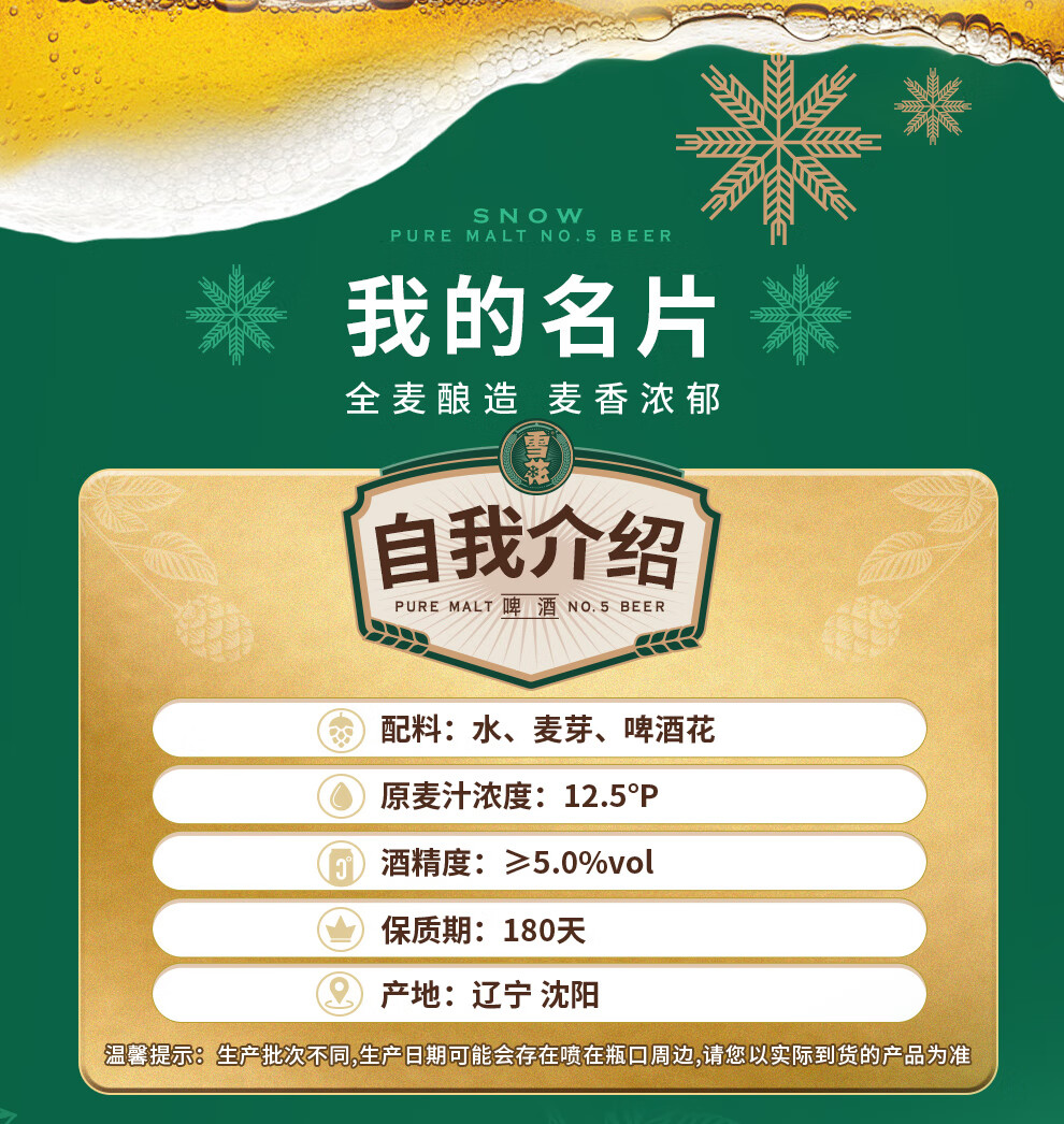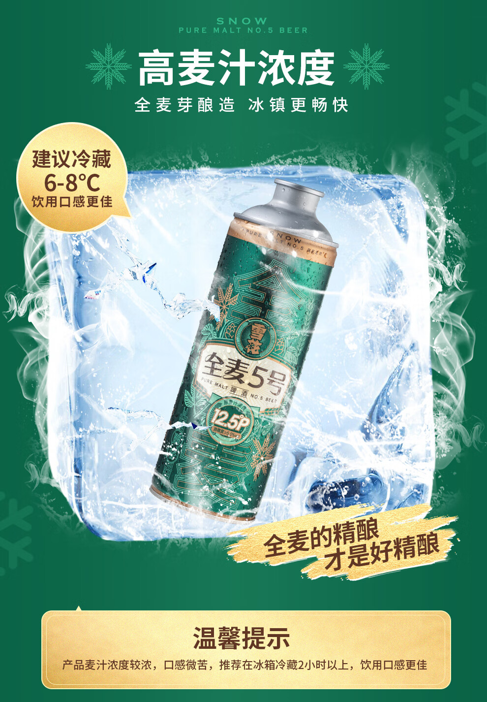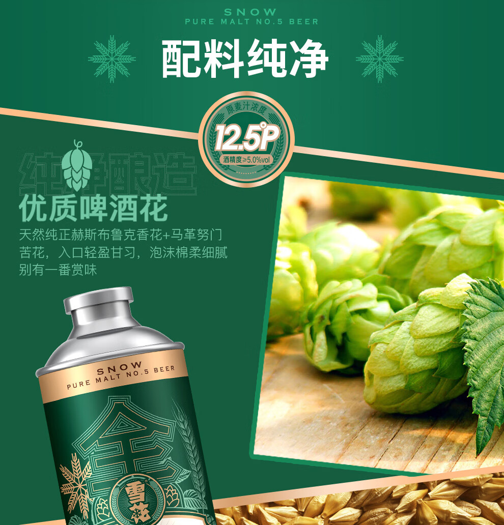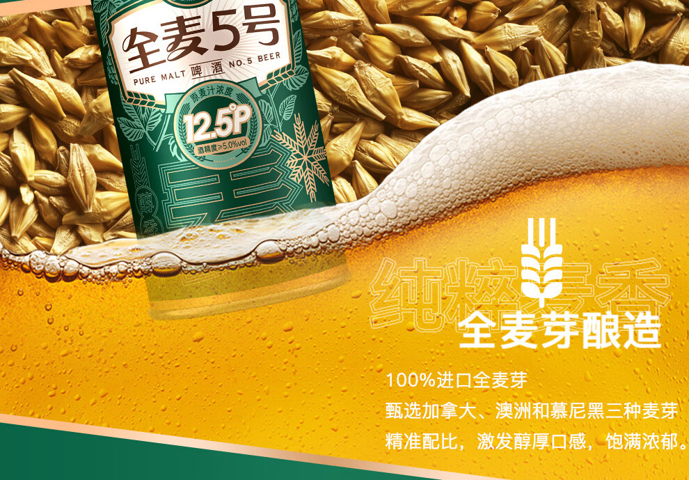 雪花啤酒【1L微醺款】全麦5号1L*6罐高端马口铁12.5度 新年送礼