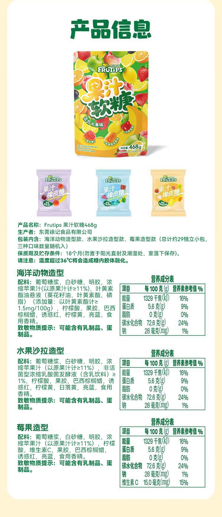 雀巢 趣满果 果汁软糖468g 新年礼物 混合水果味 QQ糖橡皮糖休闲食品