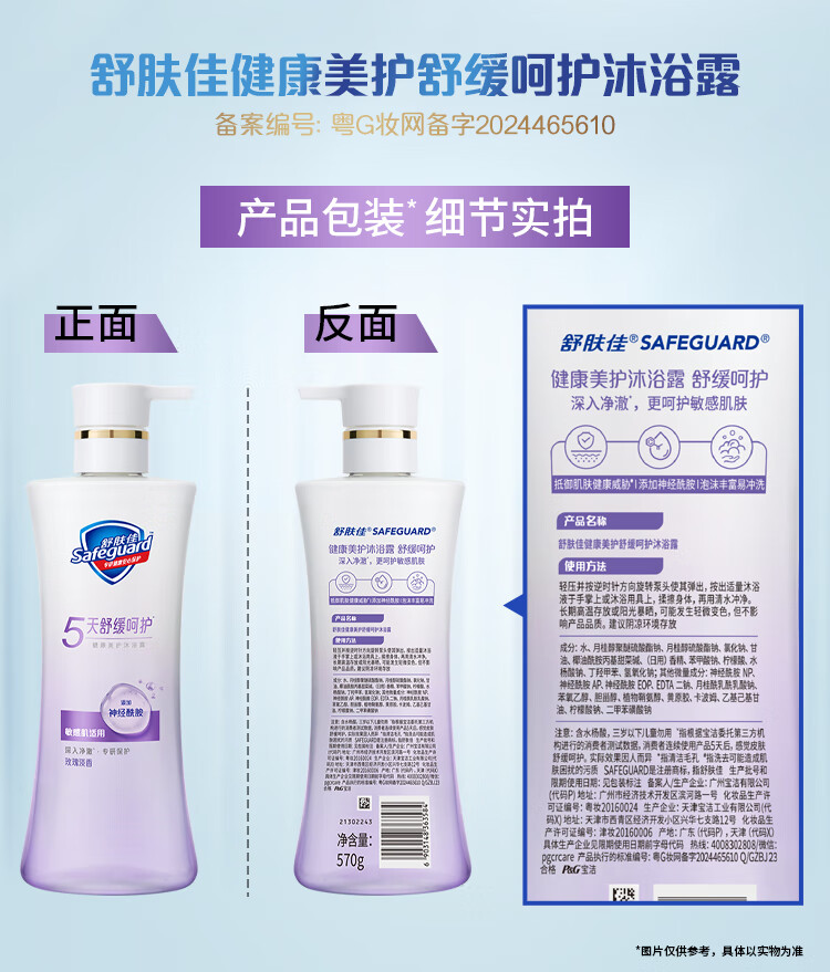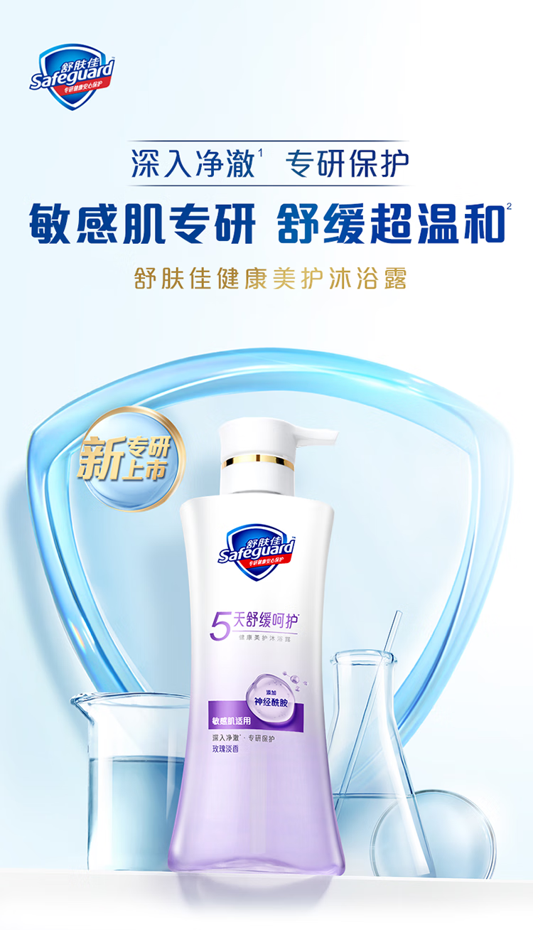 舒肤佳健康美护沐浴露 小紫瓶玫瑰淡香570g温和舒缓沐浴乳液敏感肌用