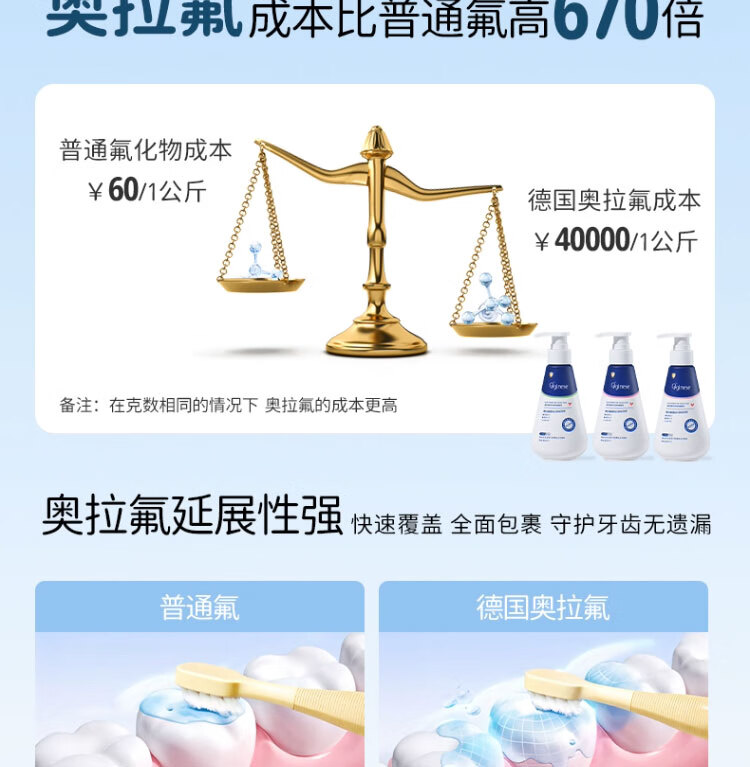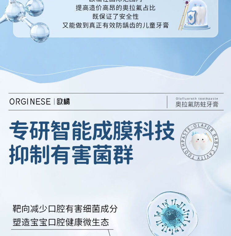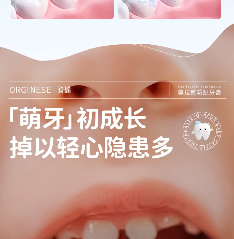 ORGINESE儿童牙膏3-6-12岁防蛀龋奥拉氟按压式草莓西瓜味含氟宝宝固齿2瓶