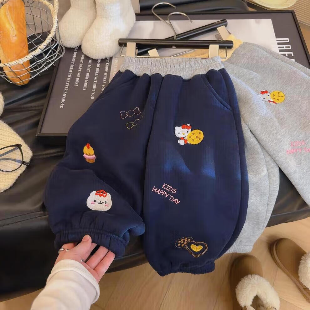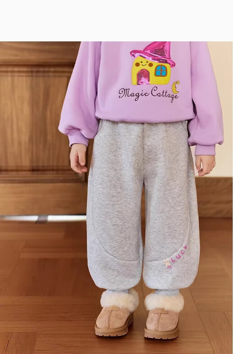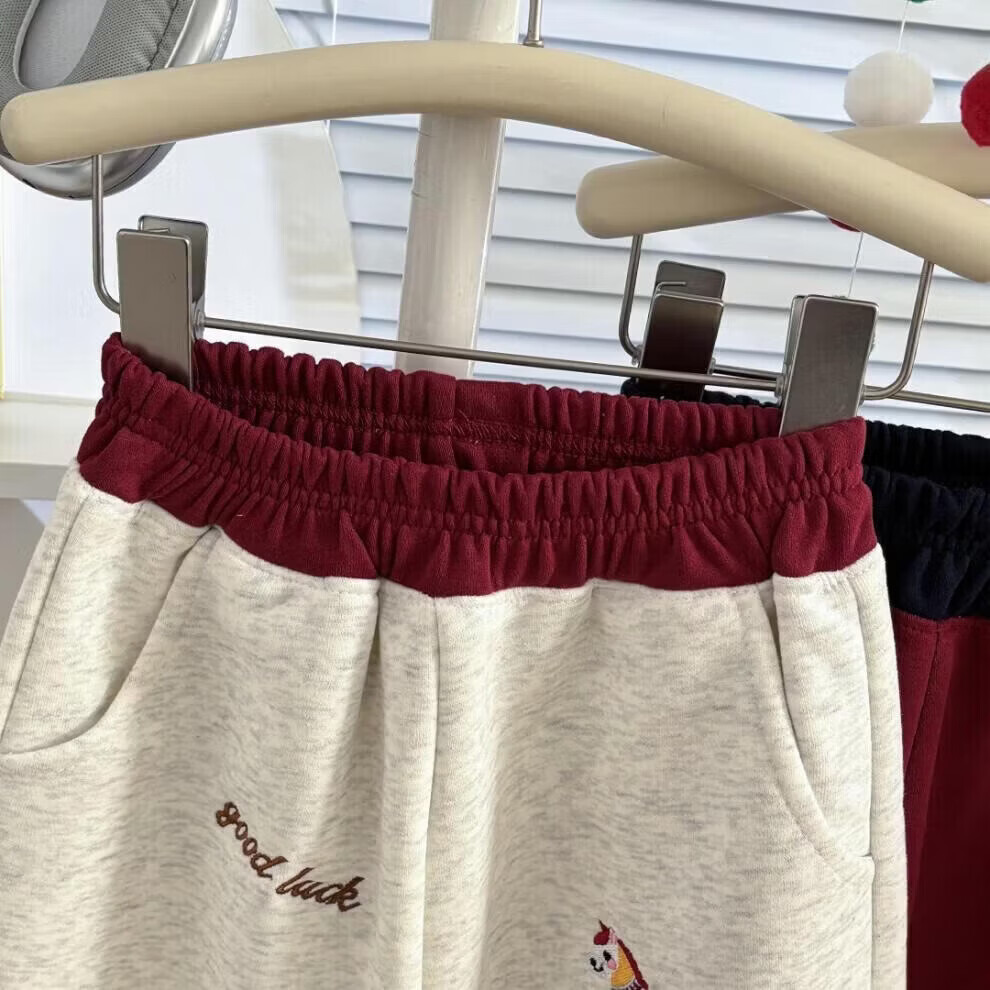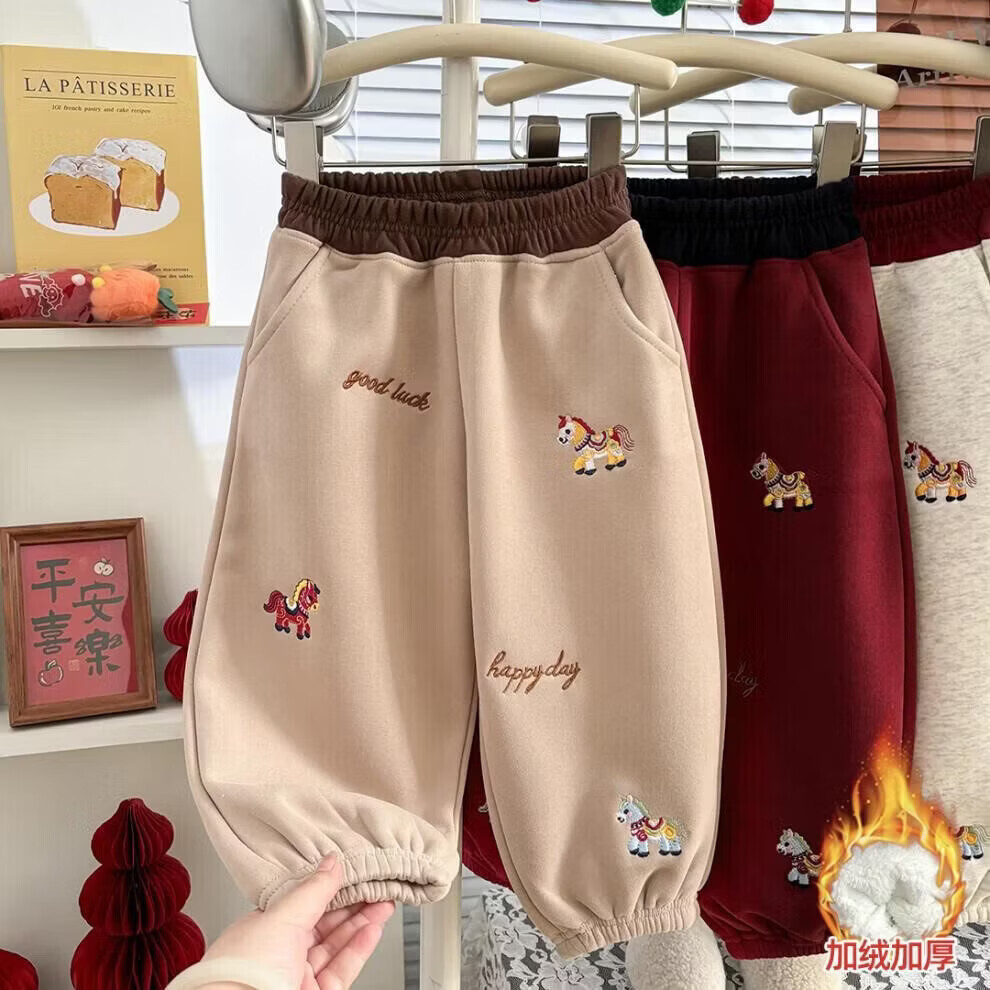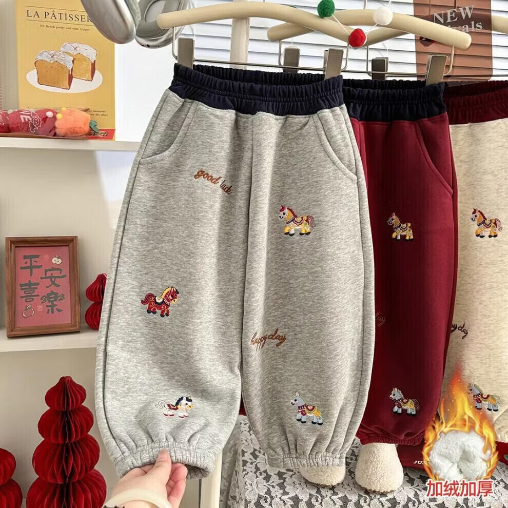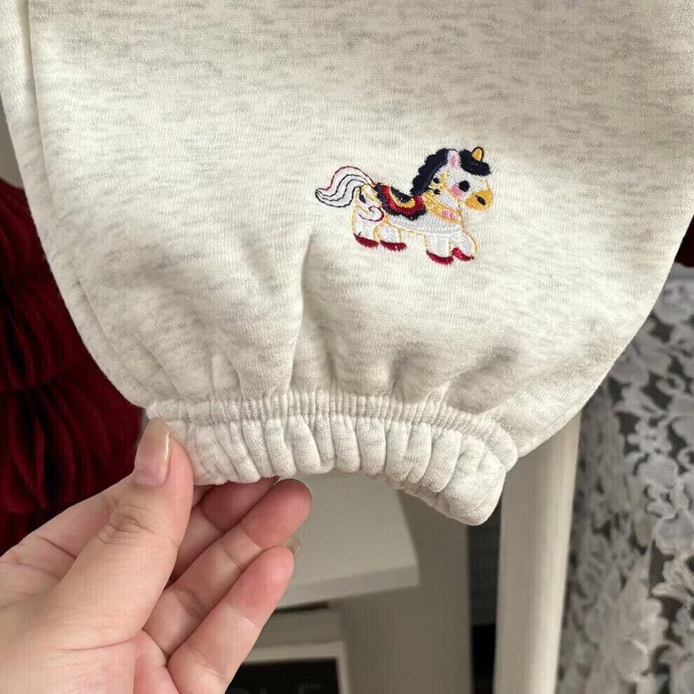 小猪班纳(PEPCO)冬季女童裤子新款洋气休闲刺绣加绒加厚宝宝阔腿保暖长裤儿童卫裤 马年卫衣-禧 【加绒】 160 【建议身高145-155】