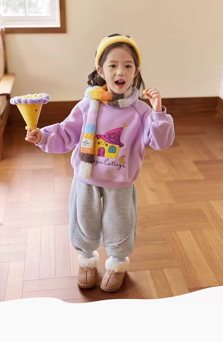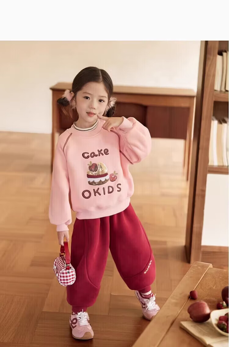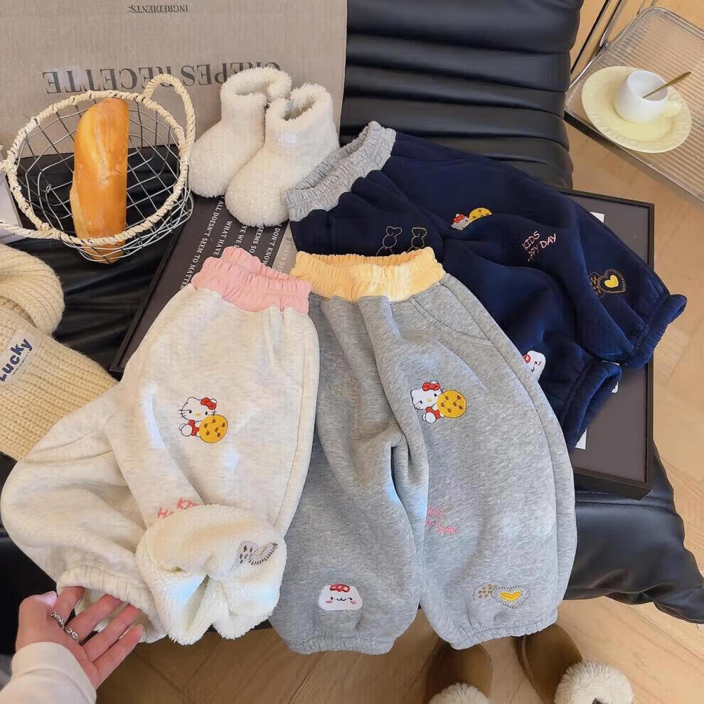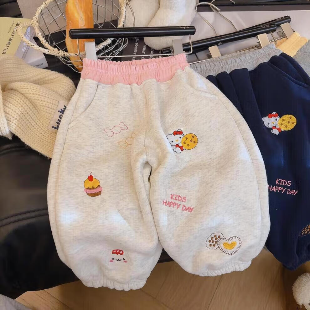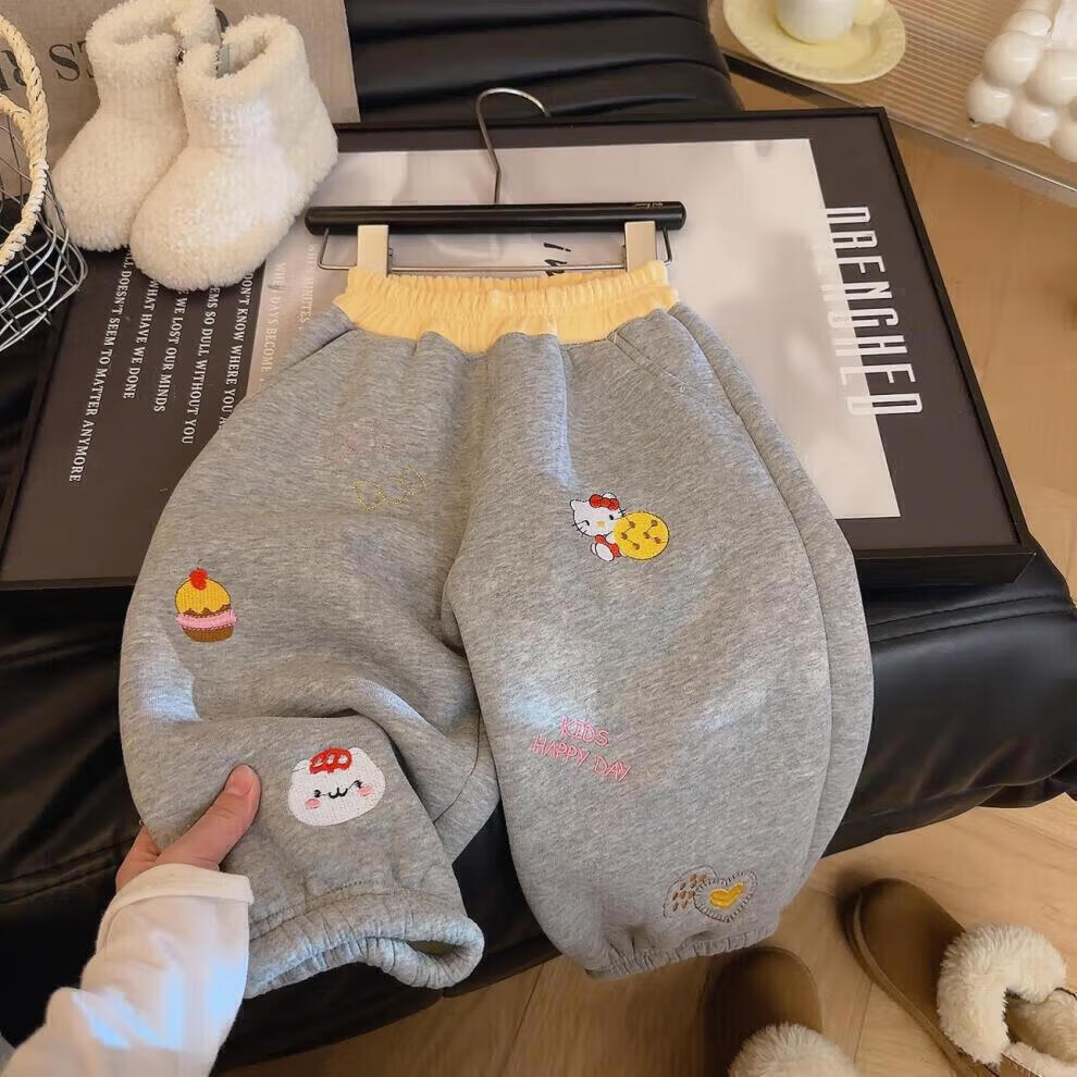 小猪班纳(PEPCO)冬季女童裤子新款洋气休闲刺绣加绒加厚宝宝阔腿保暖长裤儿童卫裤 马年卫衣-禧 【加绒】 160 【建议身高145-155】