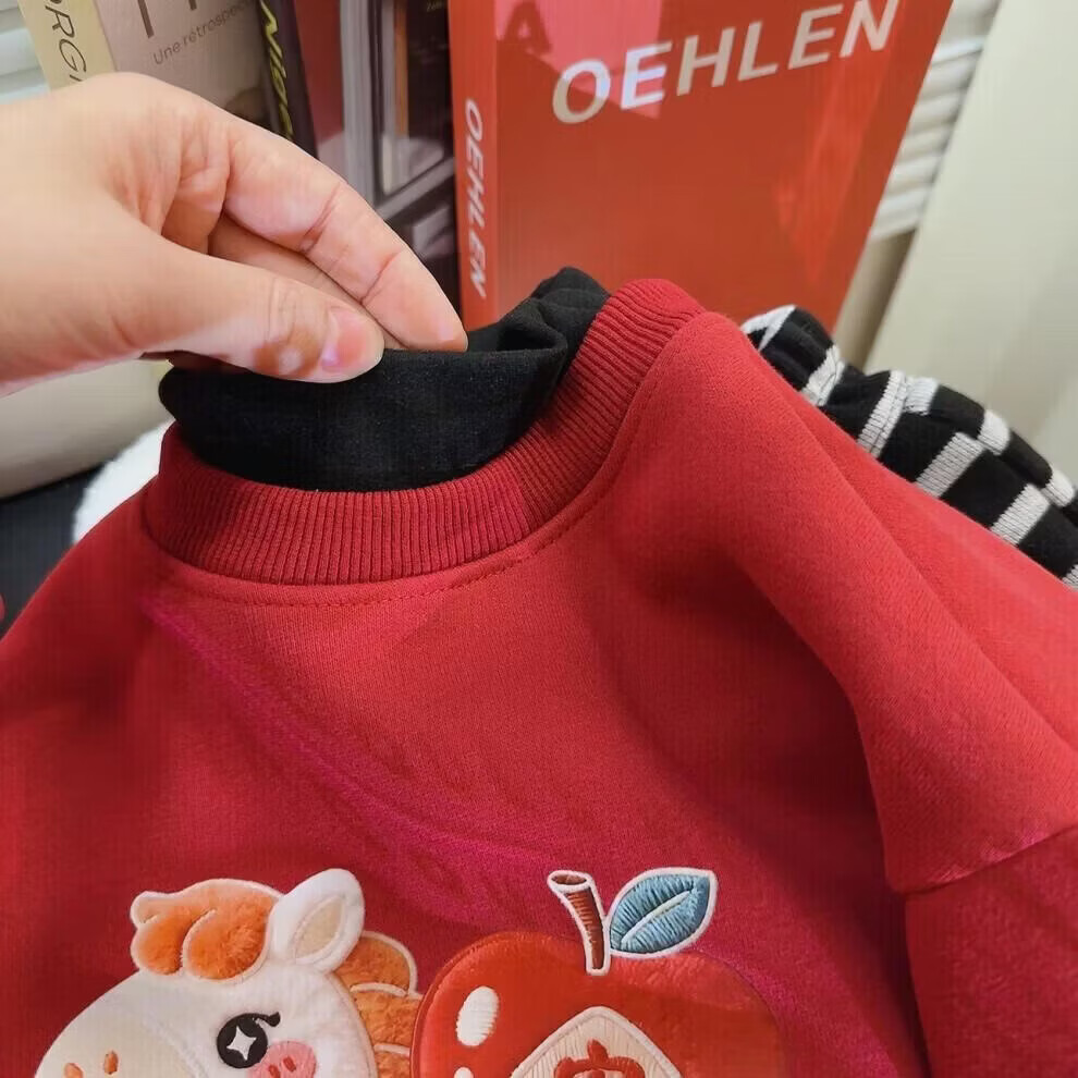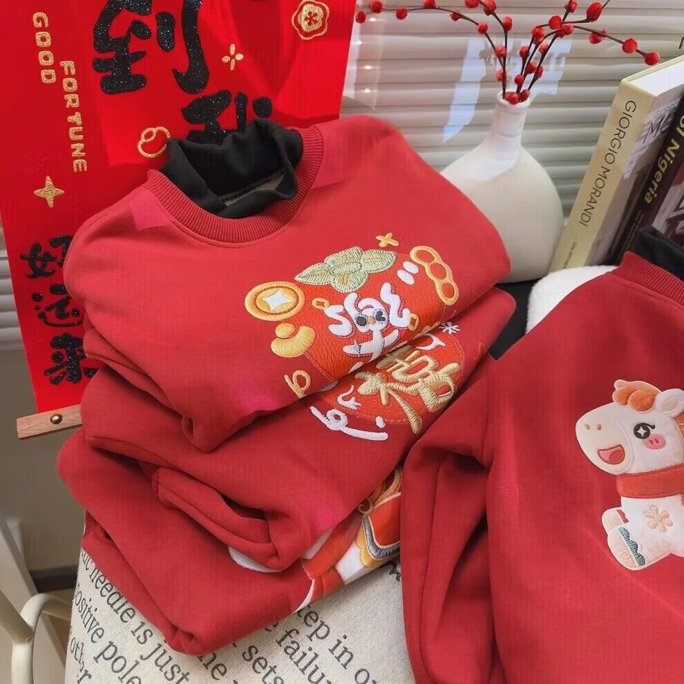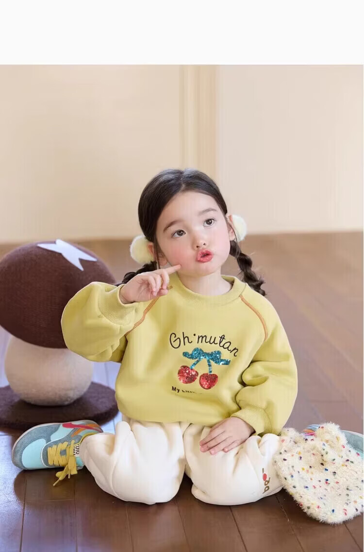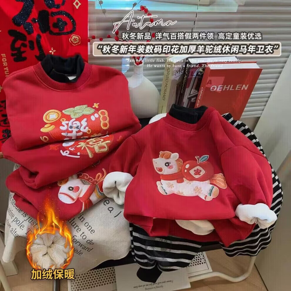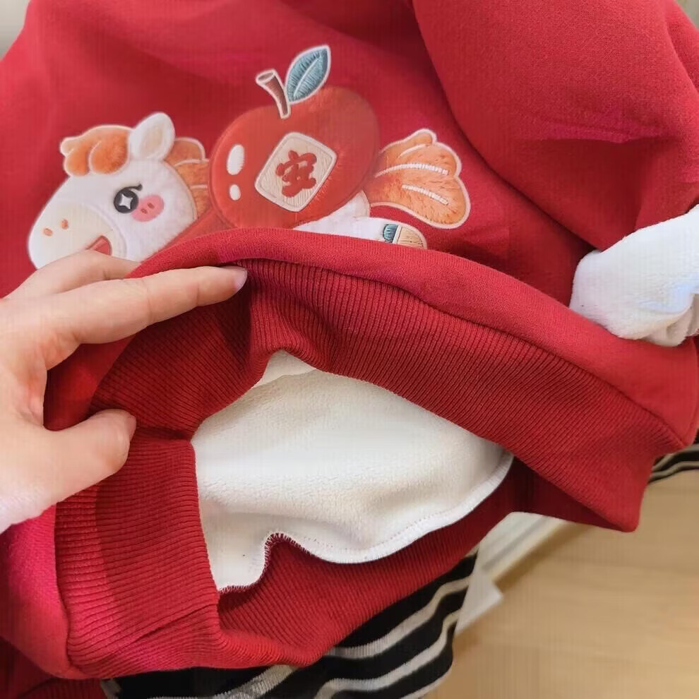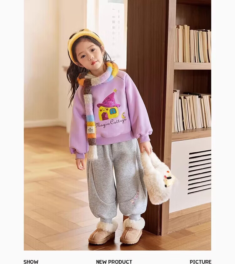 小猪班纳(PEPCO)冬季女童裤子新款洋气休闲刺绣加绒加厚宝宝阔腿保暖长裤儿童卫裤 马年卫衣-禧 【加绒】 160 【建议身高145-155】