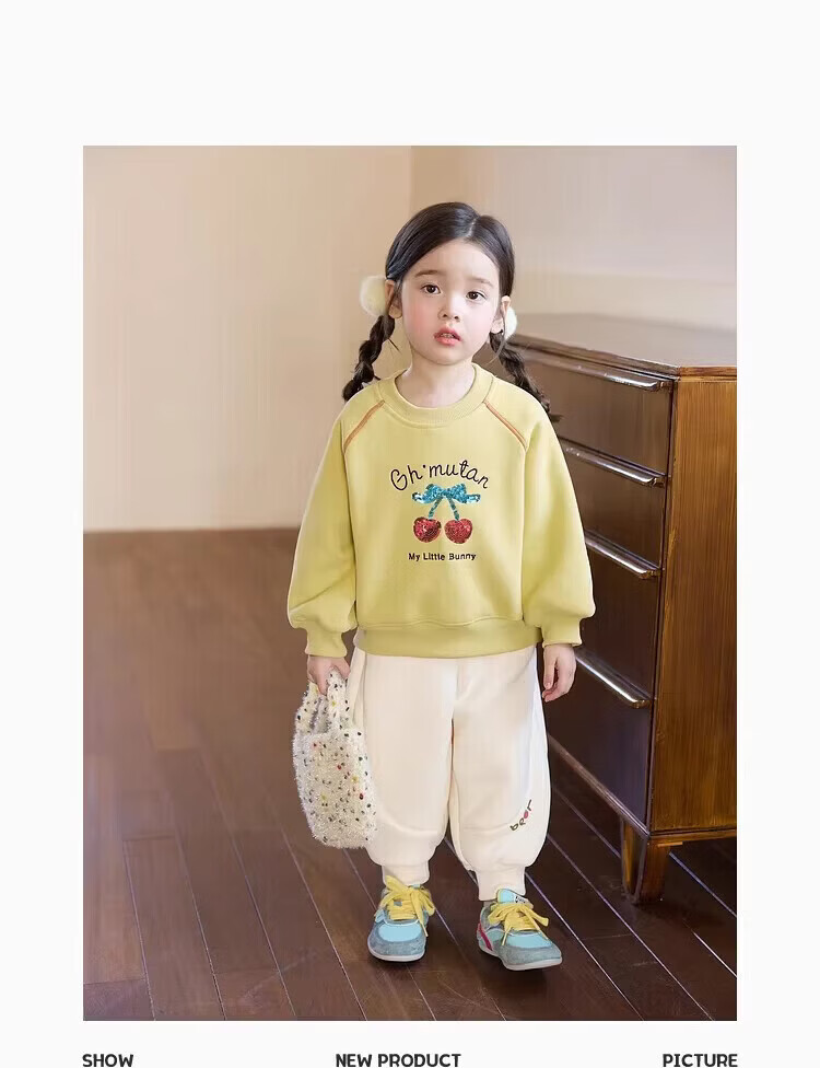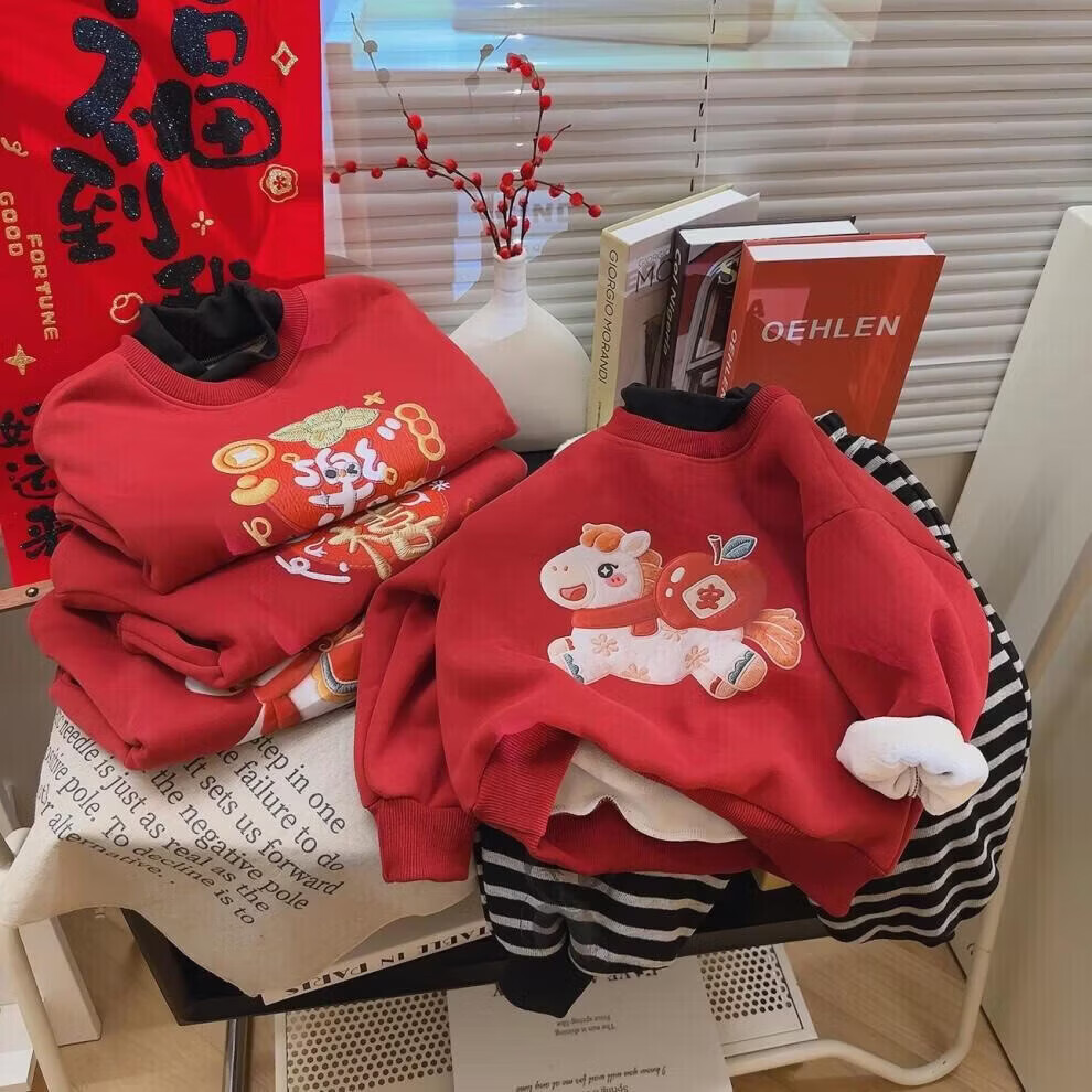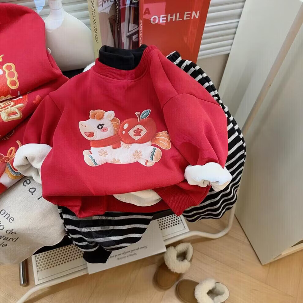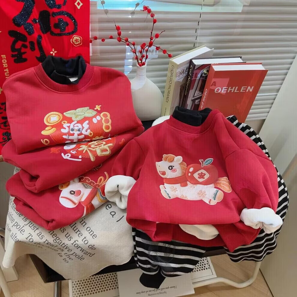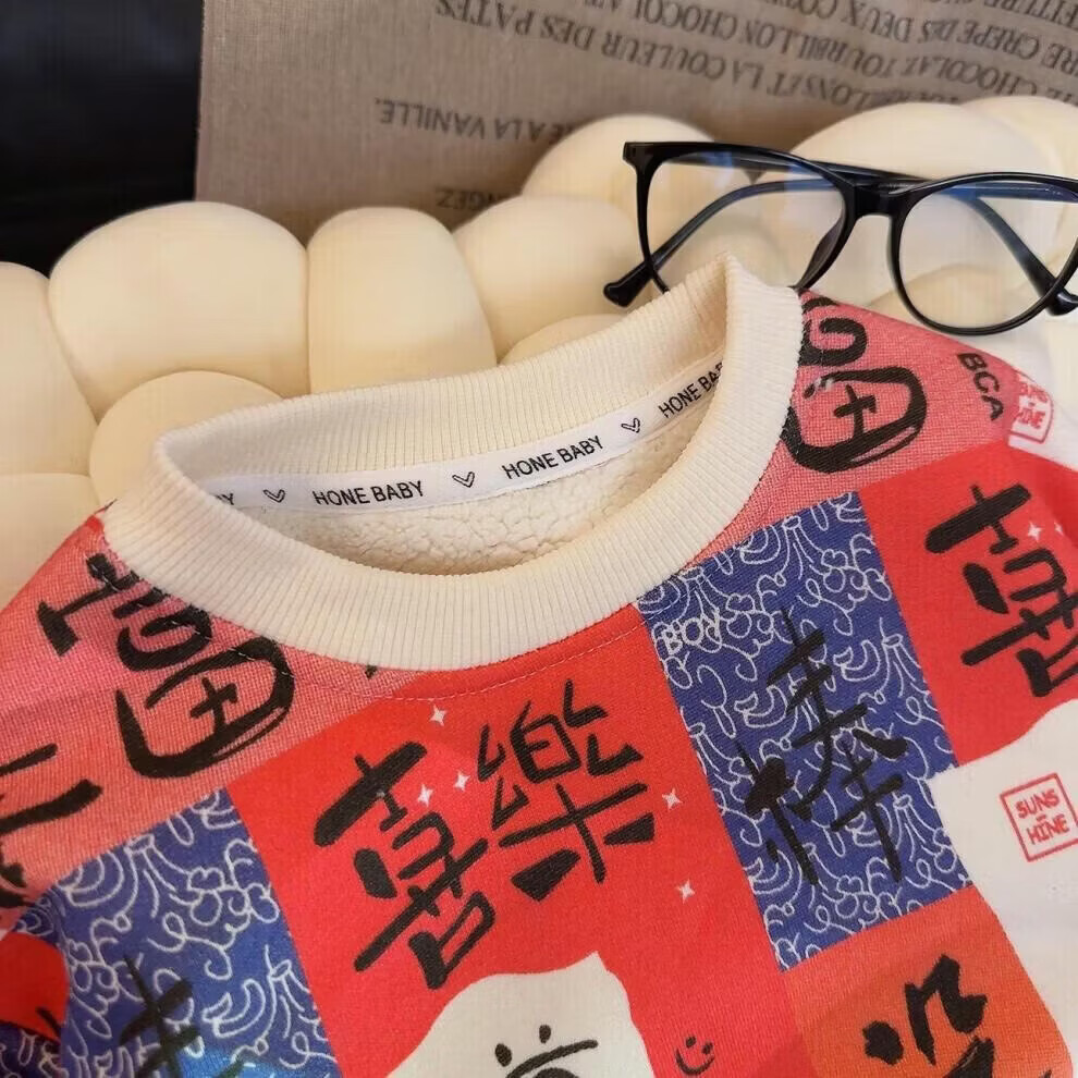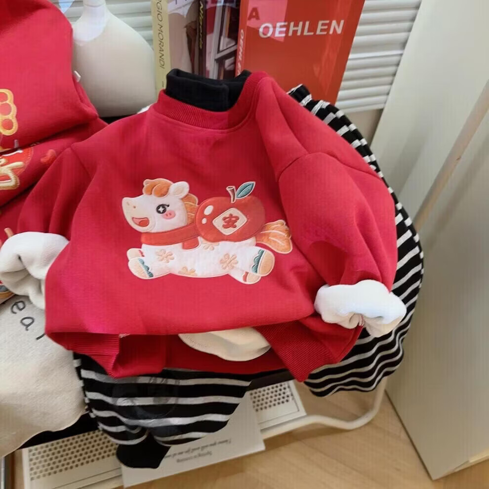 小猪班纳(PEPCO)冬季女童裤子新款洋气休闲刺绣加绒加厚宝宝阔腿保暖长裤儿童卫裤 马年卫衣-禧 【加绒】 160 【建议身高145-155】