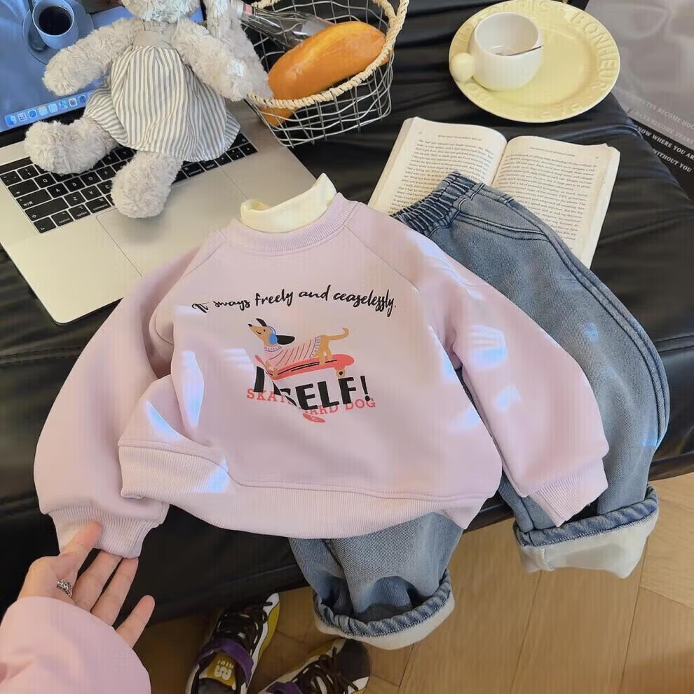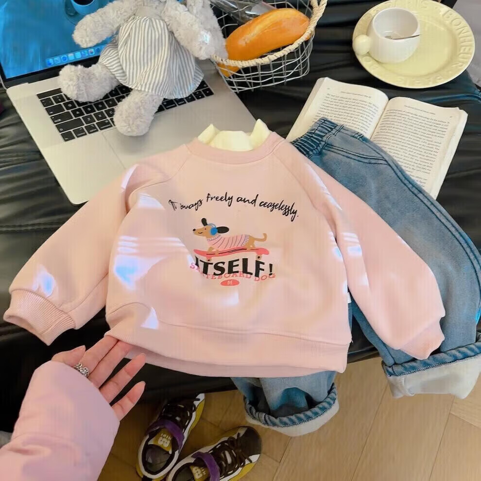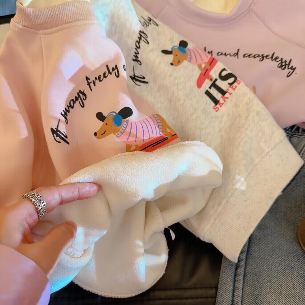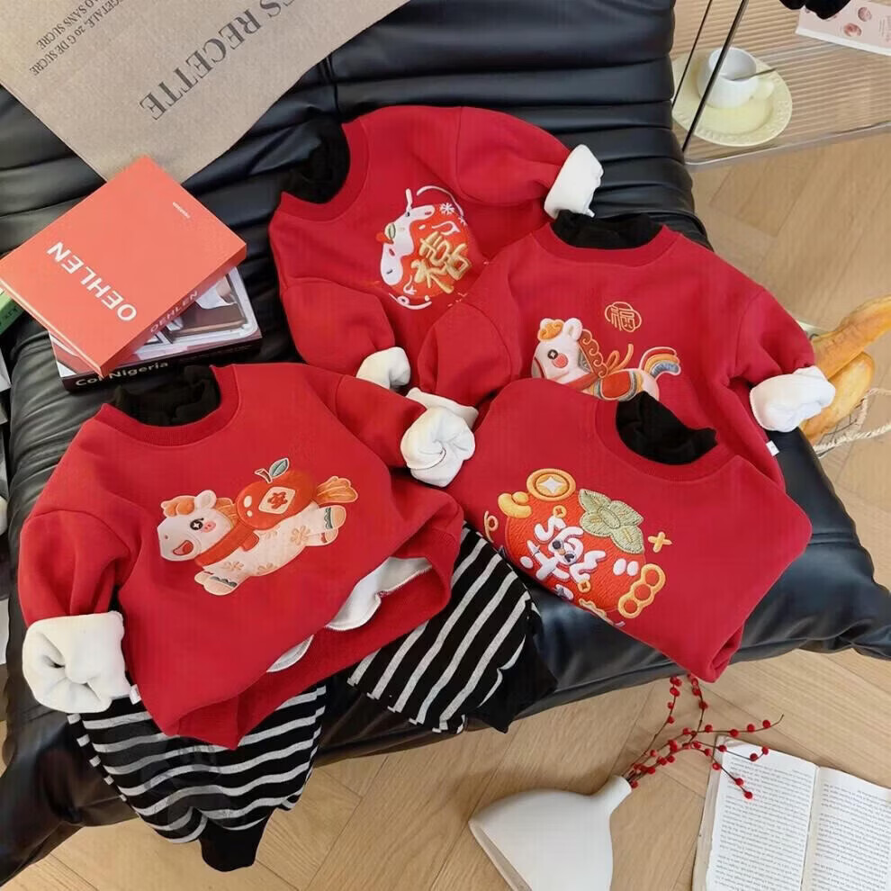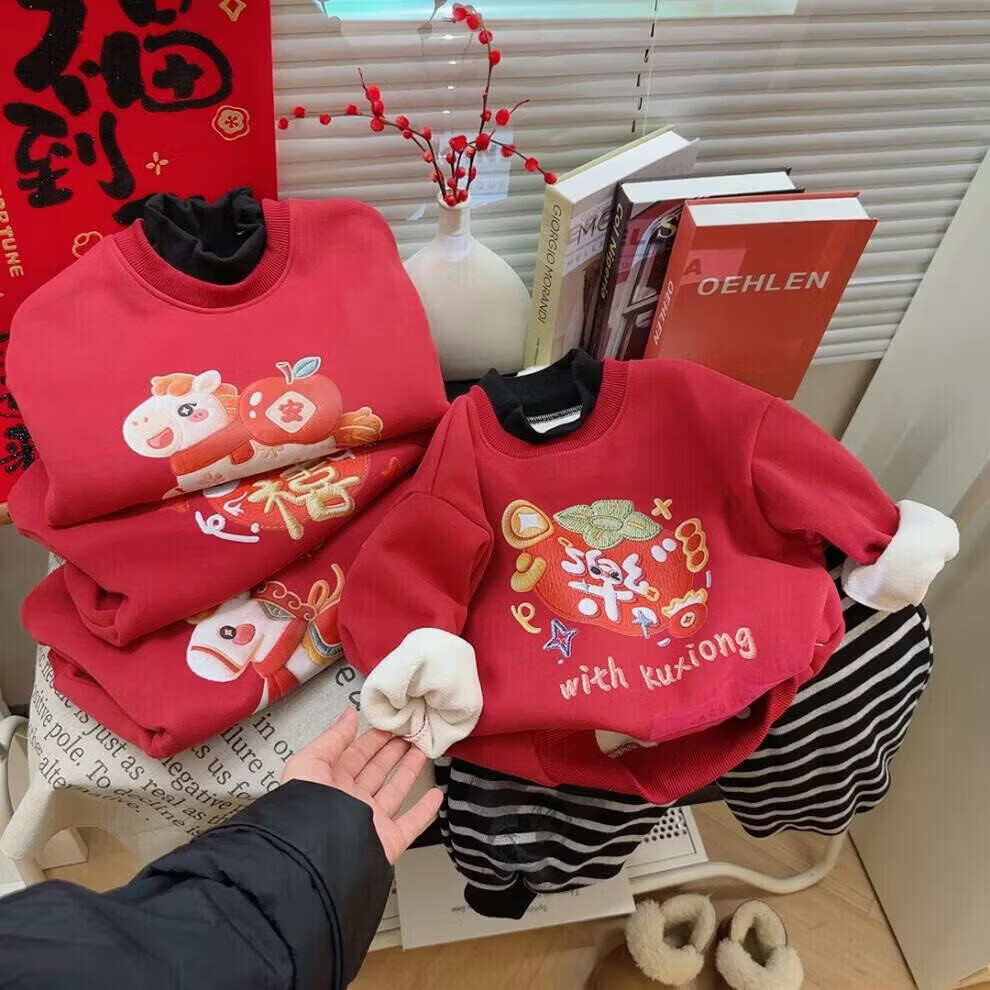 小猪班纳(PEPCO)冬季女童裤子新款洋气休闲刺绣加绒加厚宝宝阔腿保暖长裤儿童卫裤 马年卫衣-禧 【加绒】 160 【建议身高145-155】