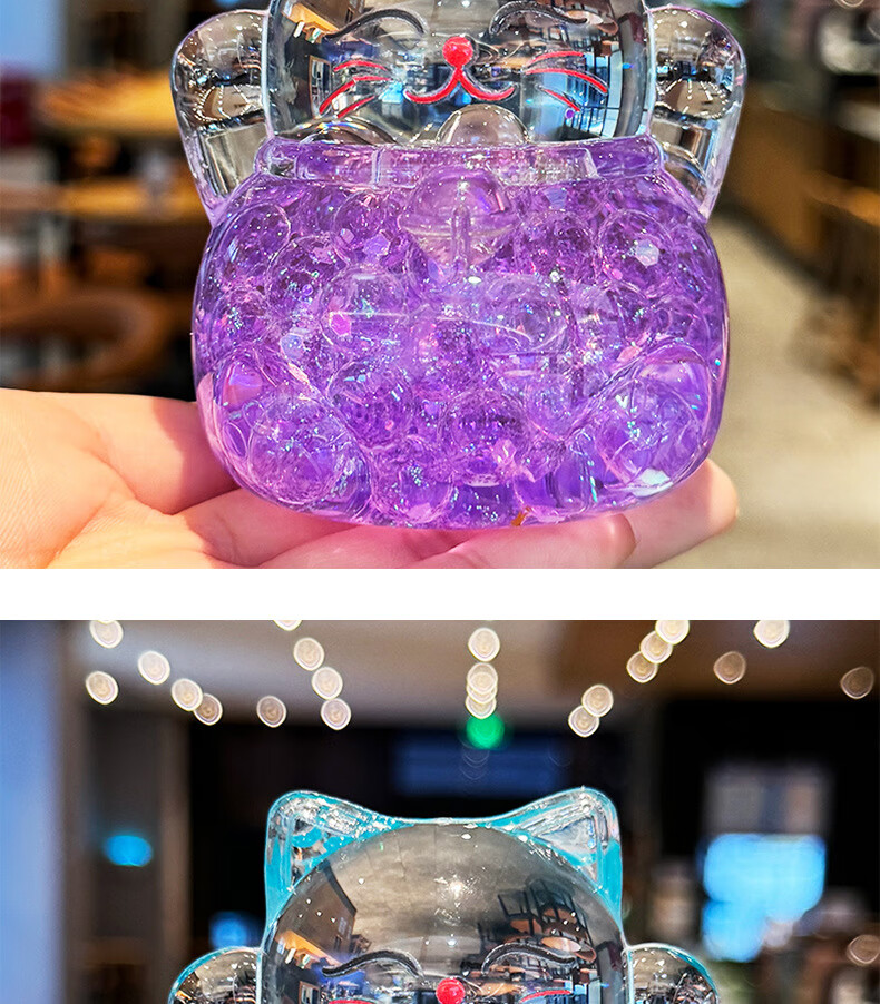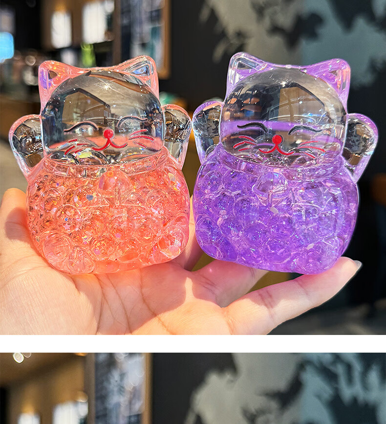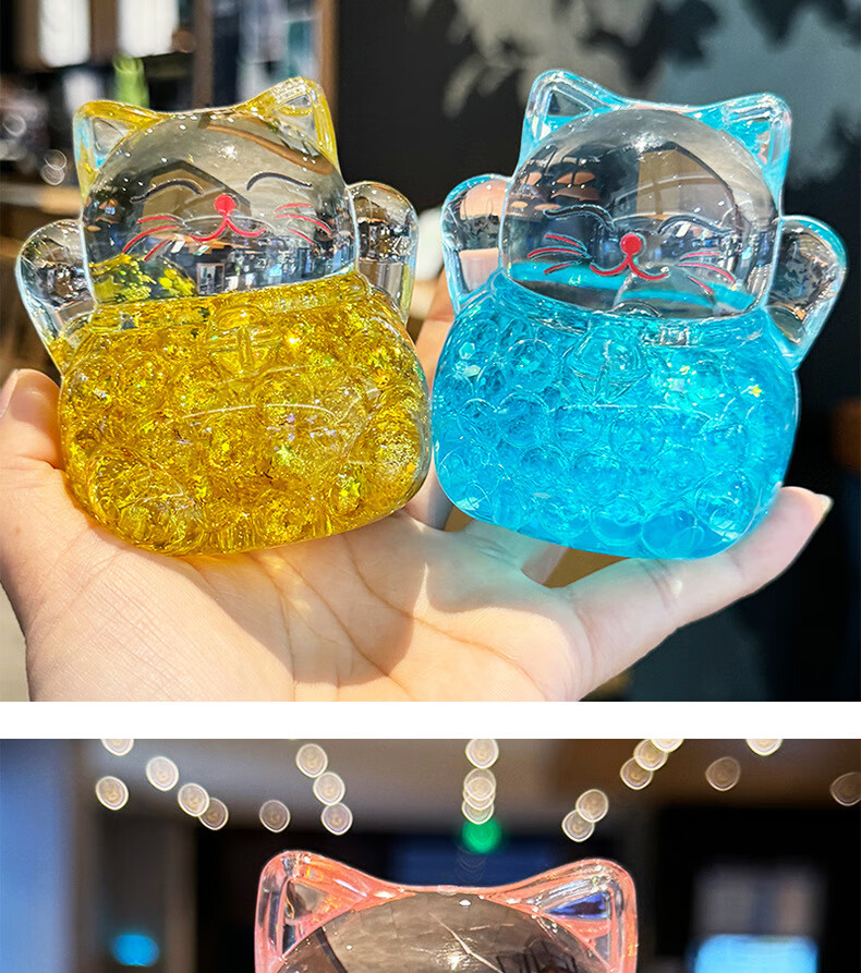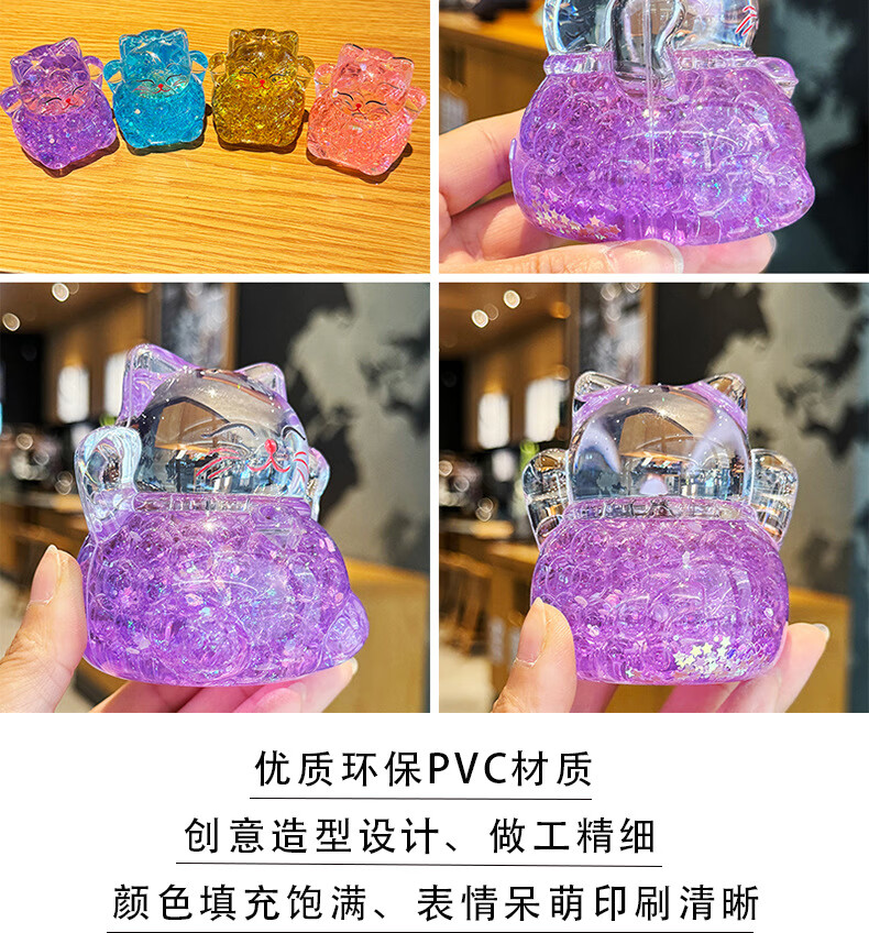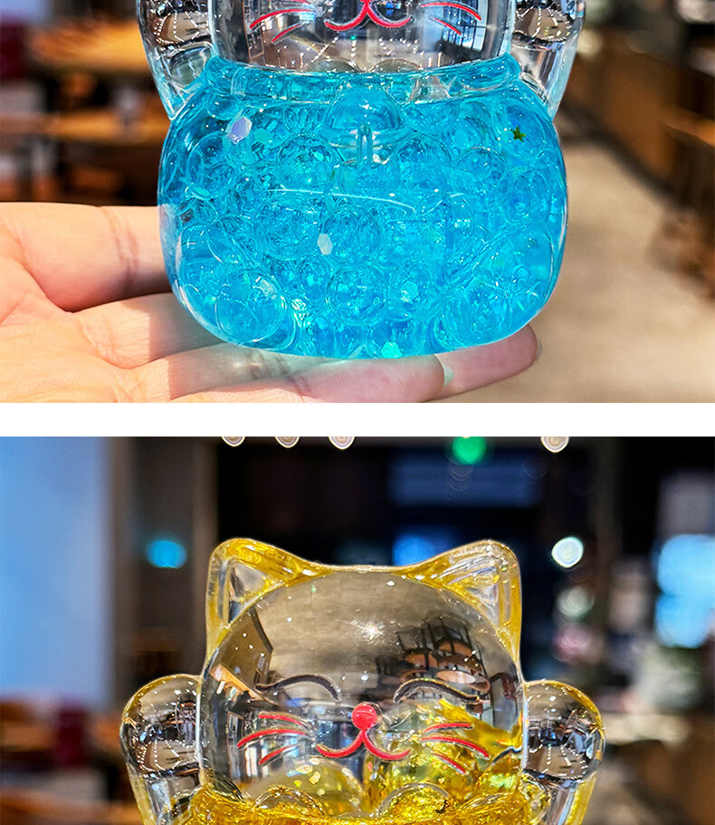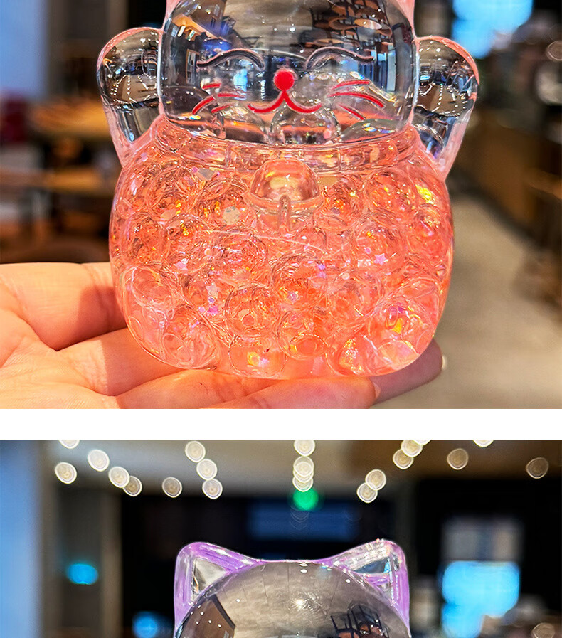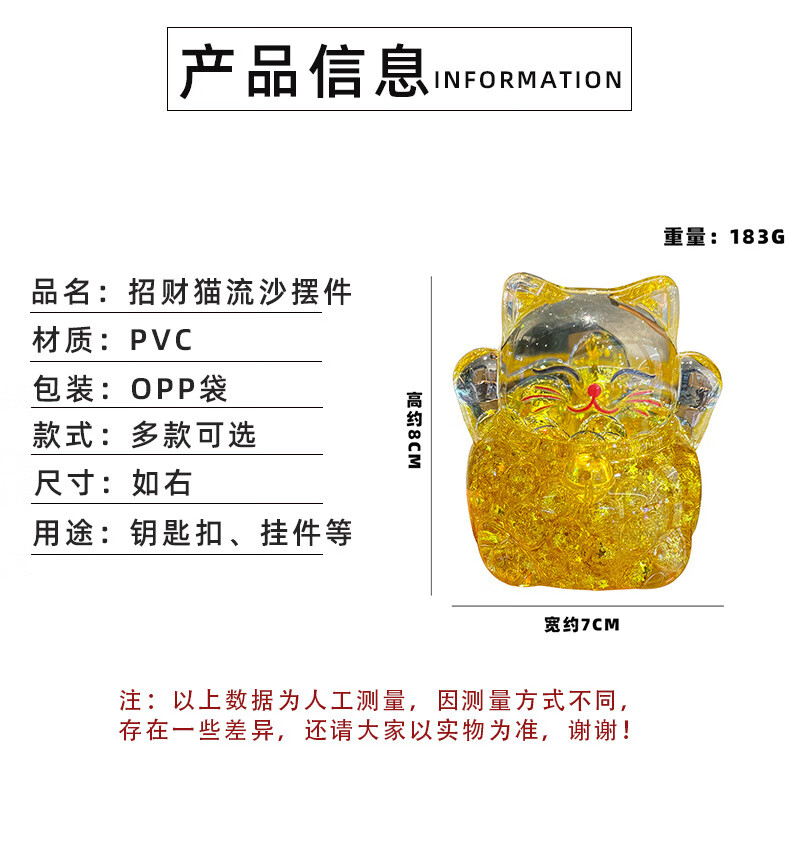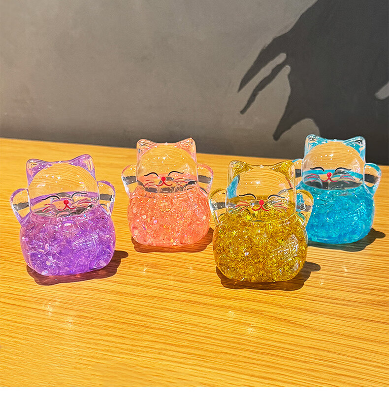 夜光水晶招财猫创意亚克力办公室桌面装饰品摆件开业送礼生日礼物 招财猫流沙摆件-金色