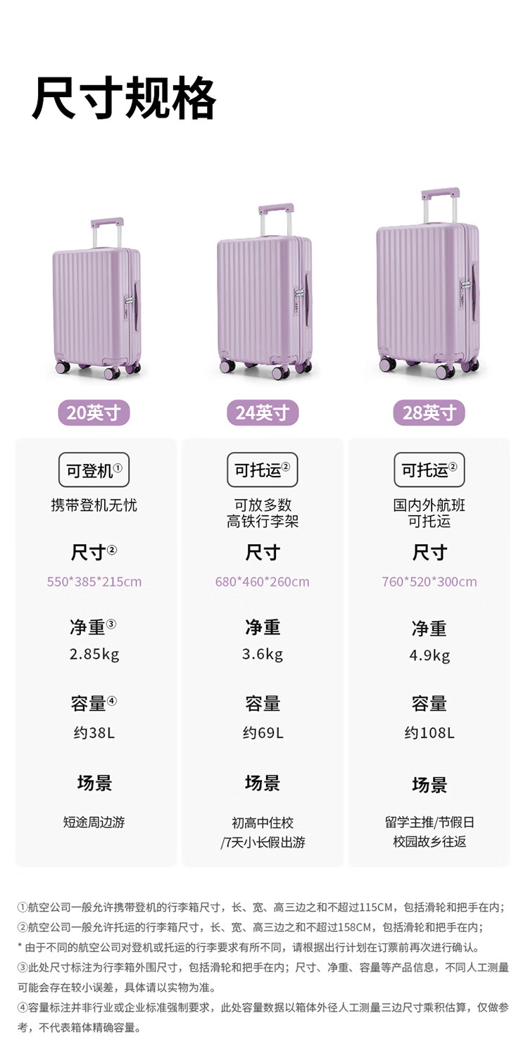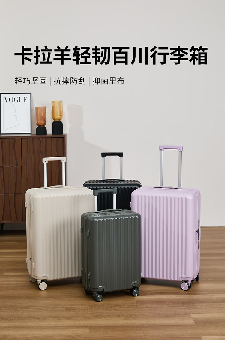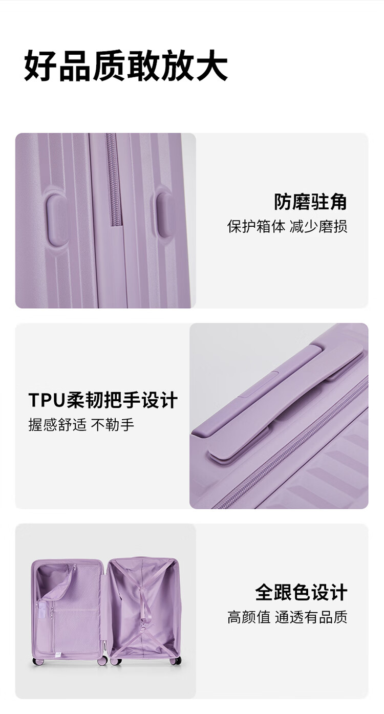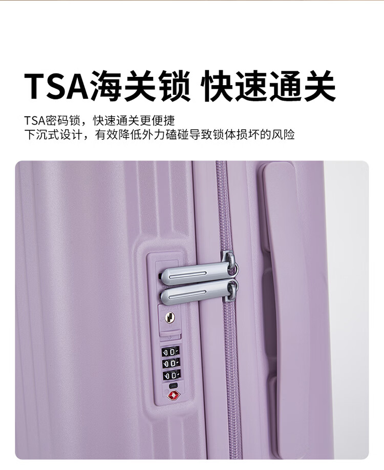 卡拉羊行李箱纯PC轻巧坚固防刮抗摔拉杆箱学生男女生可登机密码箱 薰衣草紫【纯PC材质防刮抗摔】 24英寸 【约71升,学生住校推荐,5-10天出行】