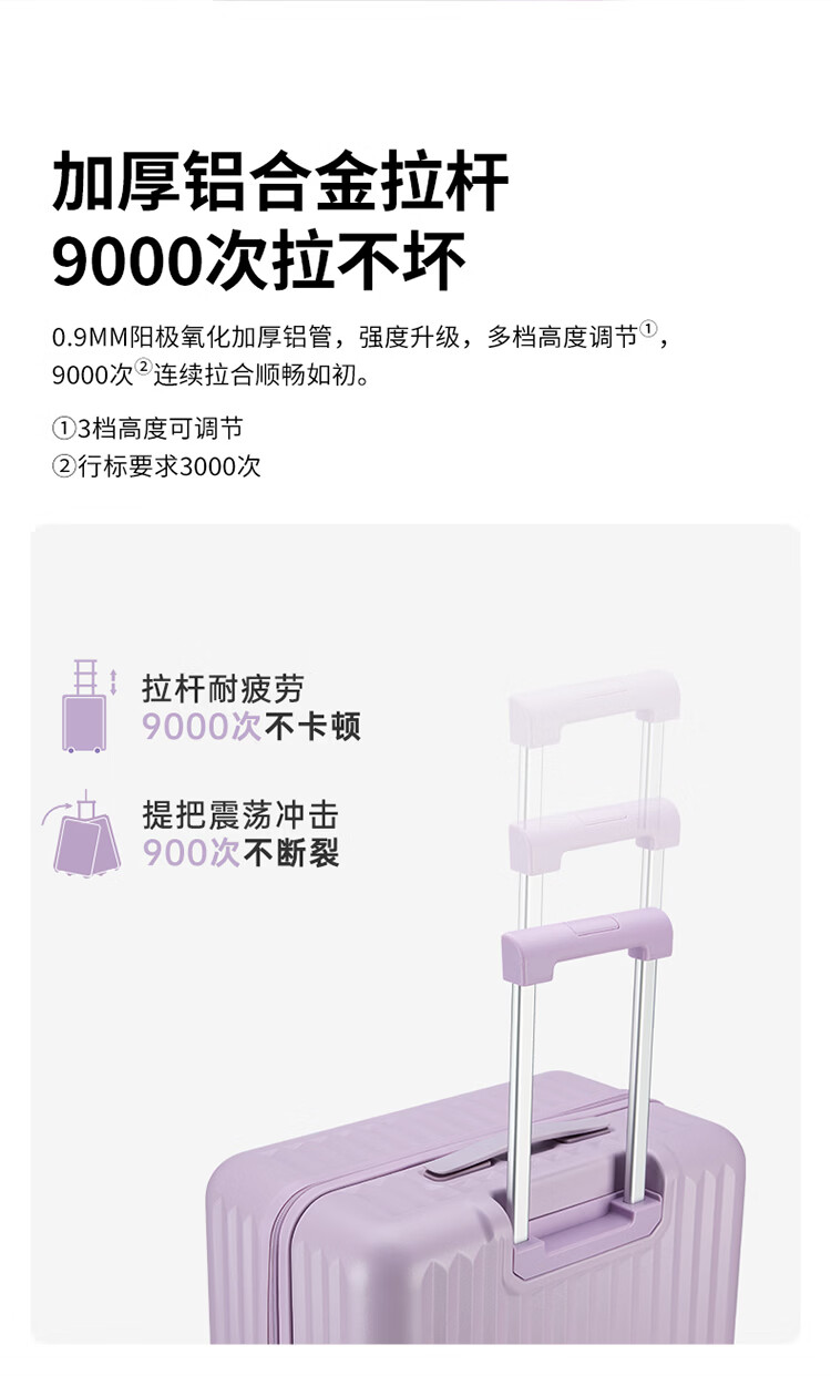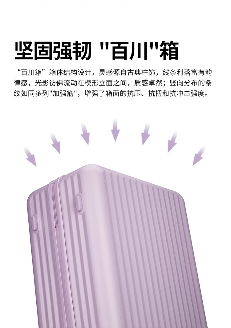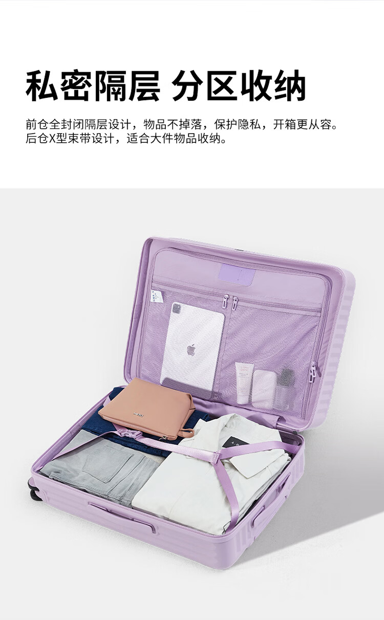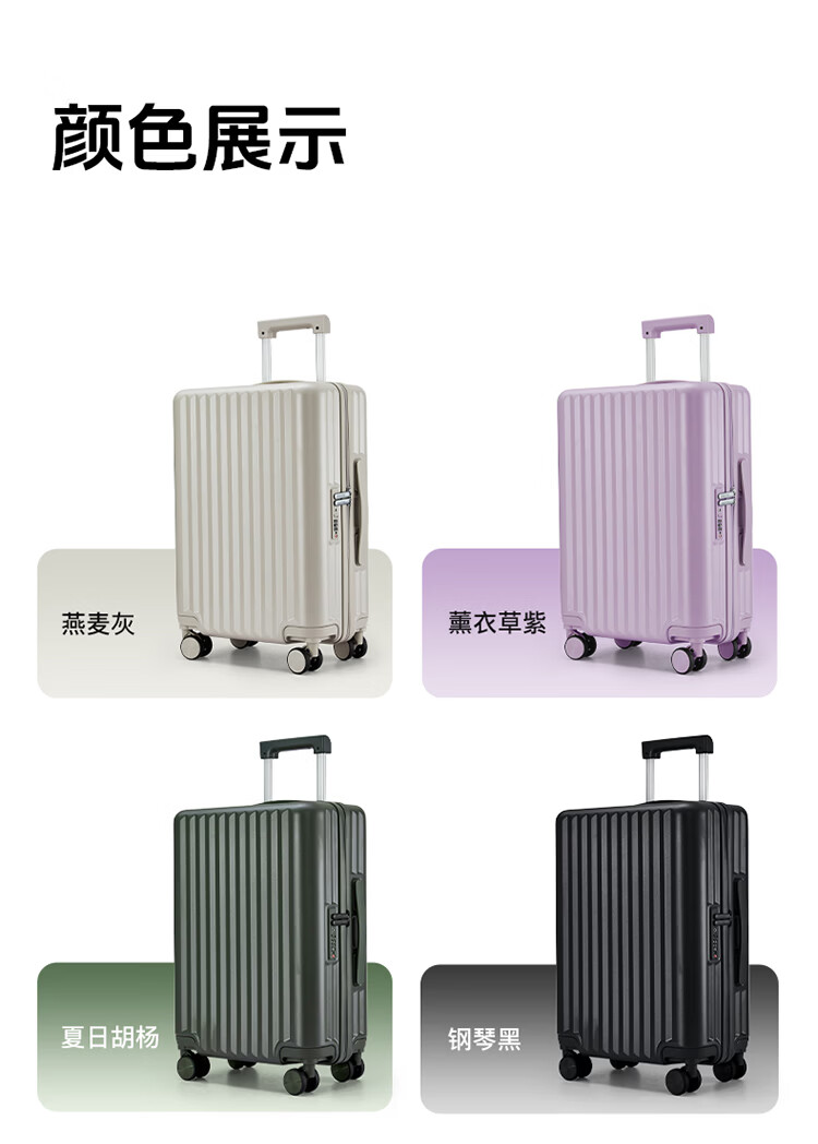 卡拉羊行李箱纯PC轻巧坚固防刮抗摔拉杆箱学生男女生可登机密码箱 薰衣草紫【纯PC材质防刮抗摔】 24英寸 【约71升,学生住校推荐,5-10天出行】