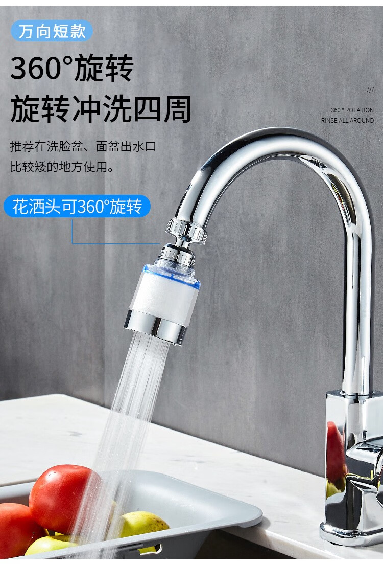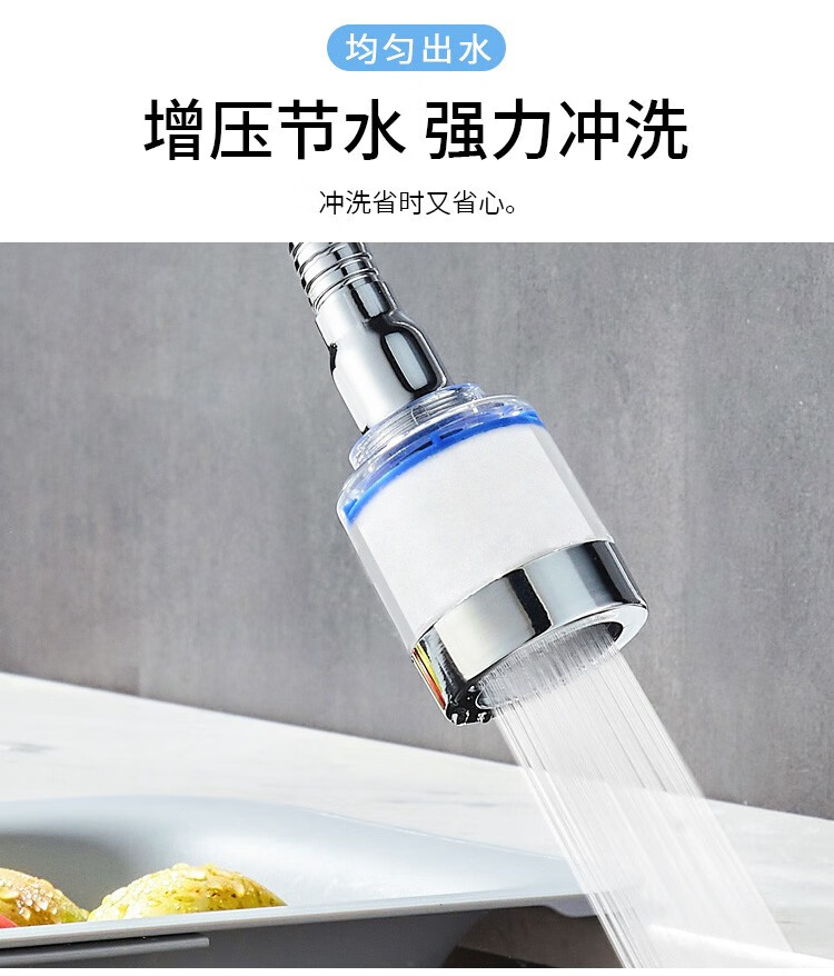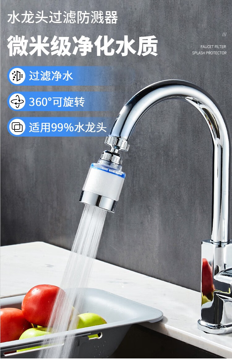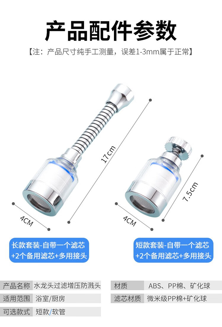 Imakara厨房万向旋转水龙头自来水过滤器防溅头延伸器过滤嘴增压溅水神器 长款花洒过滤器 3个滤芯+转换头
