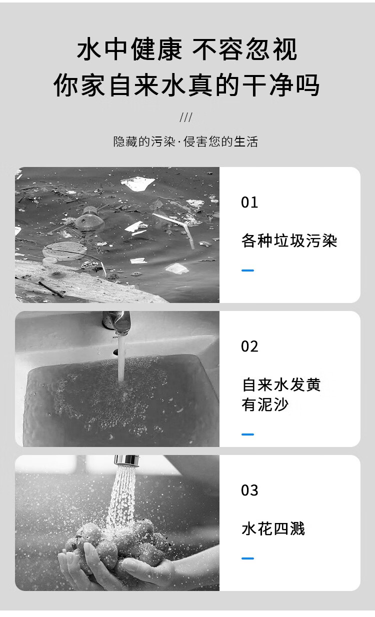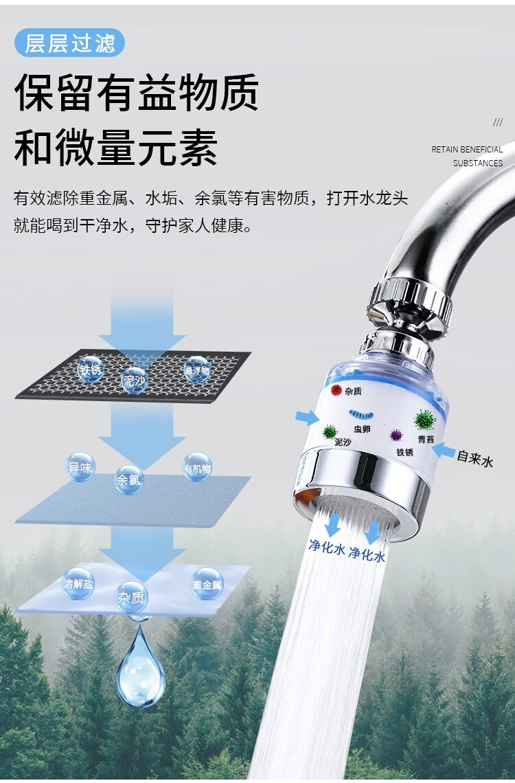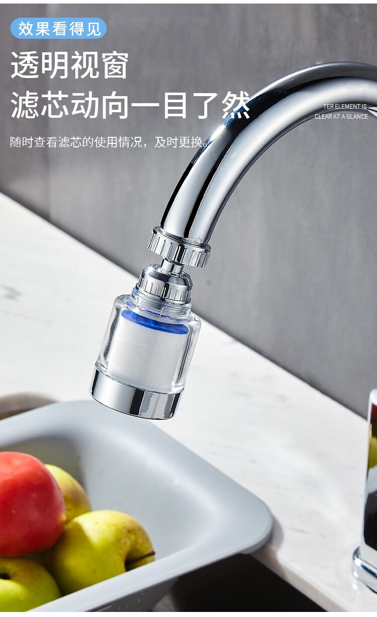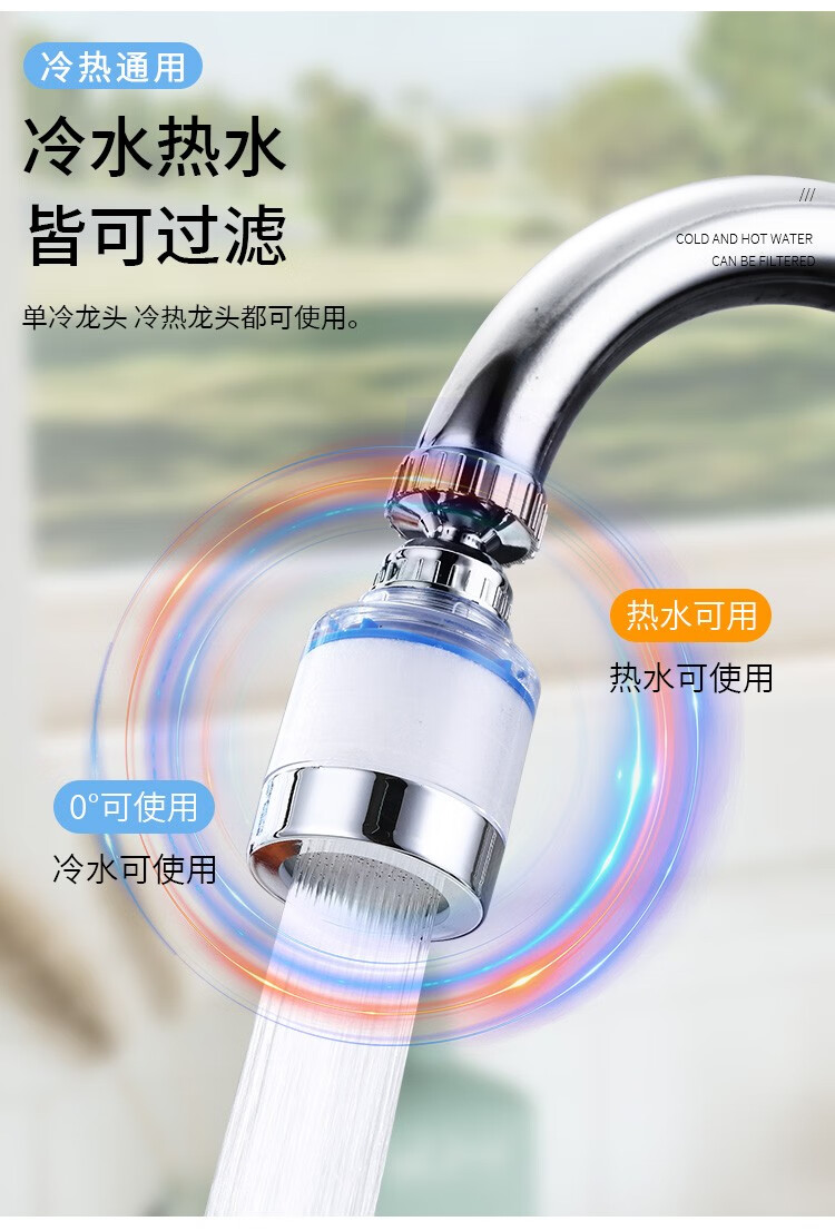 Imakara厨房万向旋转水龙头自来水过滤器防溅头延伸器过滤嘴增压溅水神器 长款花洒过滤器 3个滤芯+转换头