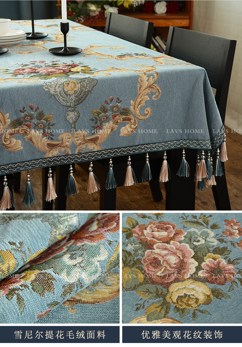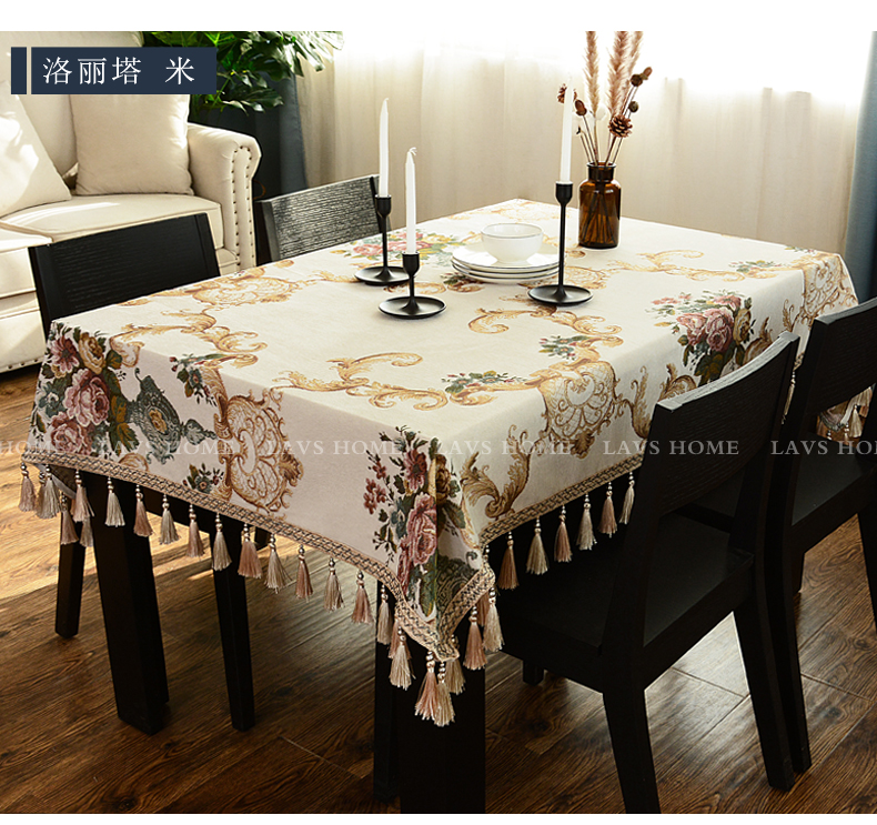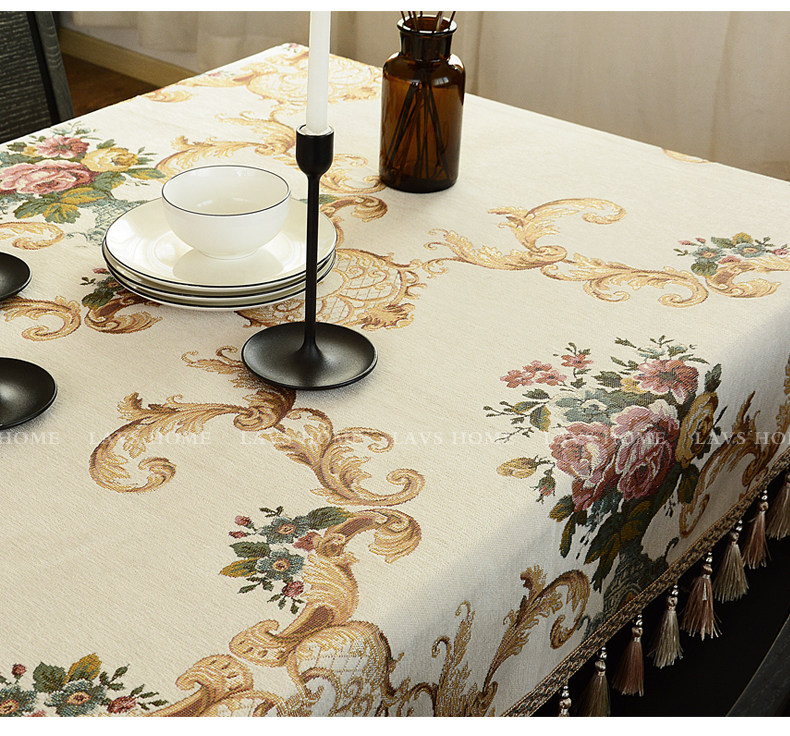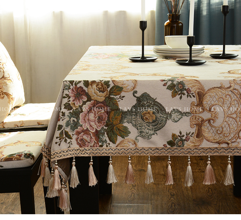 乐唯仕欧式长方形餐桌桌布轻奢高级感家用客厅茶几布布艺台布高档餐桌布 繁花似锦-米(吊穗款) 140*220cm(稍大餐桌)