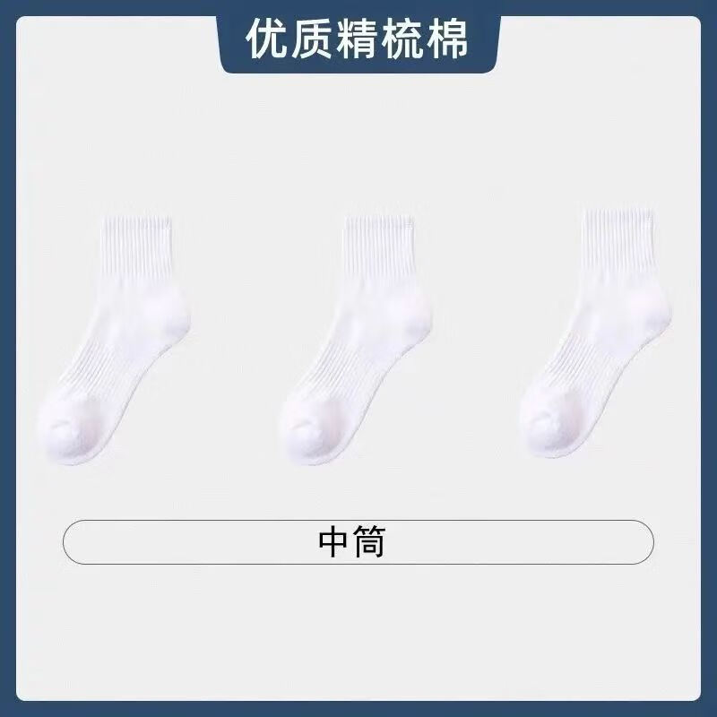 三师哥袜子男士纯色中筒袜四季运动休闲长筒袜白色男袜 【联系客服搭配】 【精梳棉抑菌】 5双 均码 【长筒35码-45码】