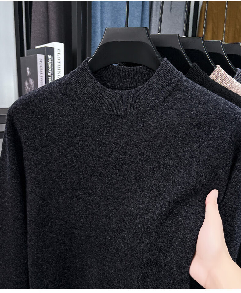 罗蒙(ROMON)100%绵羊毛衫男2025秋冬新款简约休闲纯色保暖圆领打底毛衣男 8850黑色 2XL (180) 【建议150-170斤】