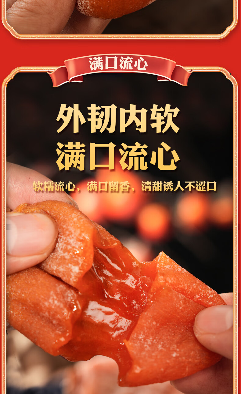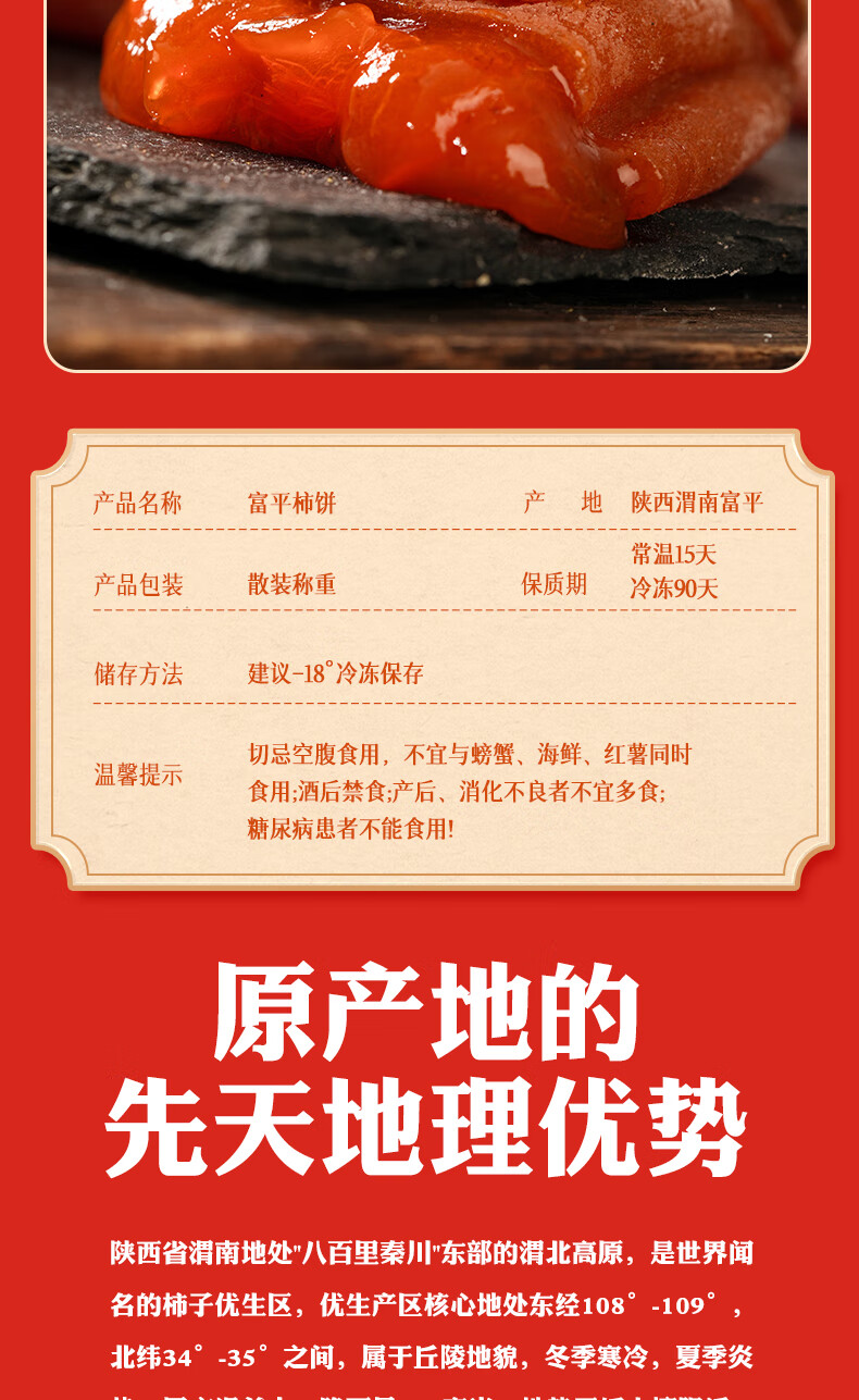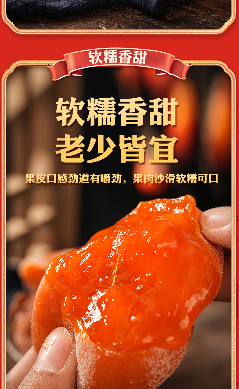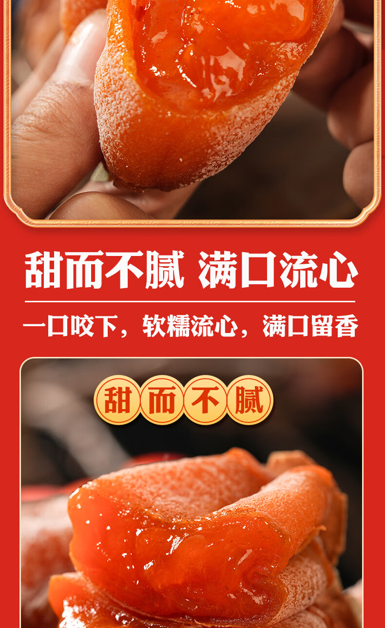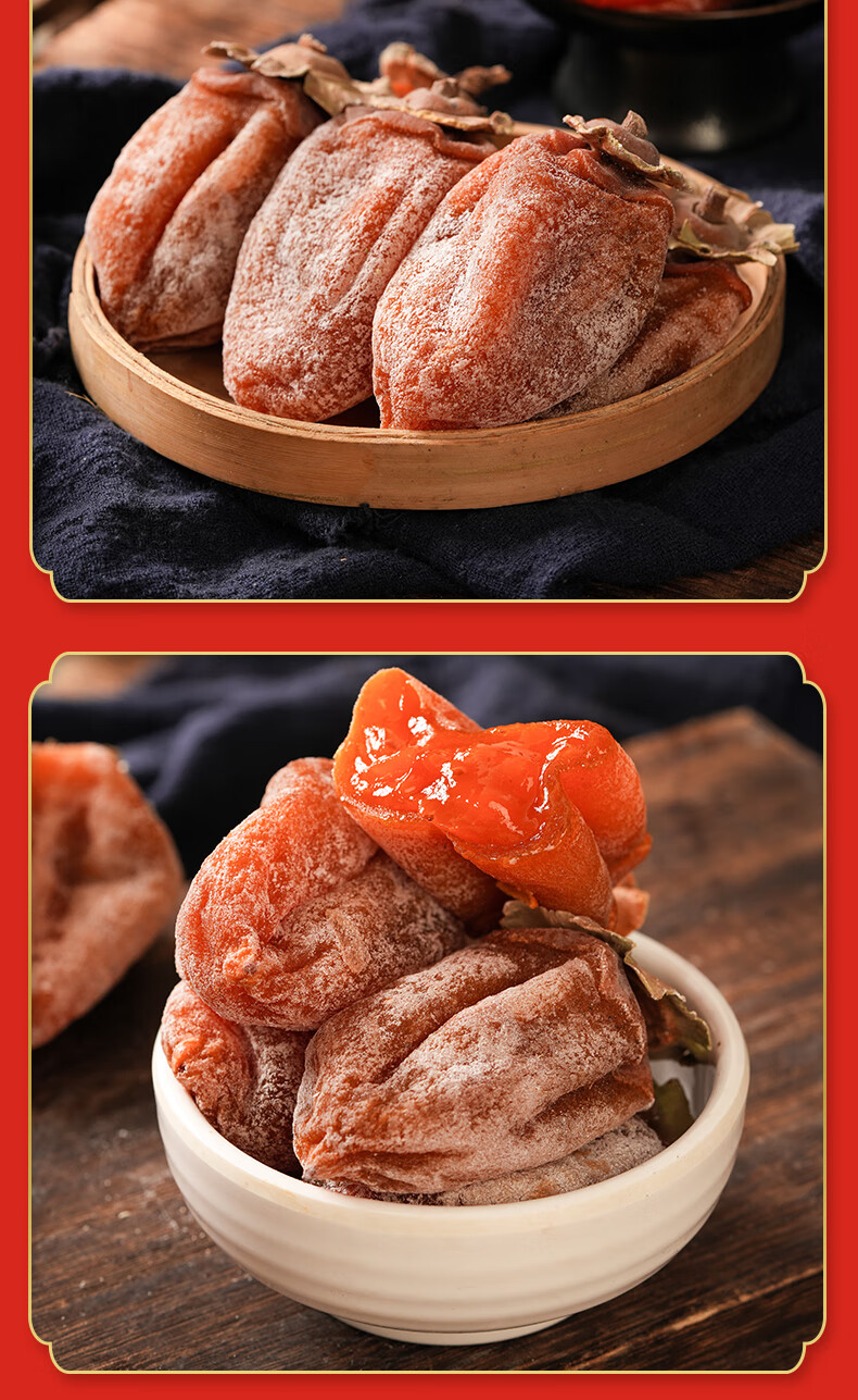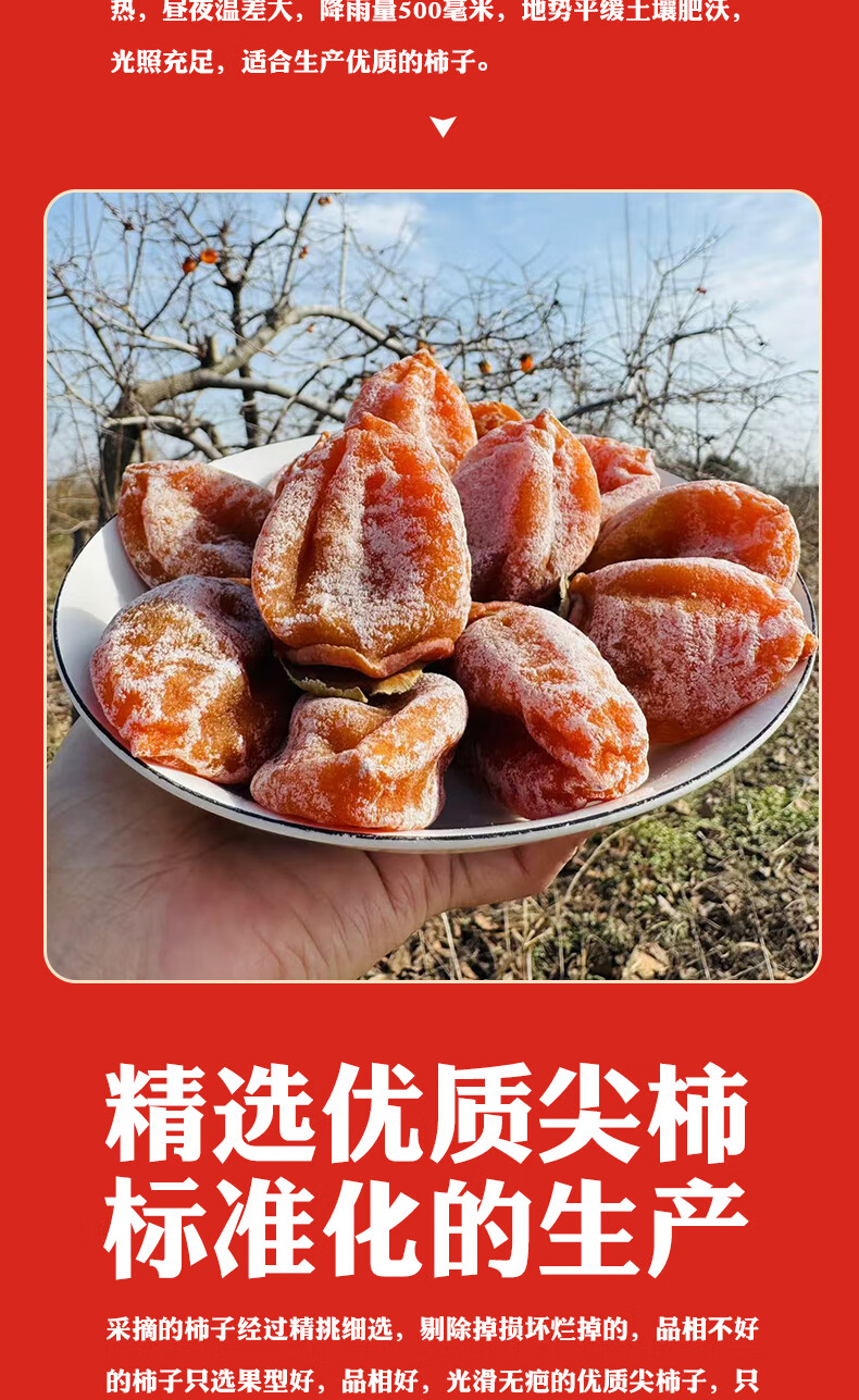 陕西富平吊柿饼独立包装糖心降霜大果特产级吊柿子尖柿饼子礼盒装 富平发货独立包装小果(15到17个每斤) 2斤