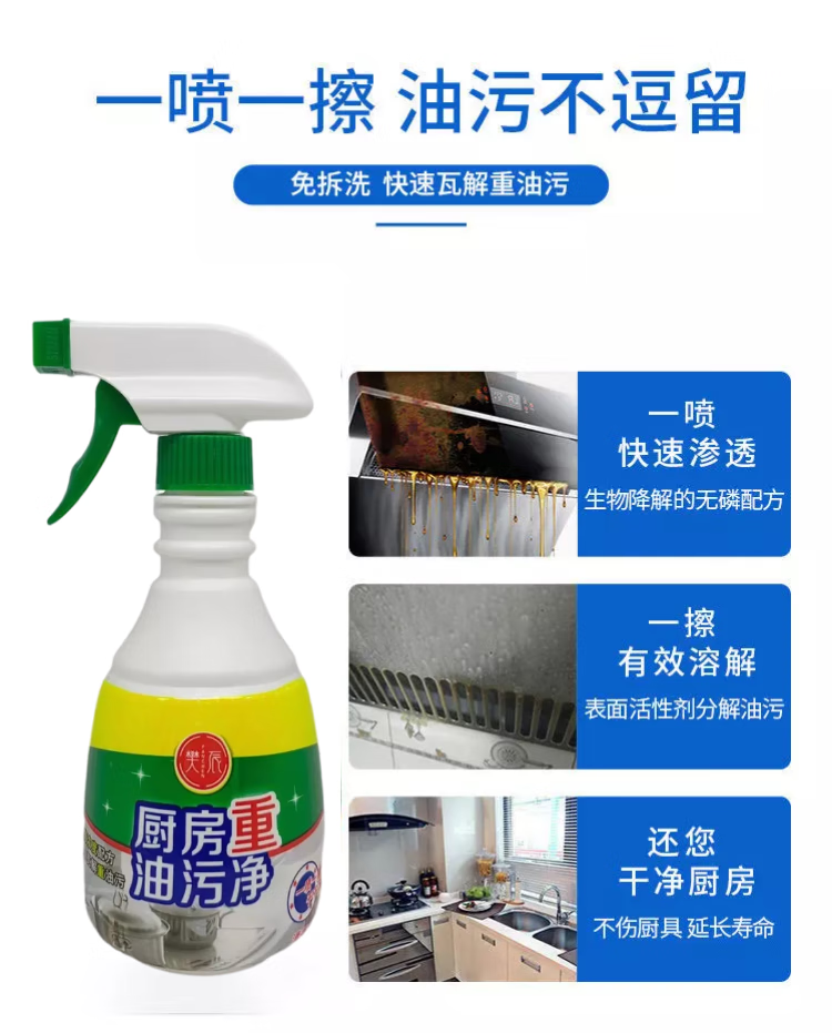 樊辰油污清洁剂厨房重油污净温和不伤釉面不伤手 油污净 400g*3瓶
