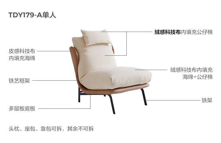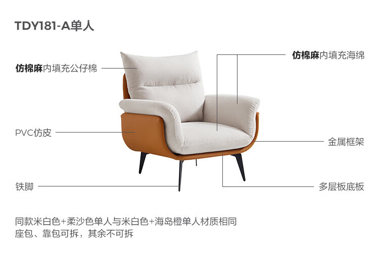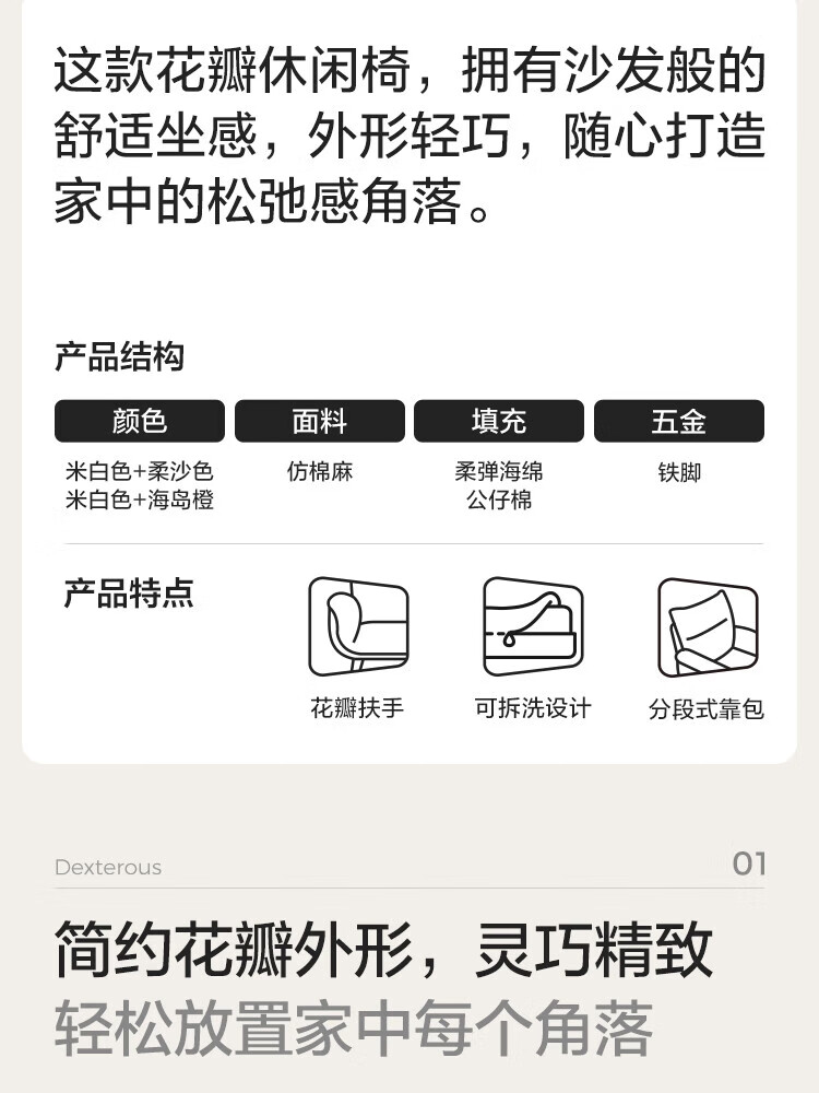 LINSY KIDS花瓣休闲椅客厅单人沙发椅子靠背椅简约小户型林氏木业TDY179 【柔沙色】亲肤仿棉麻TDY181-A
