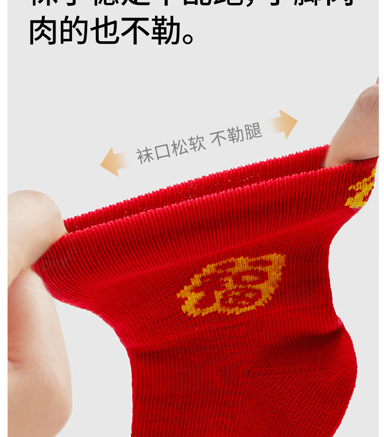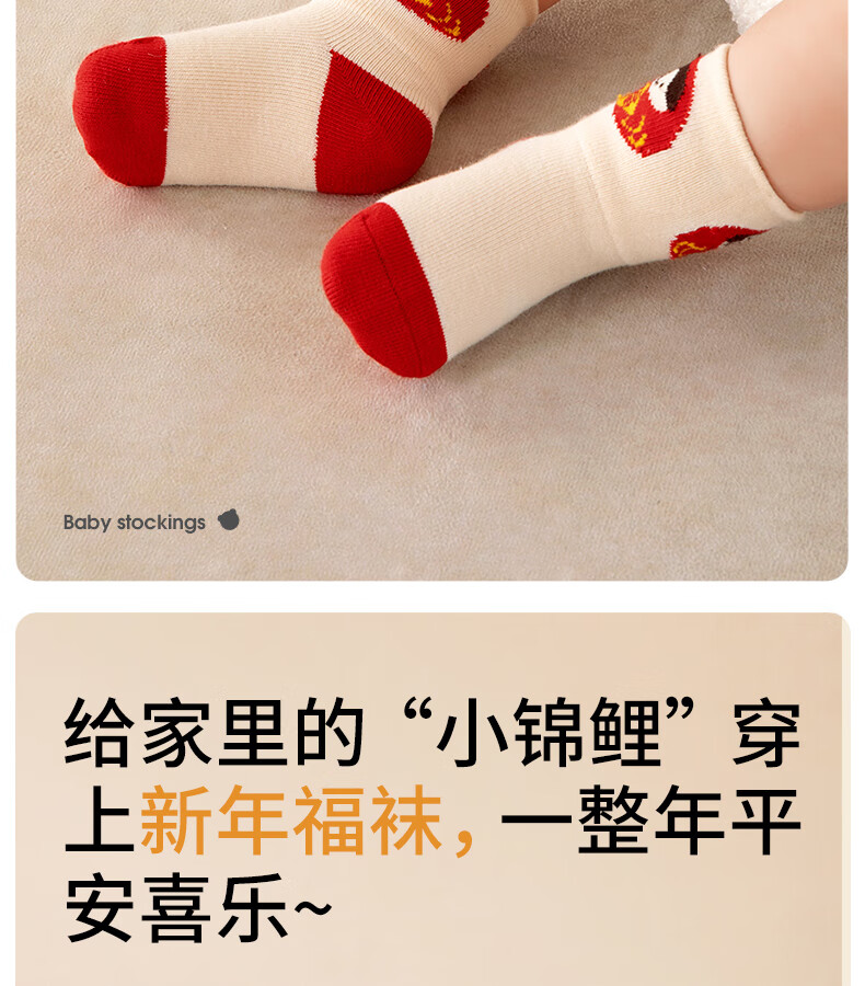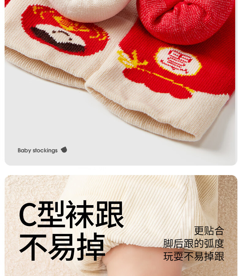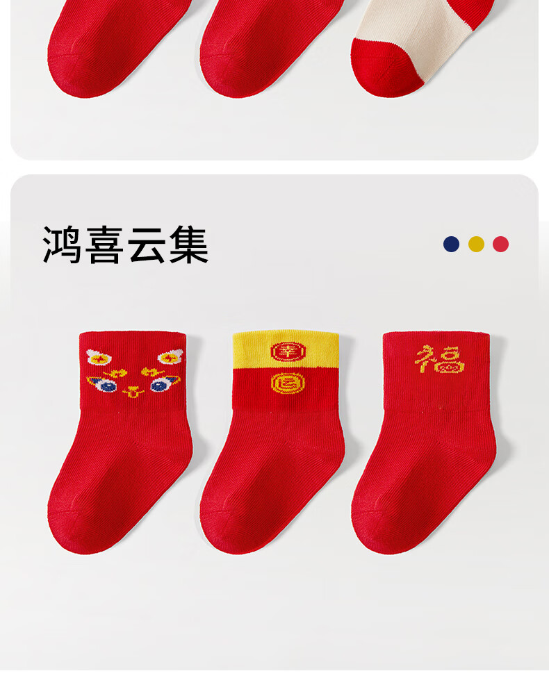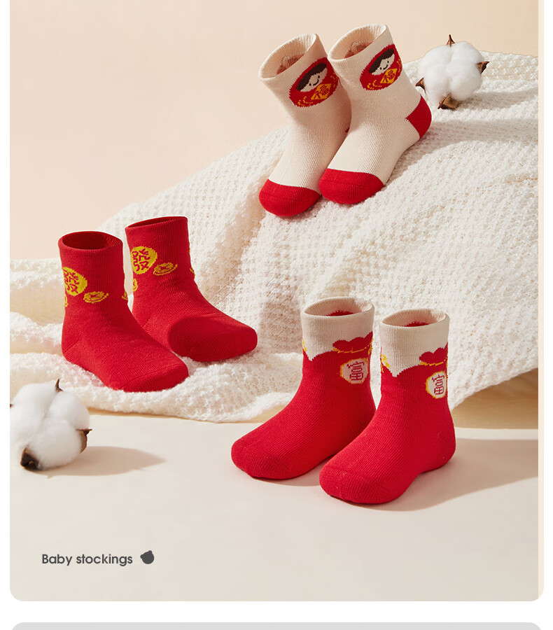 贝肽斯儿童新年红袜子中国风宝宝周岁婴儿百日红色袜子中筒袜棉袜 鸿喜云集. 3双 1-3岁【建议脚长12-14cm】
