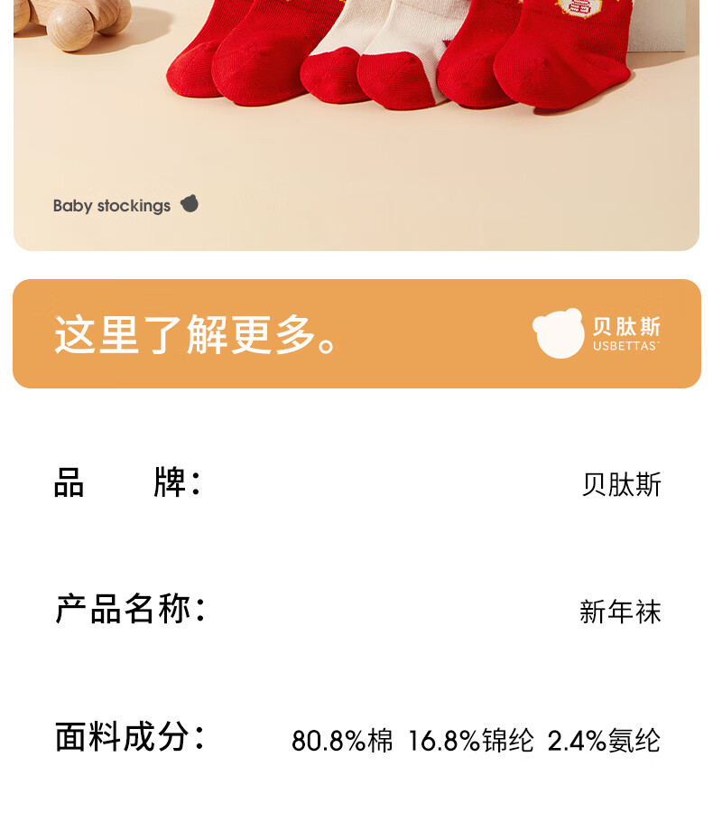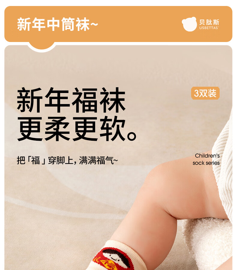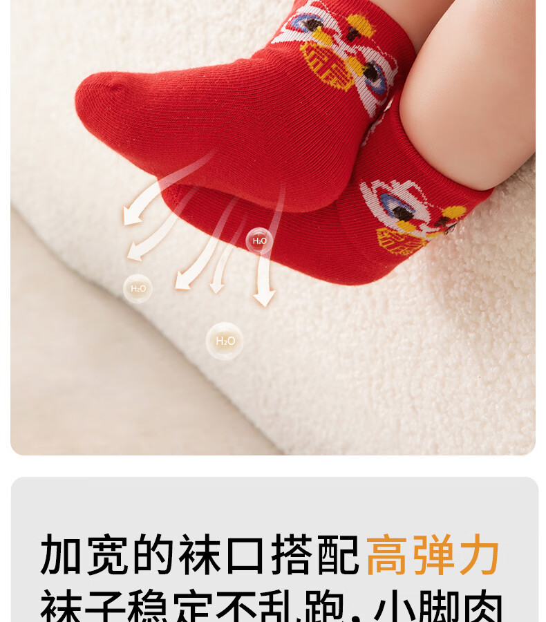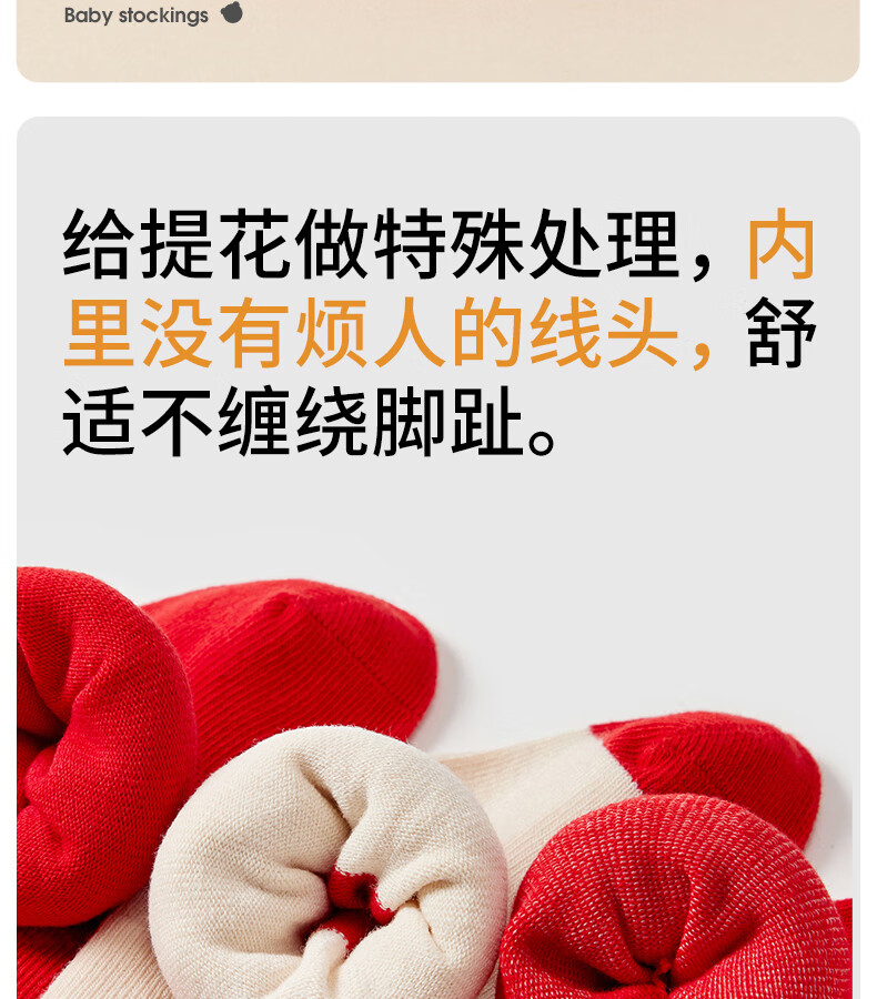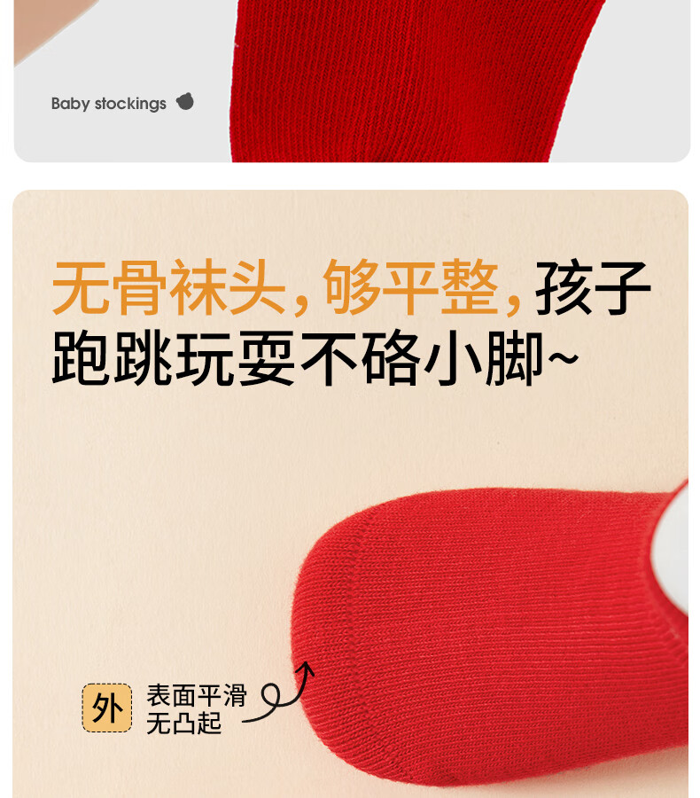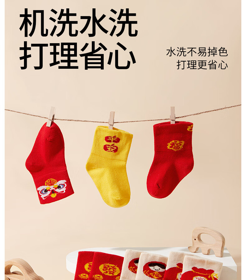 贝肽斯儿童新年红袜子中国风宝宝周岁婴儿百日红色袜子中筒袜棉袜 鸿喜云集. 3双 1-3岁【建议脚长12-14cm】