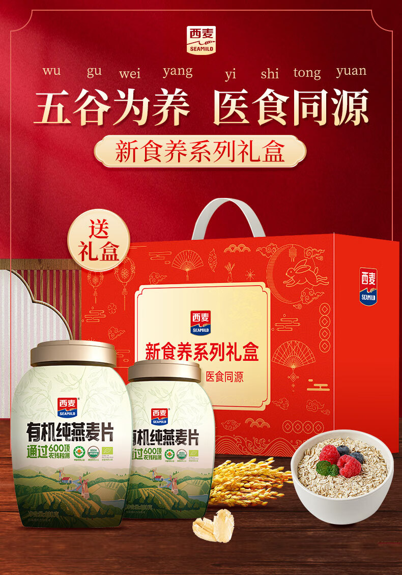 西麦有机纯燕麦片礼盒1760g 高蛋白膳食纤维圣诞新年送礼佳品长辈