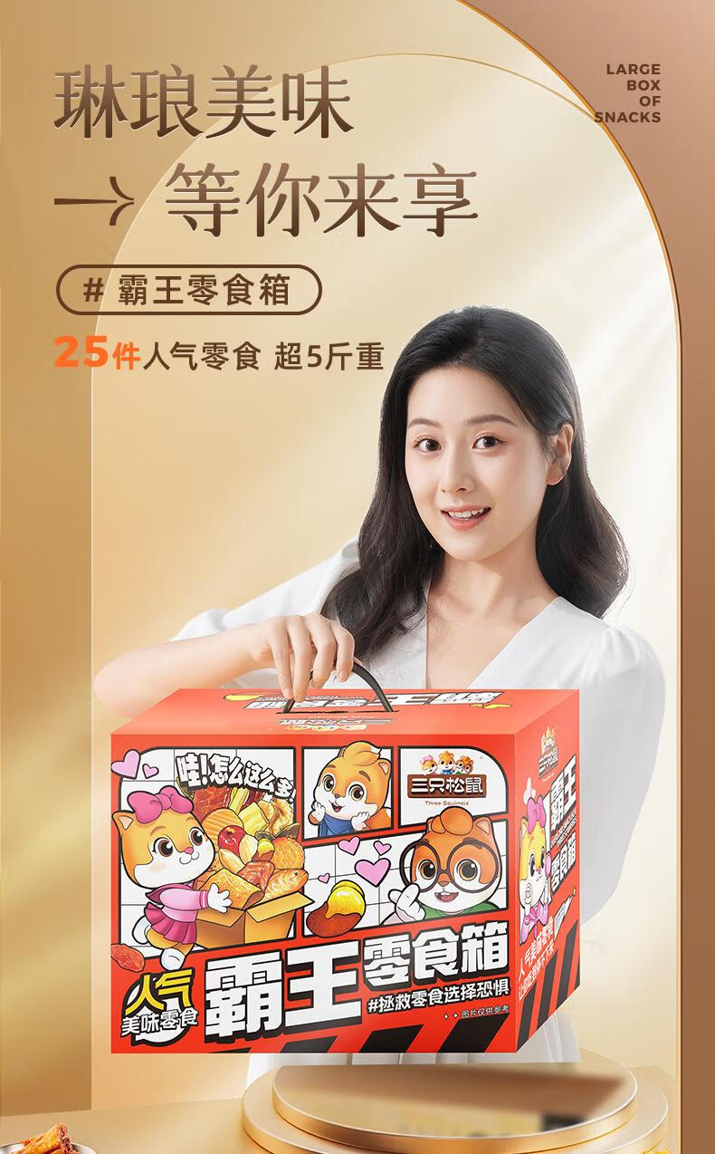三只松鼠霸王零食箱25袋2557g休闲肉食蜜饯巨型零食送礼送女友新年送礼