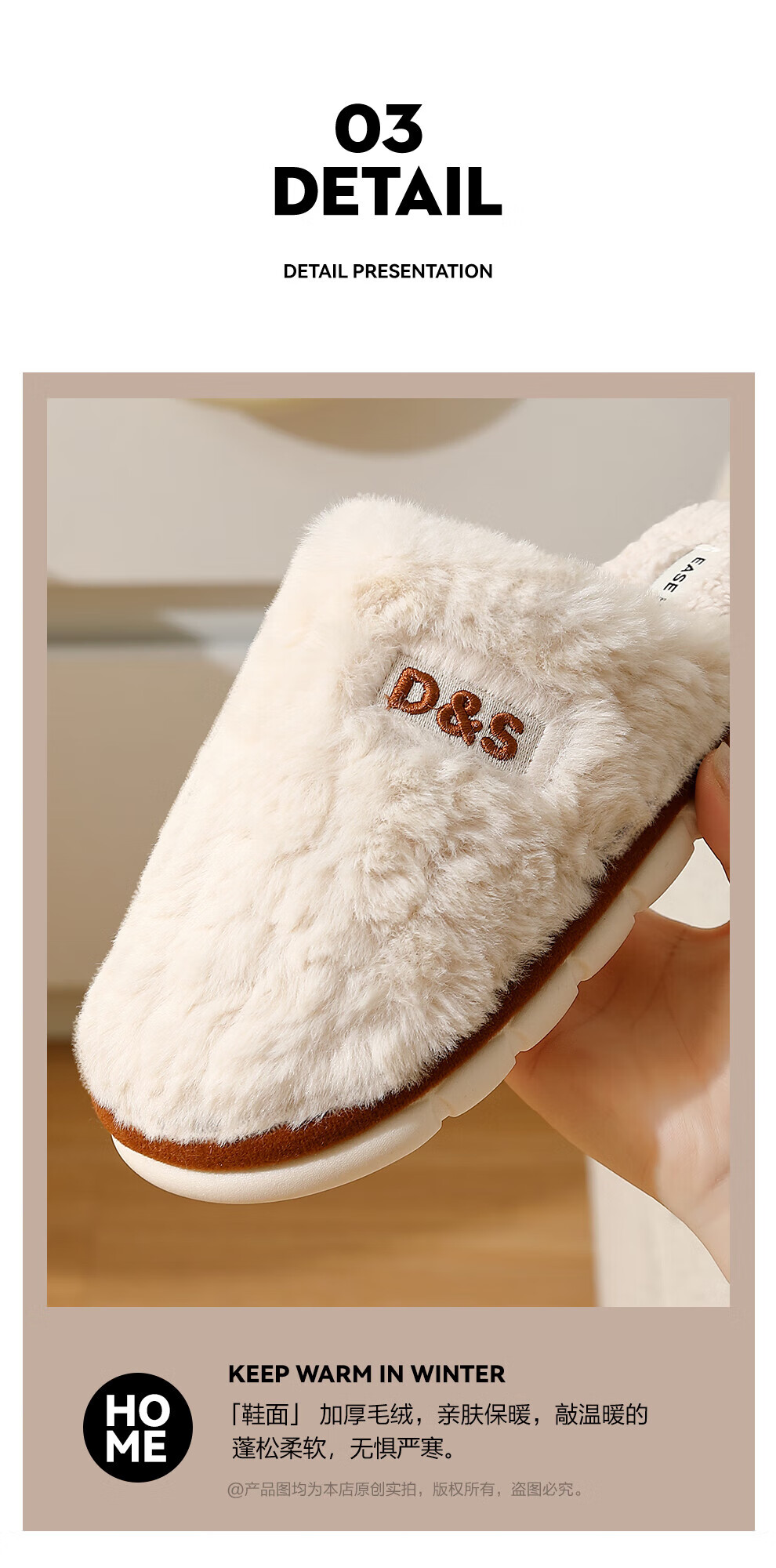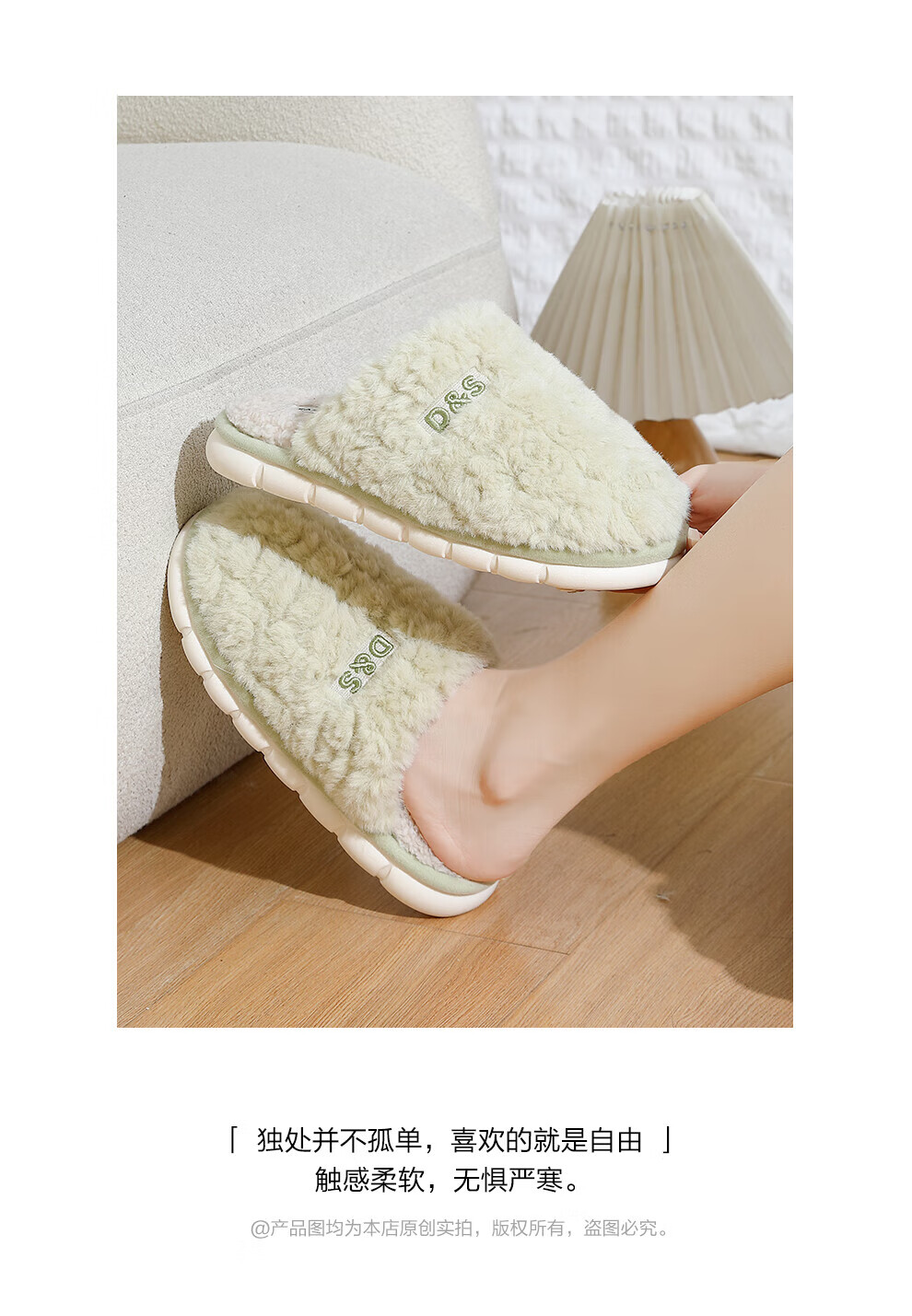FZT棉拖鞋女士秋冬季新款室内家居保暖厚底防滑包头毛毛绒月子棉鞋男 白色 40-41 标准码