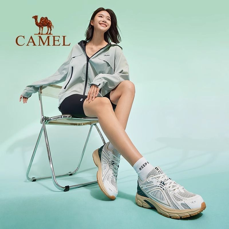骆驼光圈运动鞋女款复古慢跑鞋2026新款女鞋网面透气跑步鞋休闲鞋