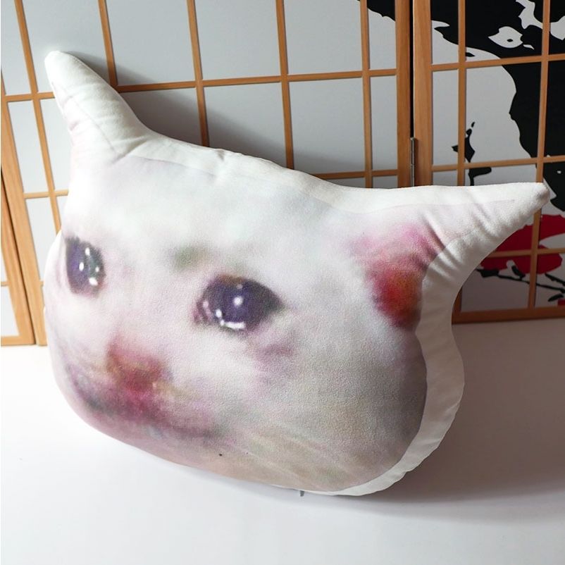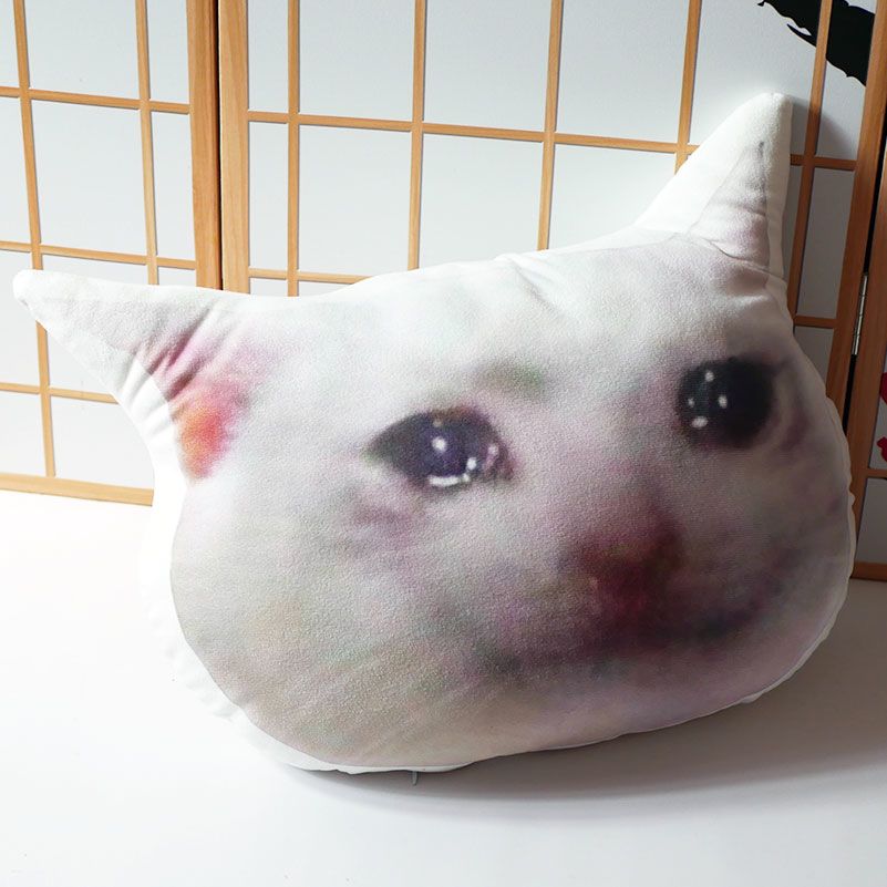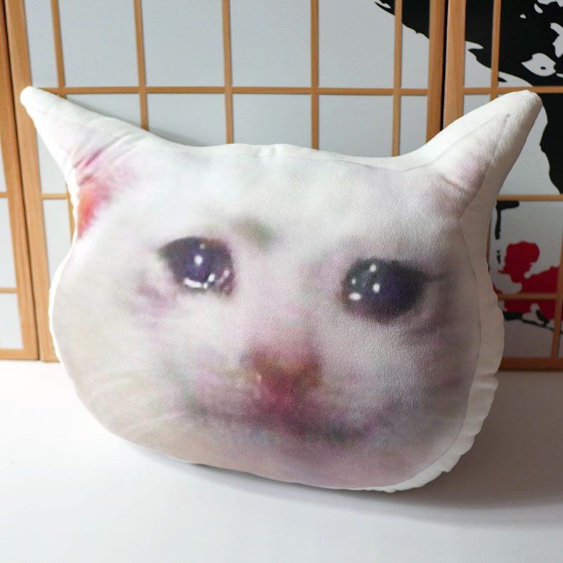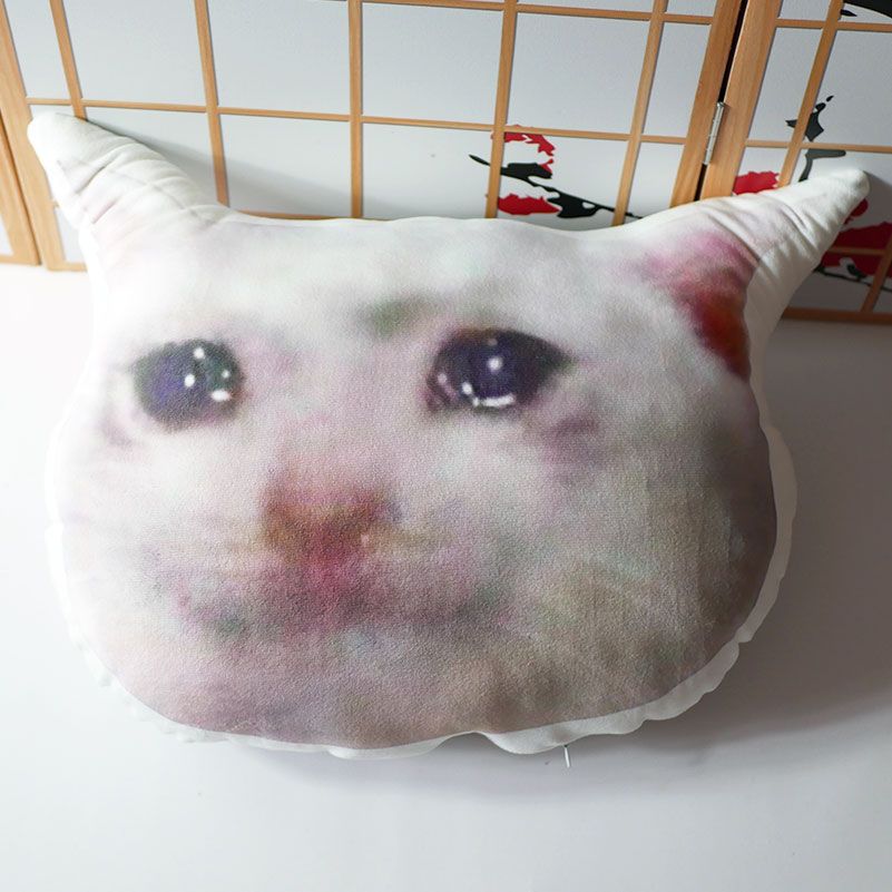 crying cat流泪猫猫头哭哭猫沙雕表情包恶搞笑抱枕毛绒双面靠垫