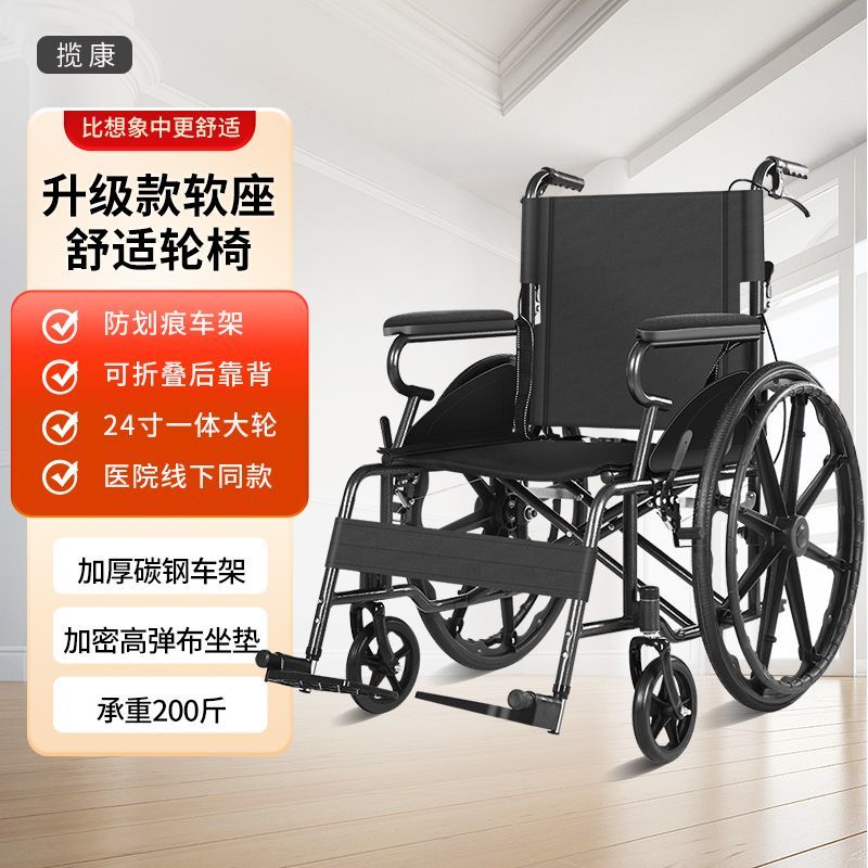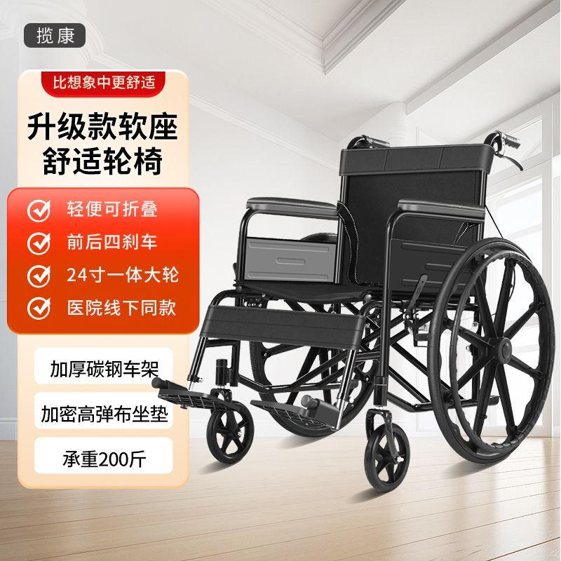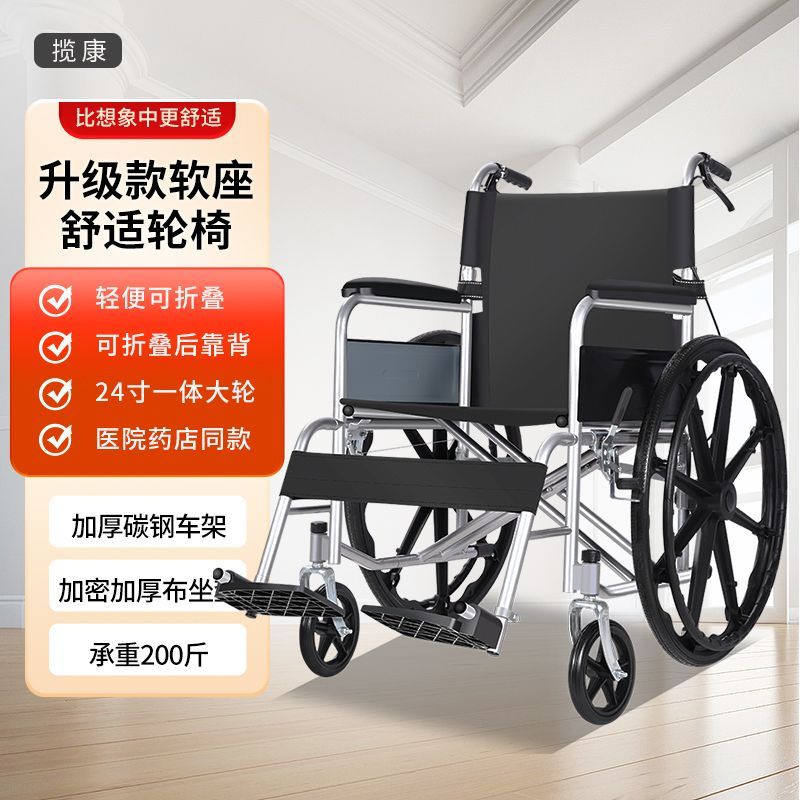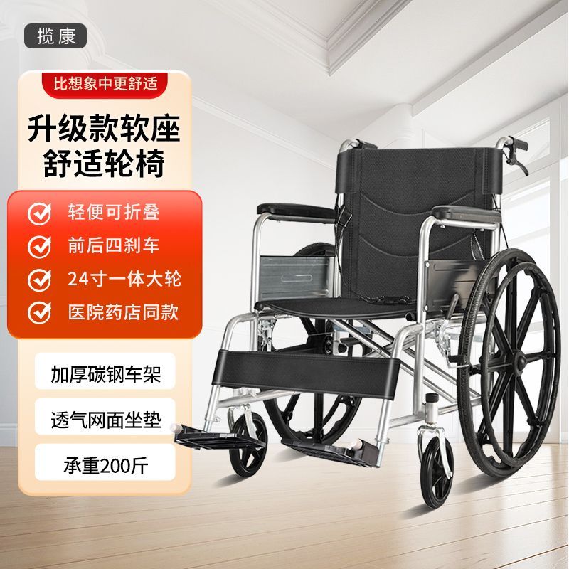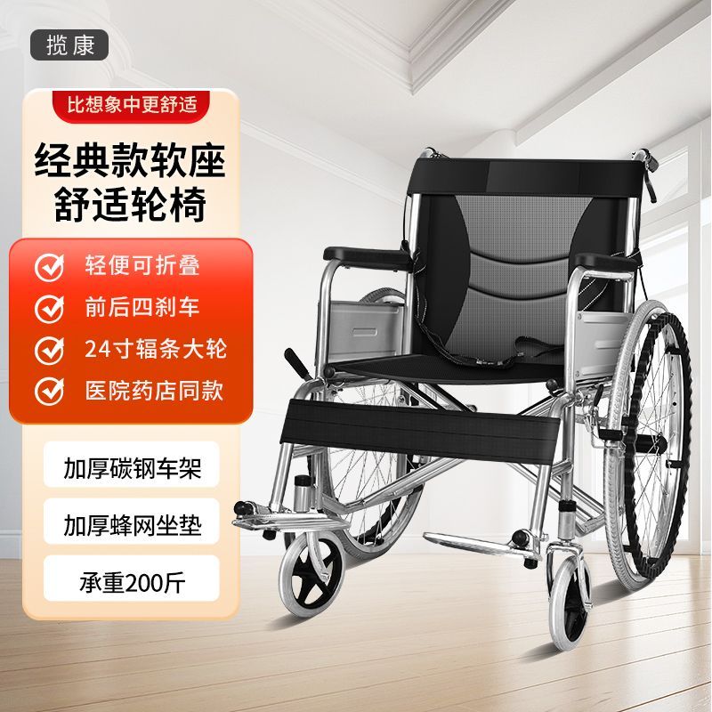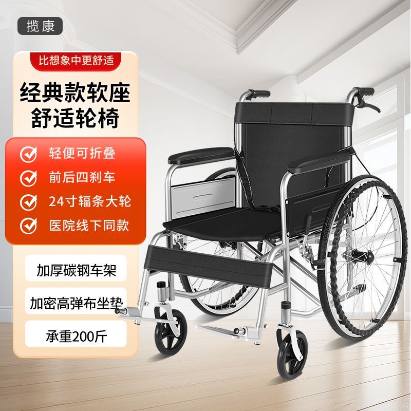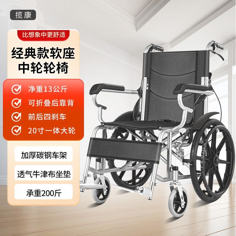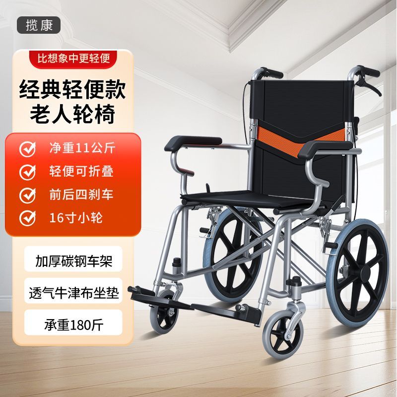 揽康手动轮椅轻便折叠老年人残疾人代步医用车老年款手推轮椅车