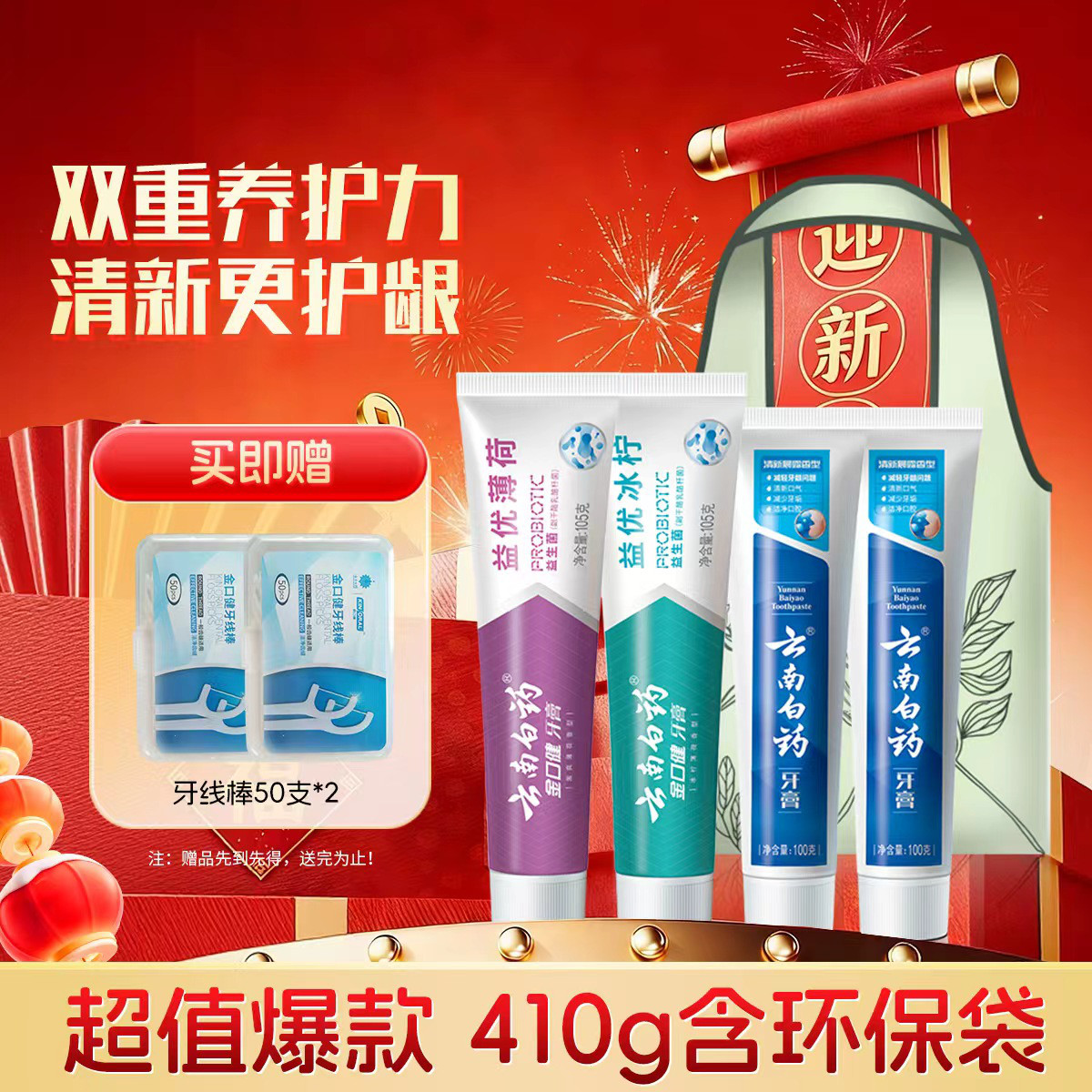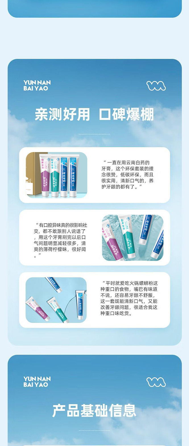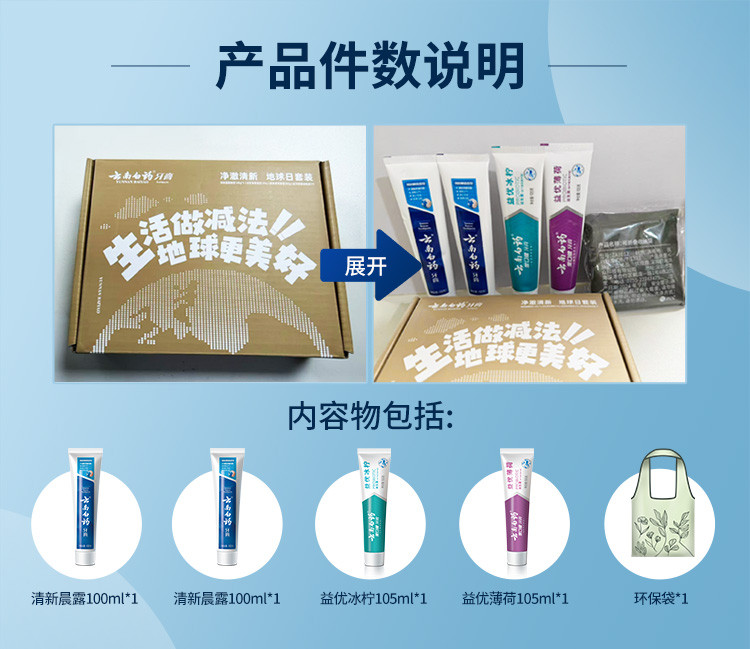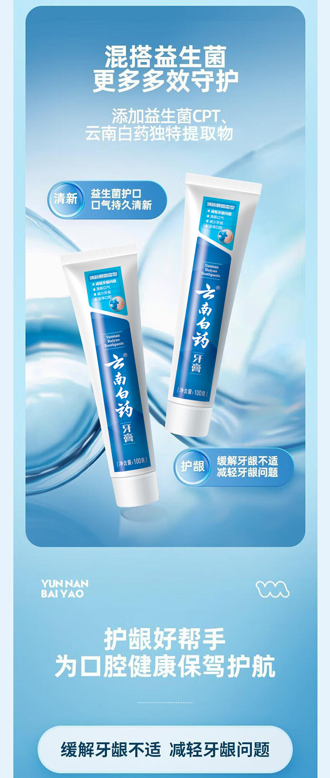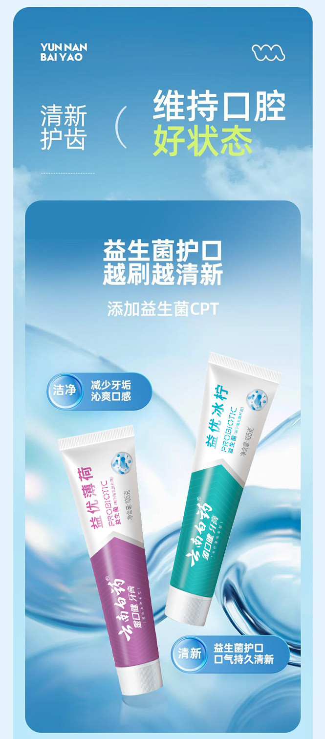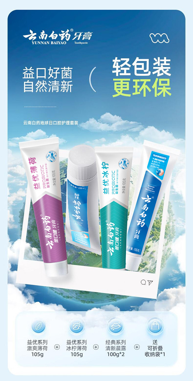云南白药 【镇店爆款】益生菌牙膏套装清新护龈牙膏4支装送环保购物袋