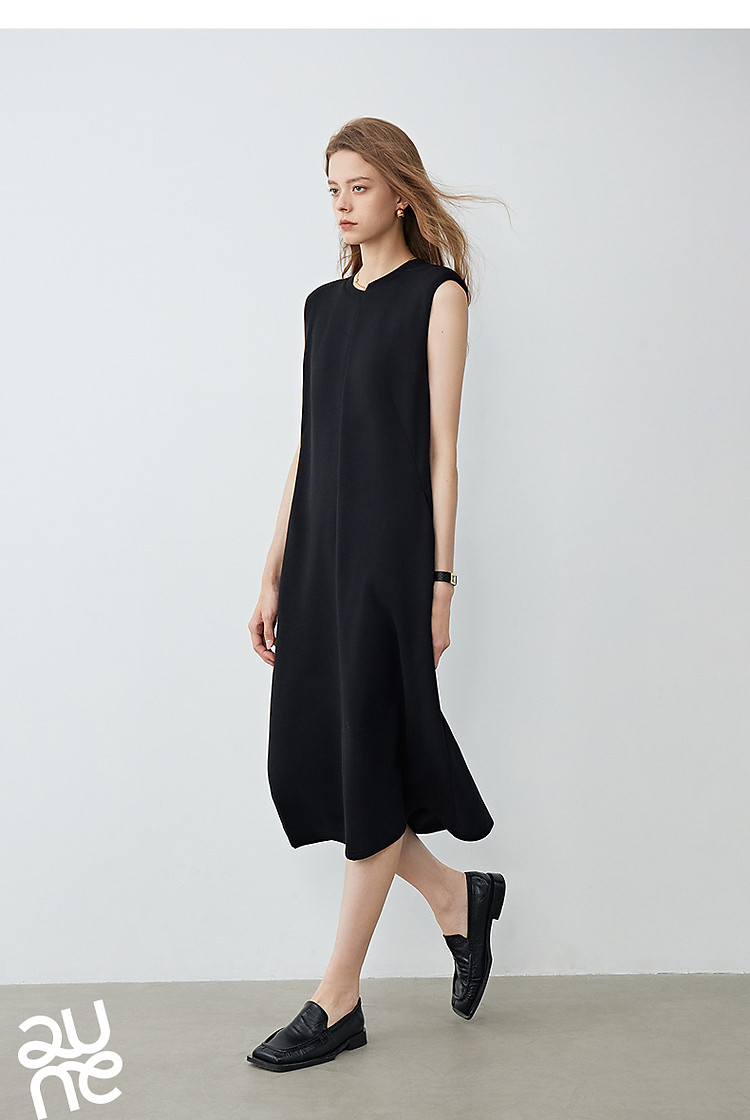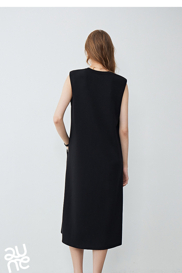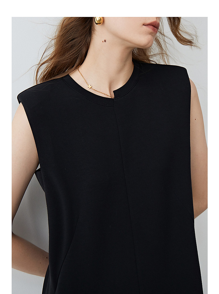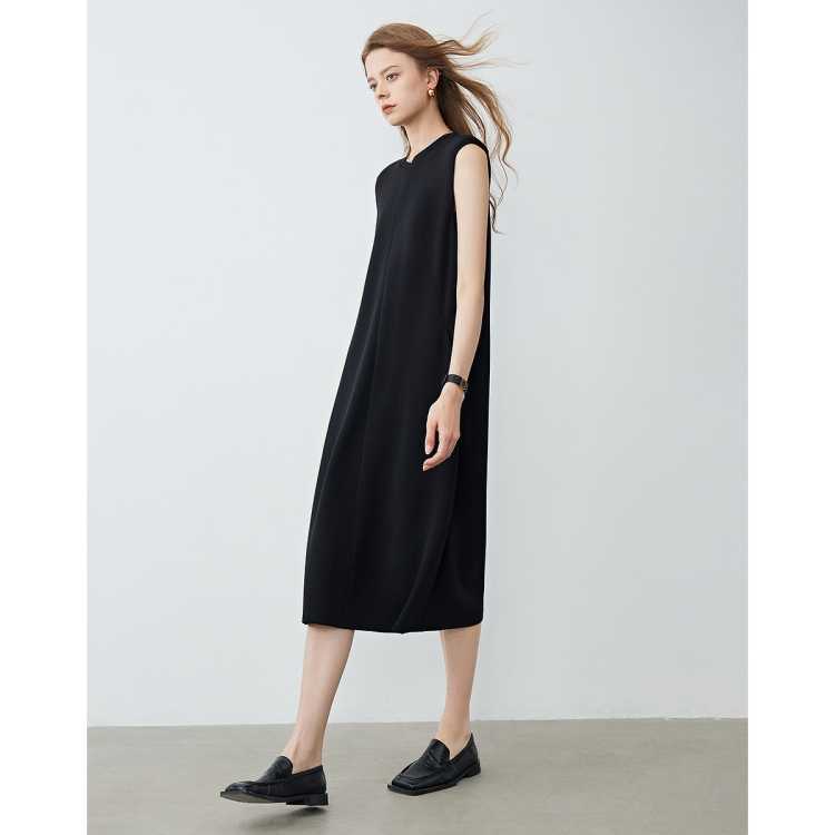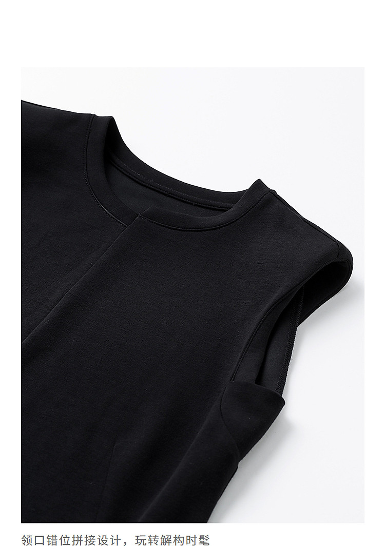 初语 【通勤高级感】25秋季无袖背心裙女错位领口内搭连衣裙小黑裙