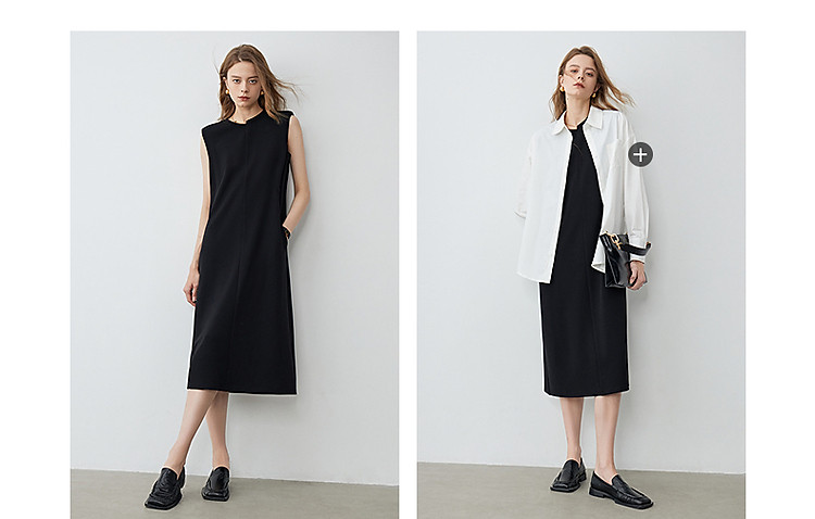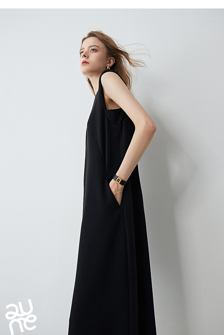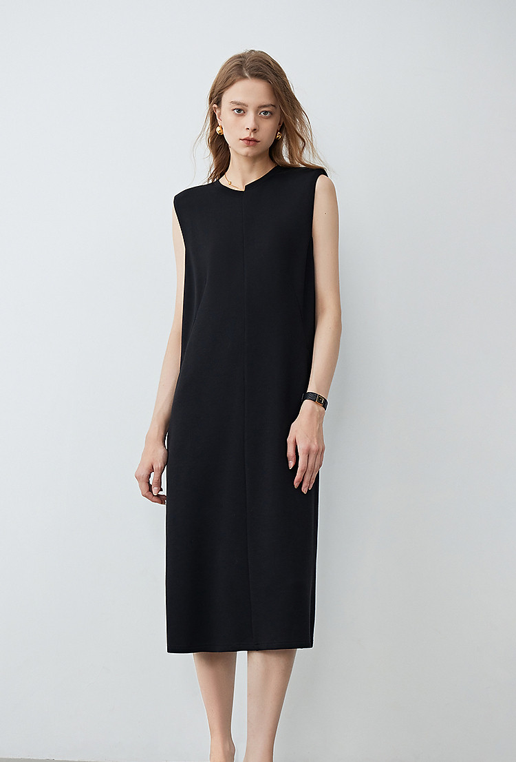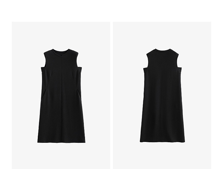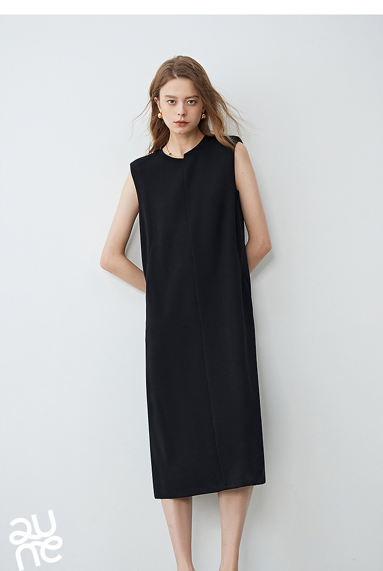初语 【通勤高级感】25秋季无袖背心裙女错位领口内搭连衣裙小黑裙