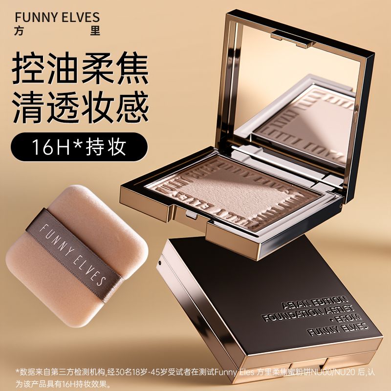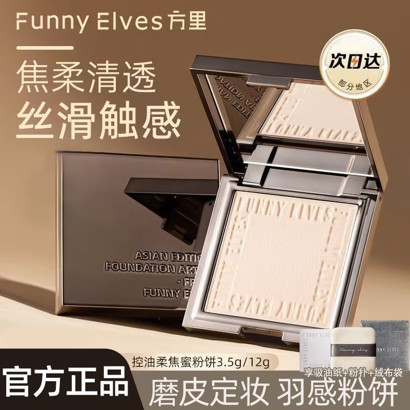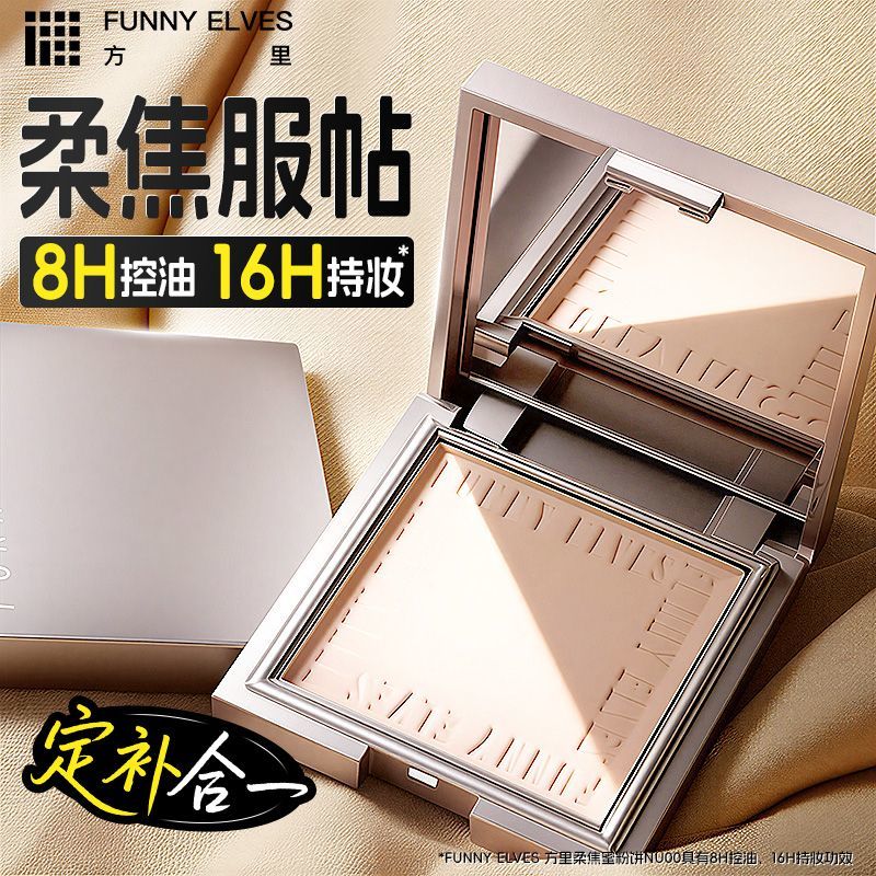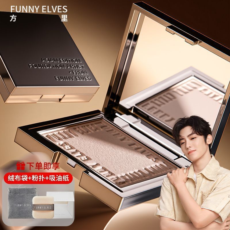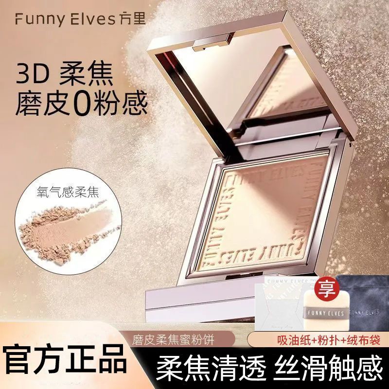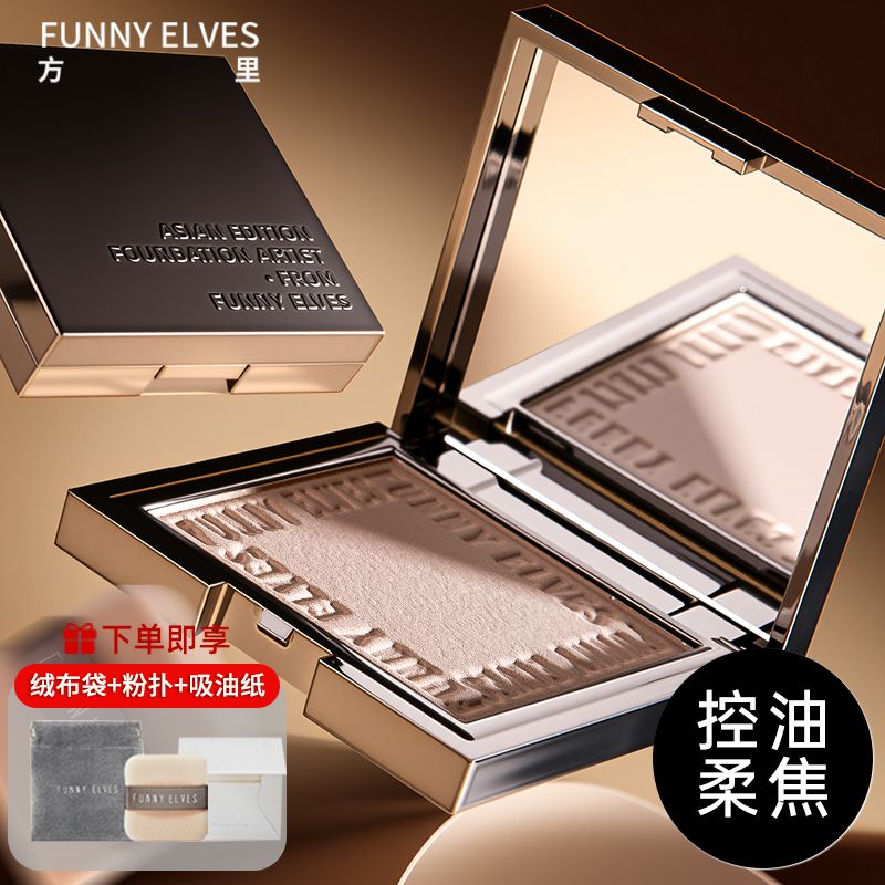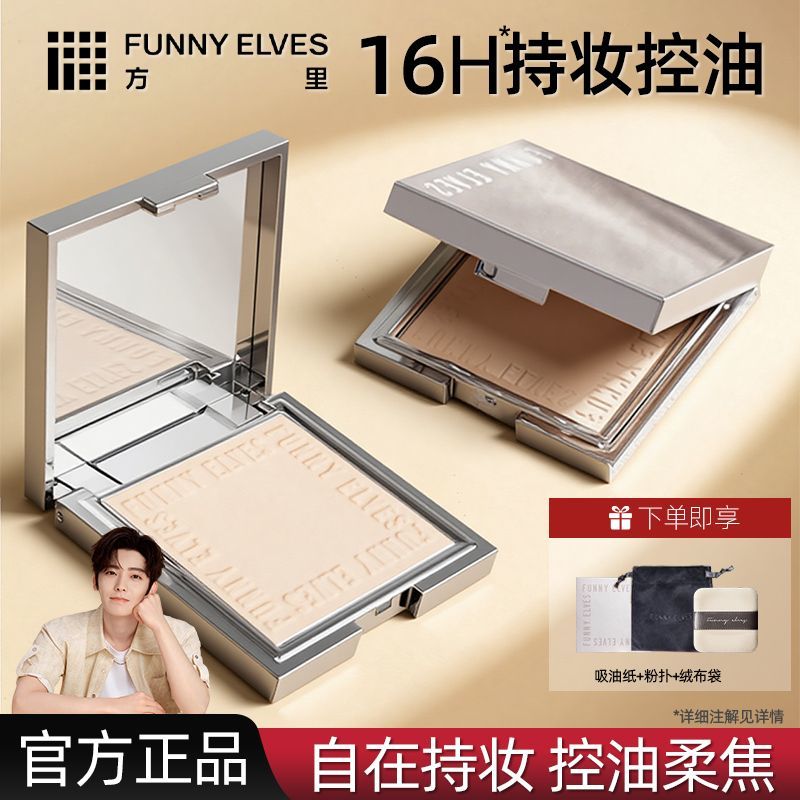 FunnyElves方里柔焦蜜粉饼遮瑕持久定妆控油轻透防水不卡粉侯明昊