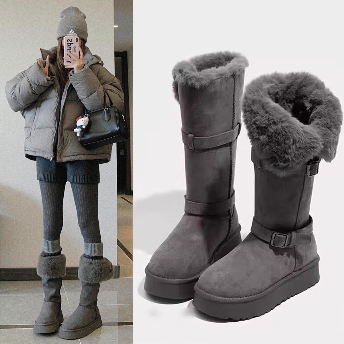 2025冬季新款北方厚款高筒灰色雪地靴女加绒保暖防滑棉鞋