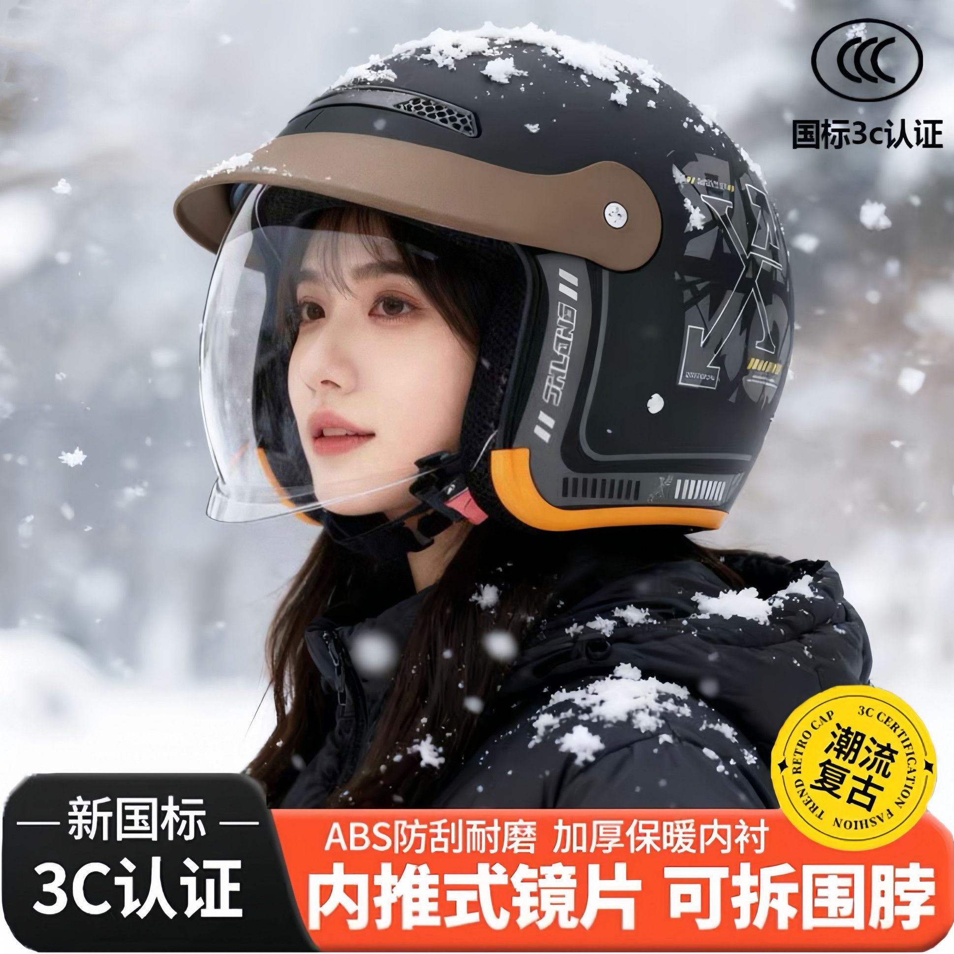 新国标3C认证电动头盔男女款通用冬季防寒四季适用内推式镜片保暖