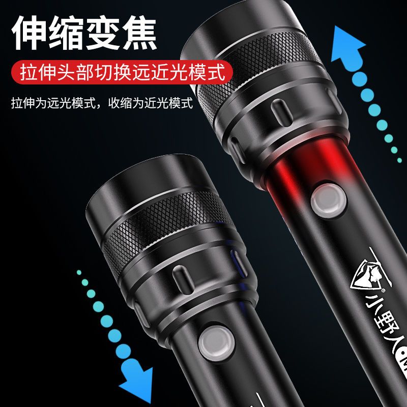 小野人强光手电筒可充电超亮远射家用迷你学生宿舍超长待机户外耐
