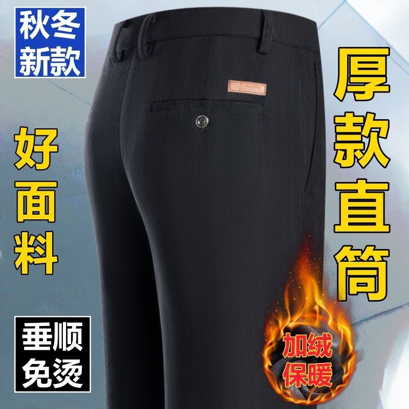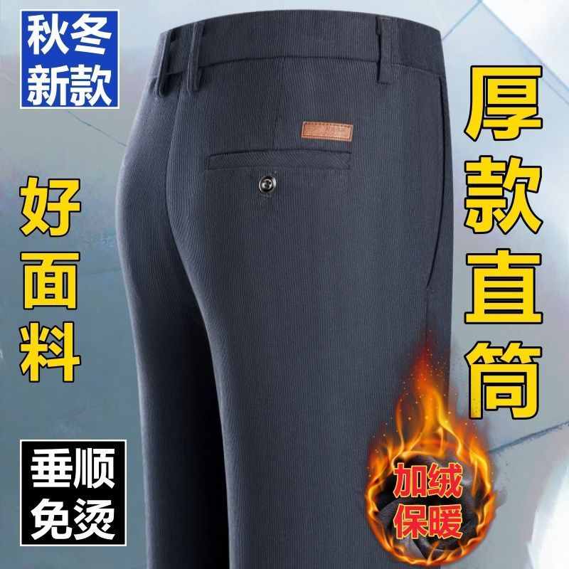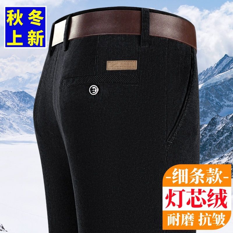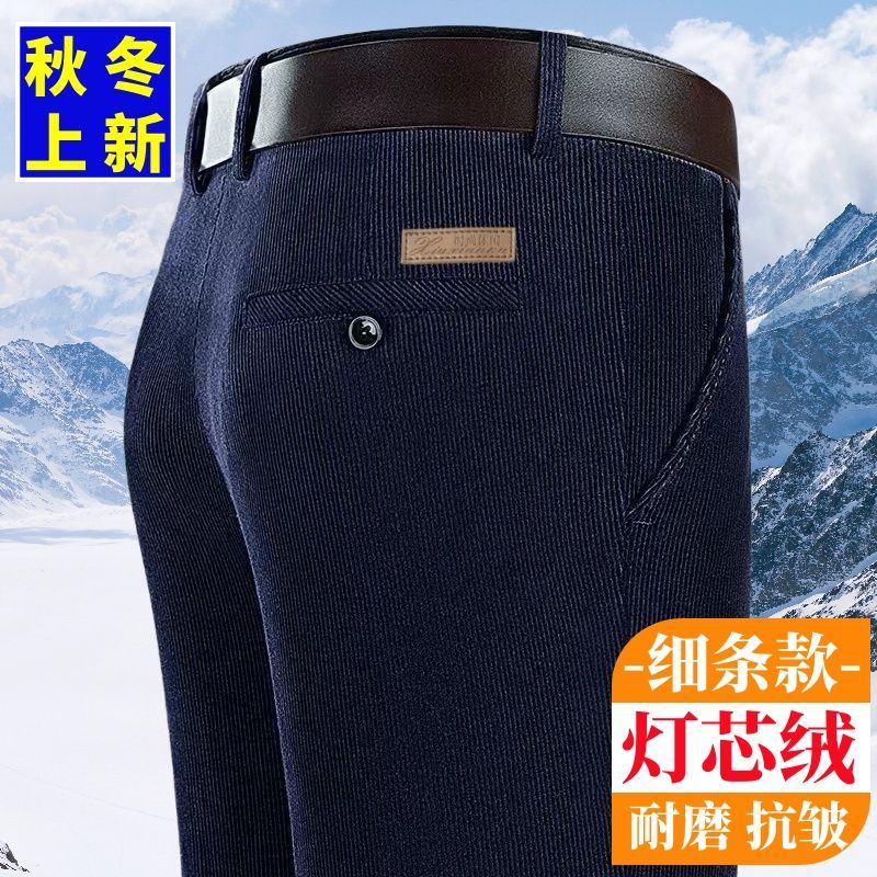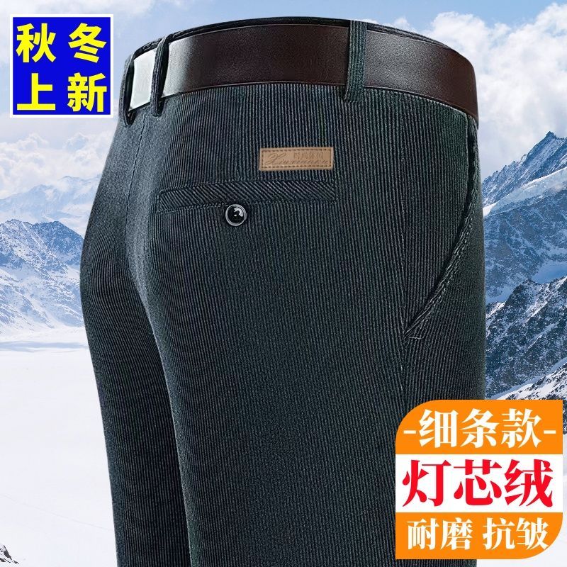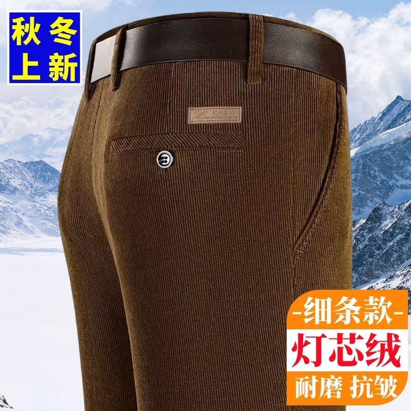 秋冬季细条灯芯绒中老年男裤厚款条绒裤子直筒宽松高腰爸爸休闲裤