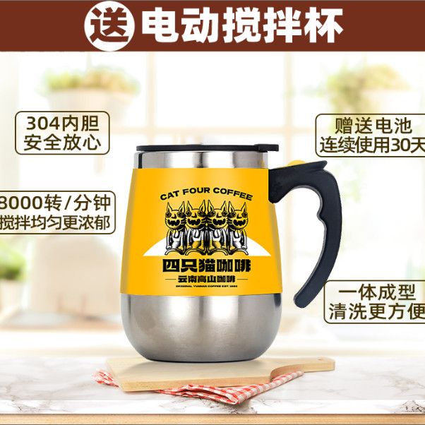 [190条+电动搅拌杯+零卡糖]四只猫特浓拿铁蓝山
