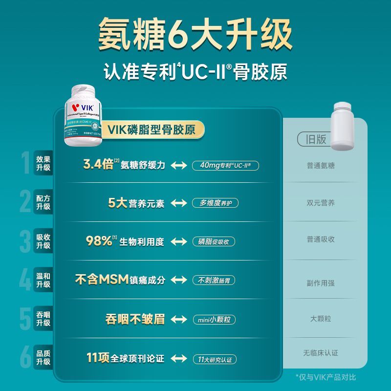 VIK逢时进口骨胶原专利非变性II型胶原蛋白氨基葡萄糖软骨素