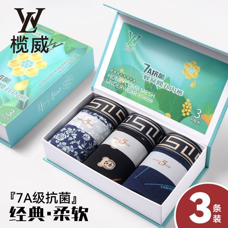纯棉男士内裤中式民族风透气舒适平角裤抗菌潮流四角短裤裤衩礼盒