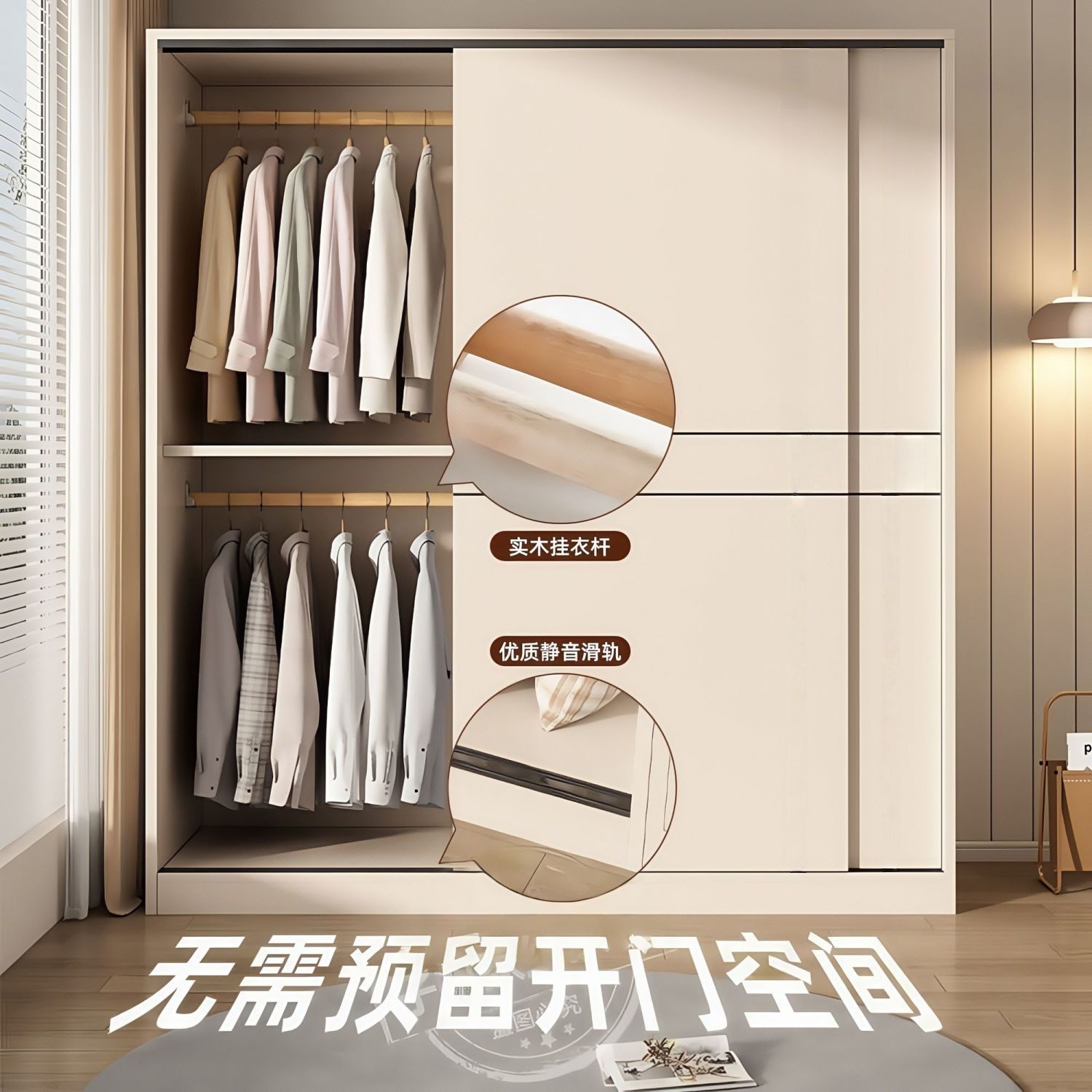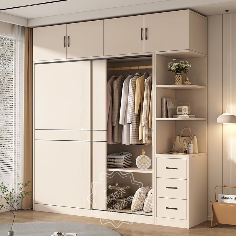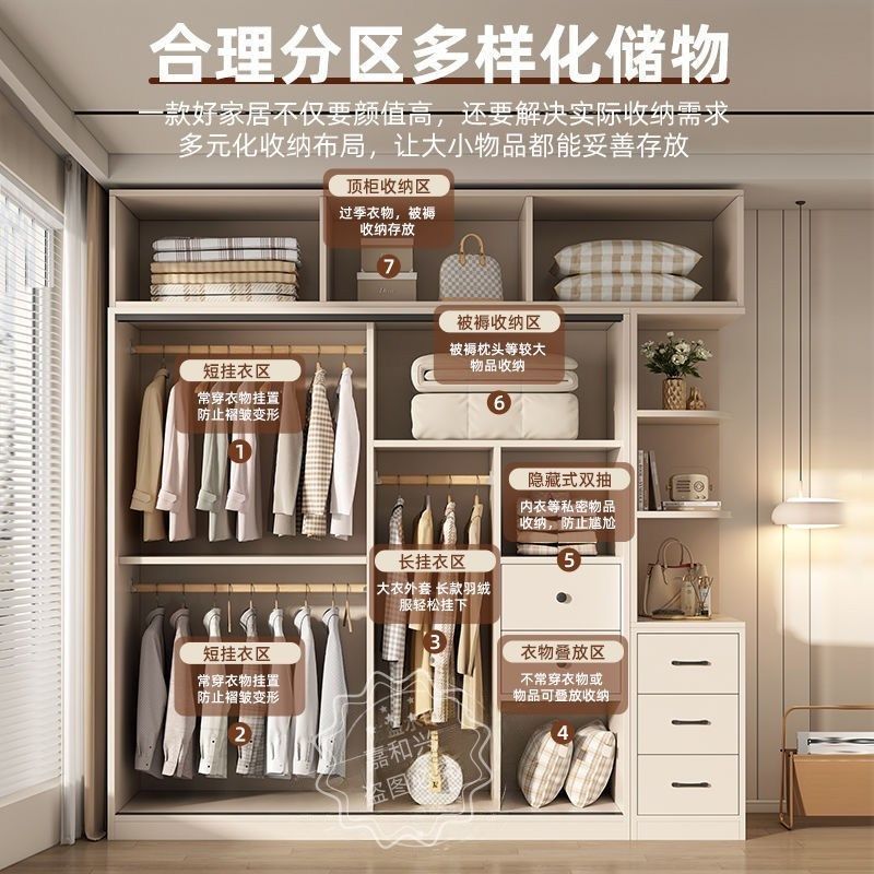 嘉和兴衣柜家用卧室推拉门简约现代出租房带抽屉儿童收纳柜大衣柜