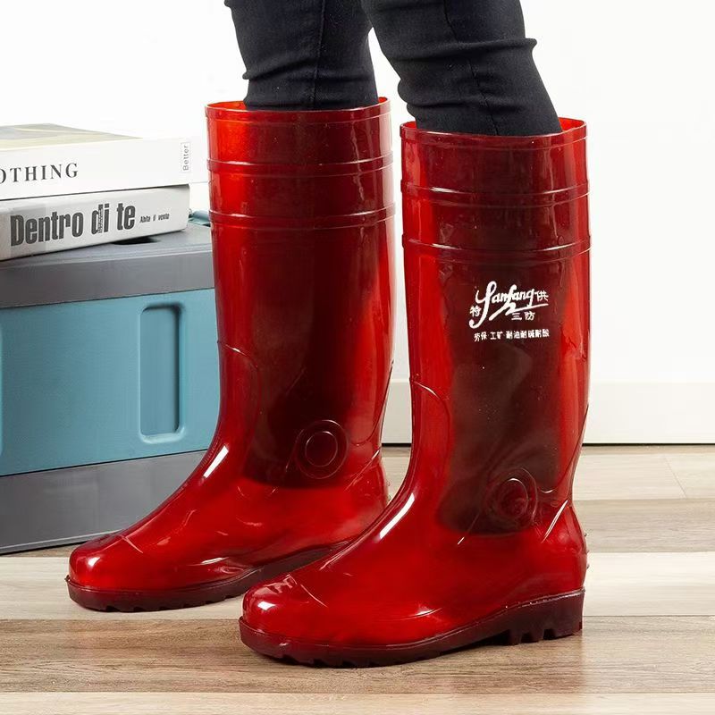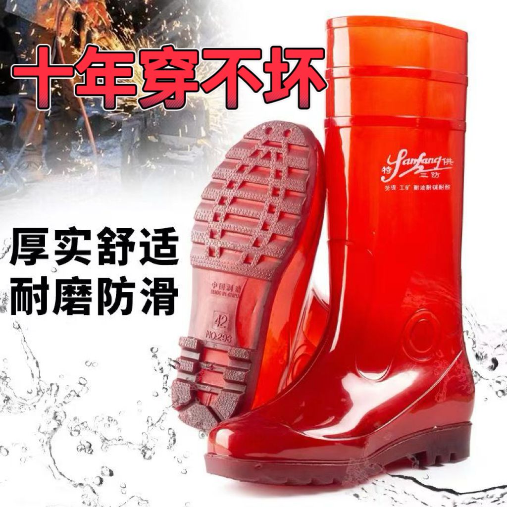 茶色户外男士雨鞋速干高筒防水劳保工地鞋防滑胶鞋雨靴速洗款
