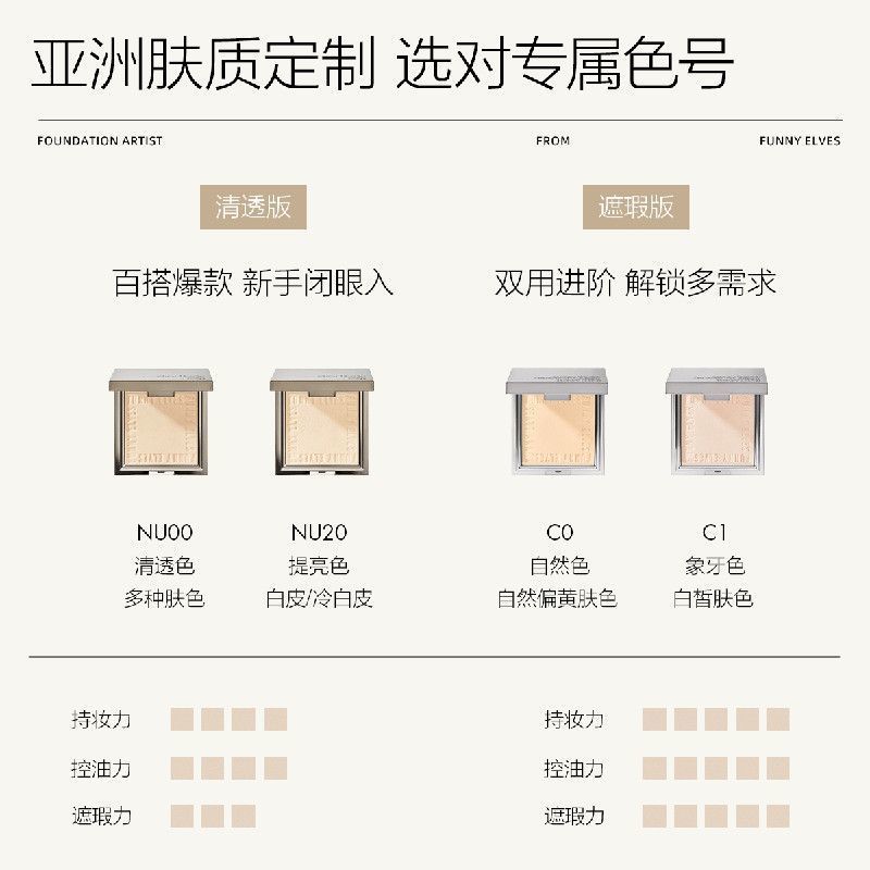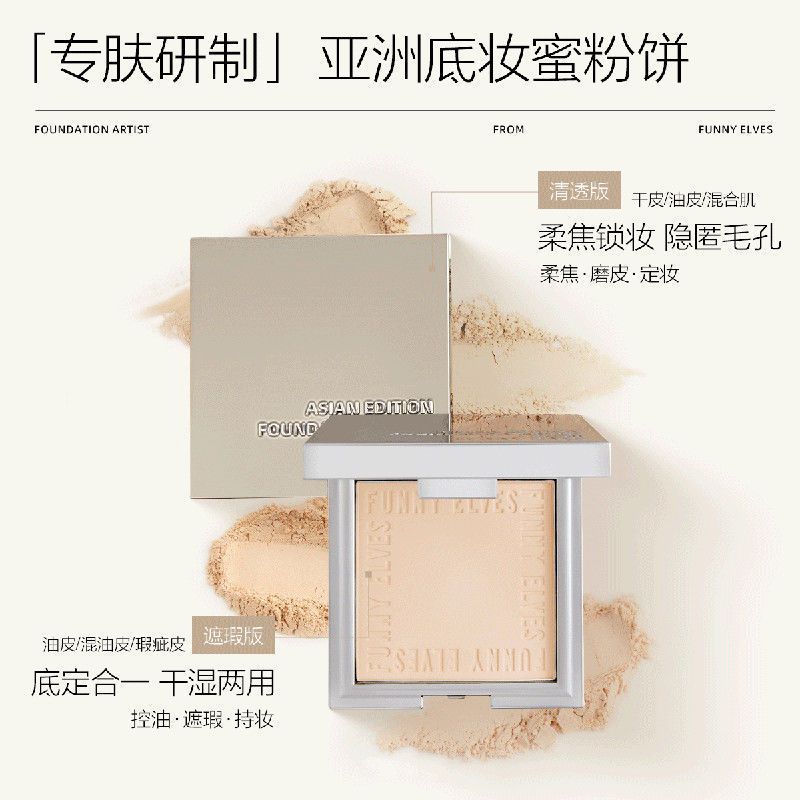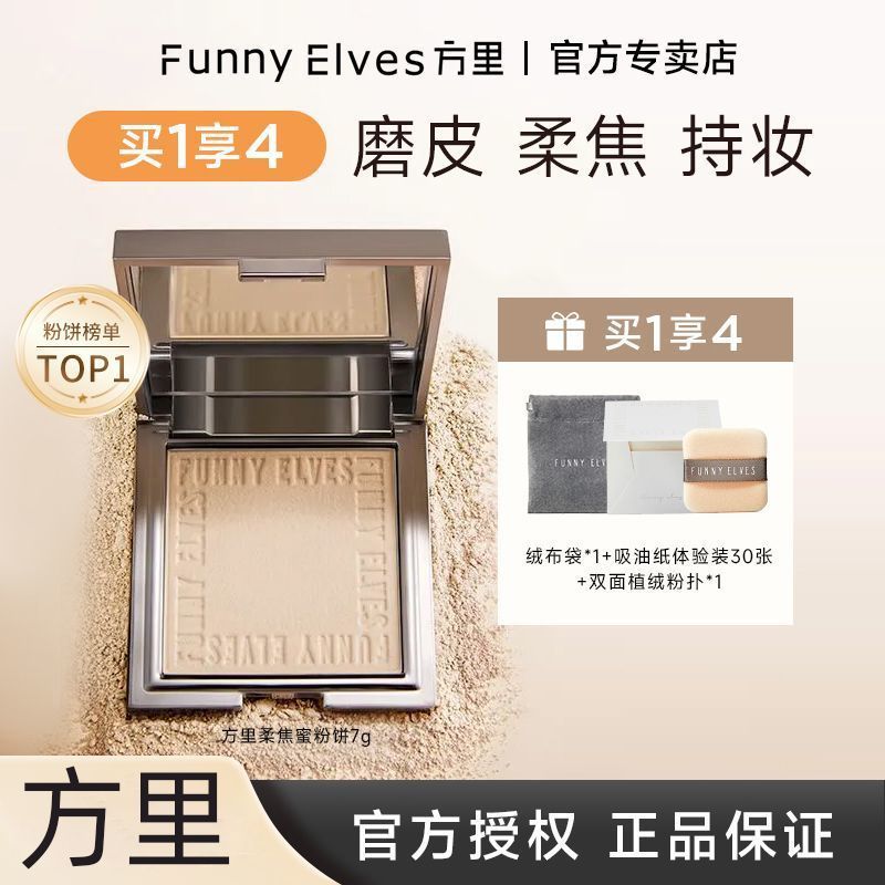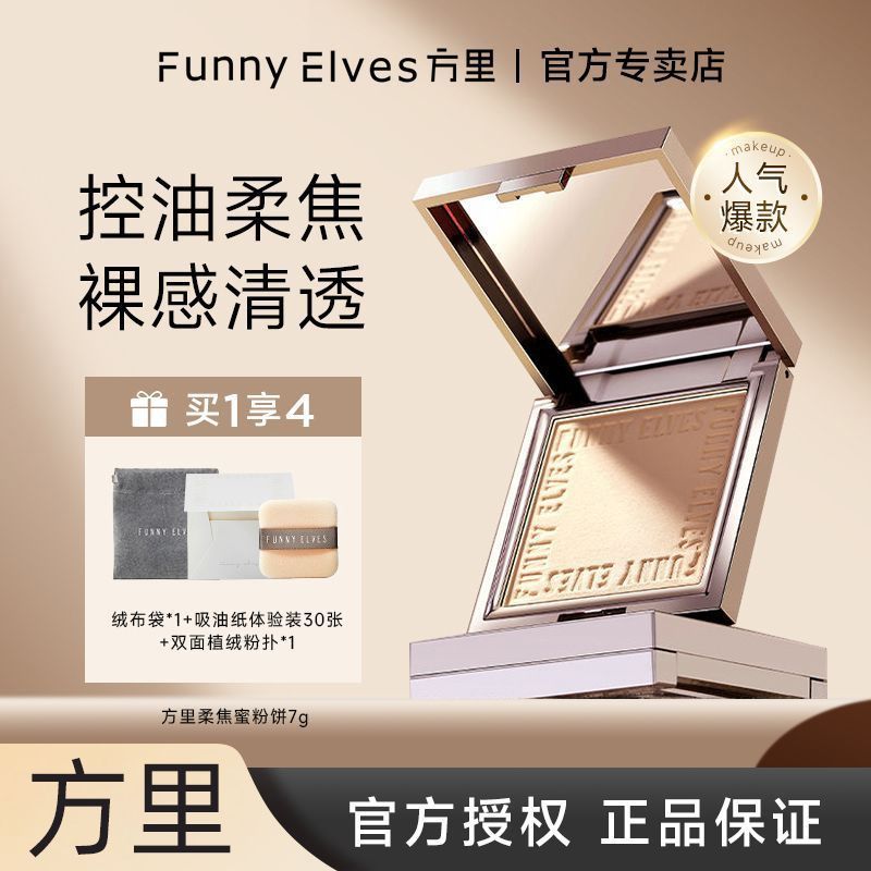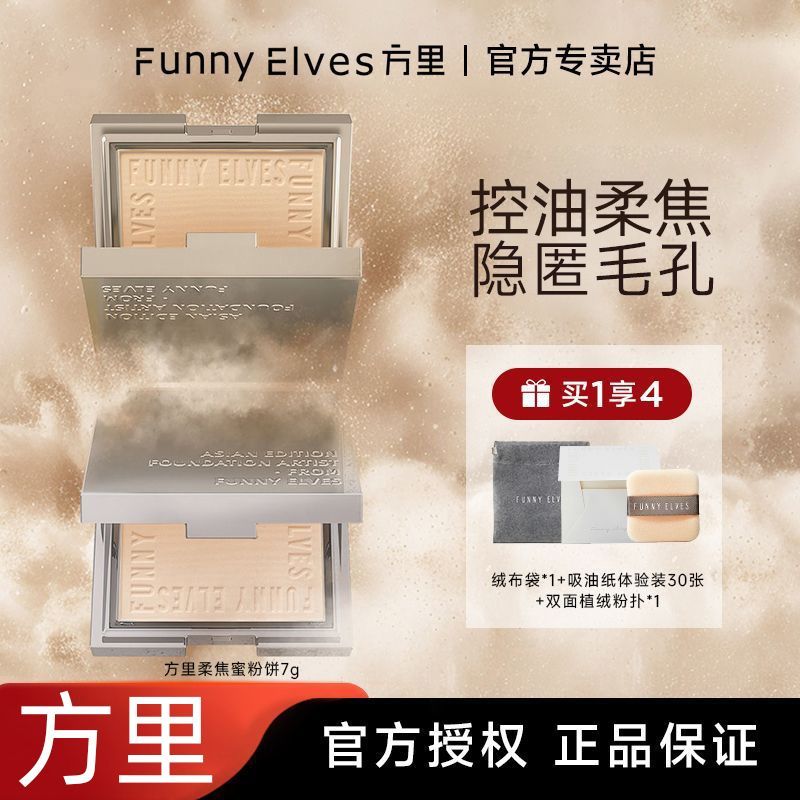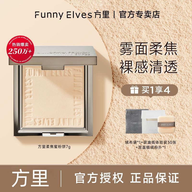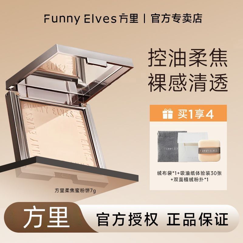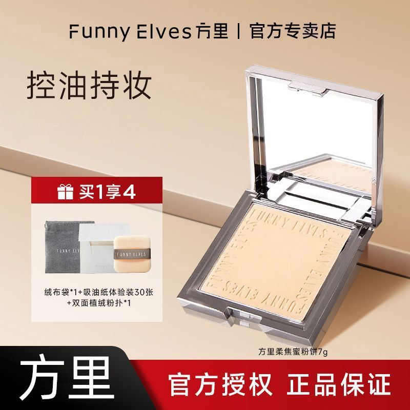 Funnyelves方里粉饼控油定妆补妆雾面柔焦遮瑕毛孔磨皮持妆蜜粉饼