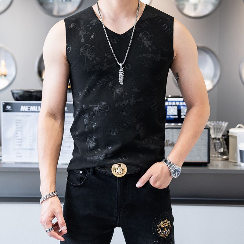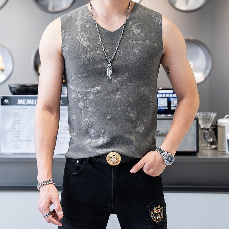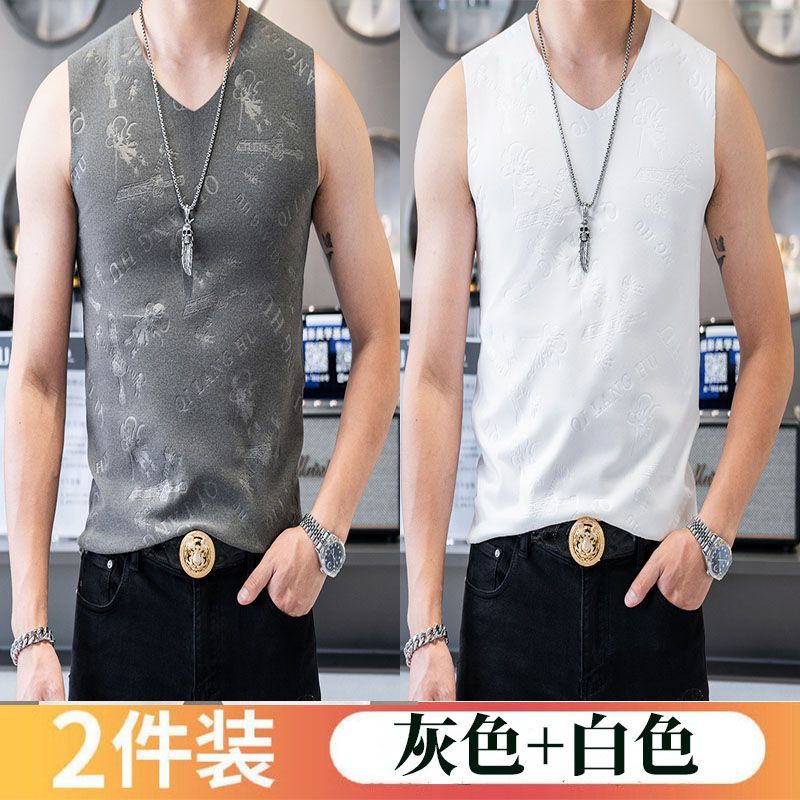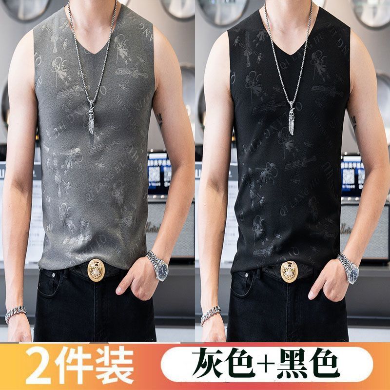 哪吒大码男士秋冬无痕背心磨毛V领保暖背心运动上衣无袖潮流1/2