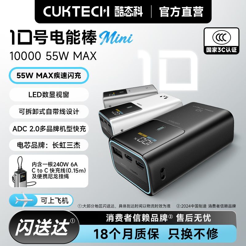 CUKTECH酷态科10号迷你充电宝10000毫安移动电源快充适用小米苹果