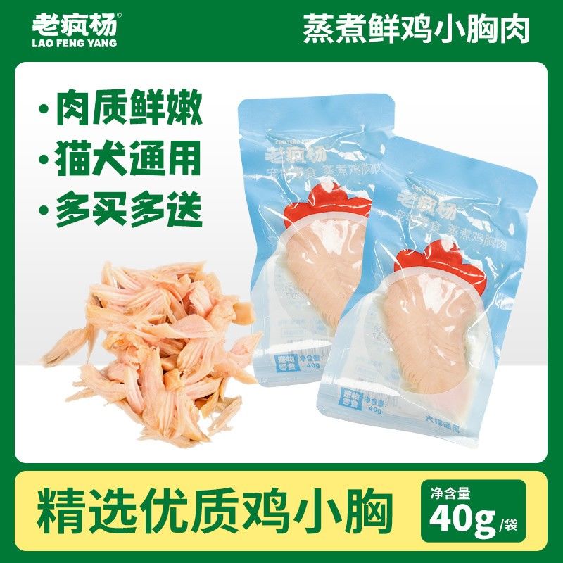 老疯杨狗狗猫咪零食蒸煮鲜鸡小胸肉蛋白营养湿粮50包