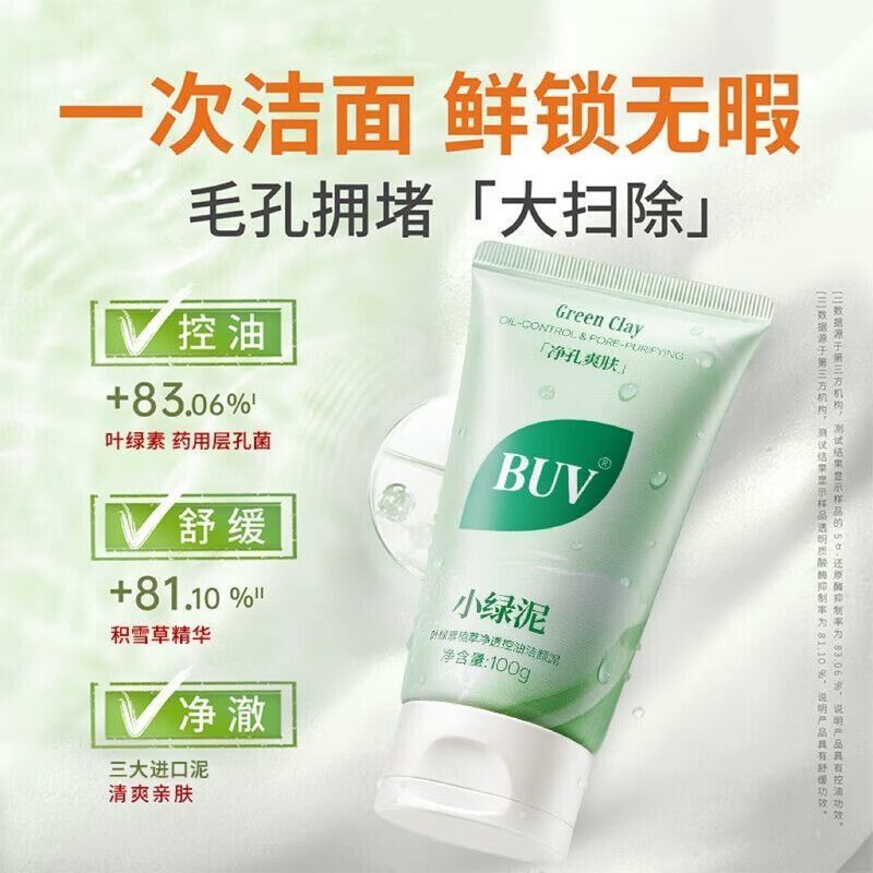 BUV叶绿素洗面奶保湿控油温和深层清洁收缩毛孔去黑头洁面乳刮码