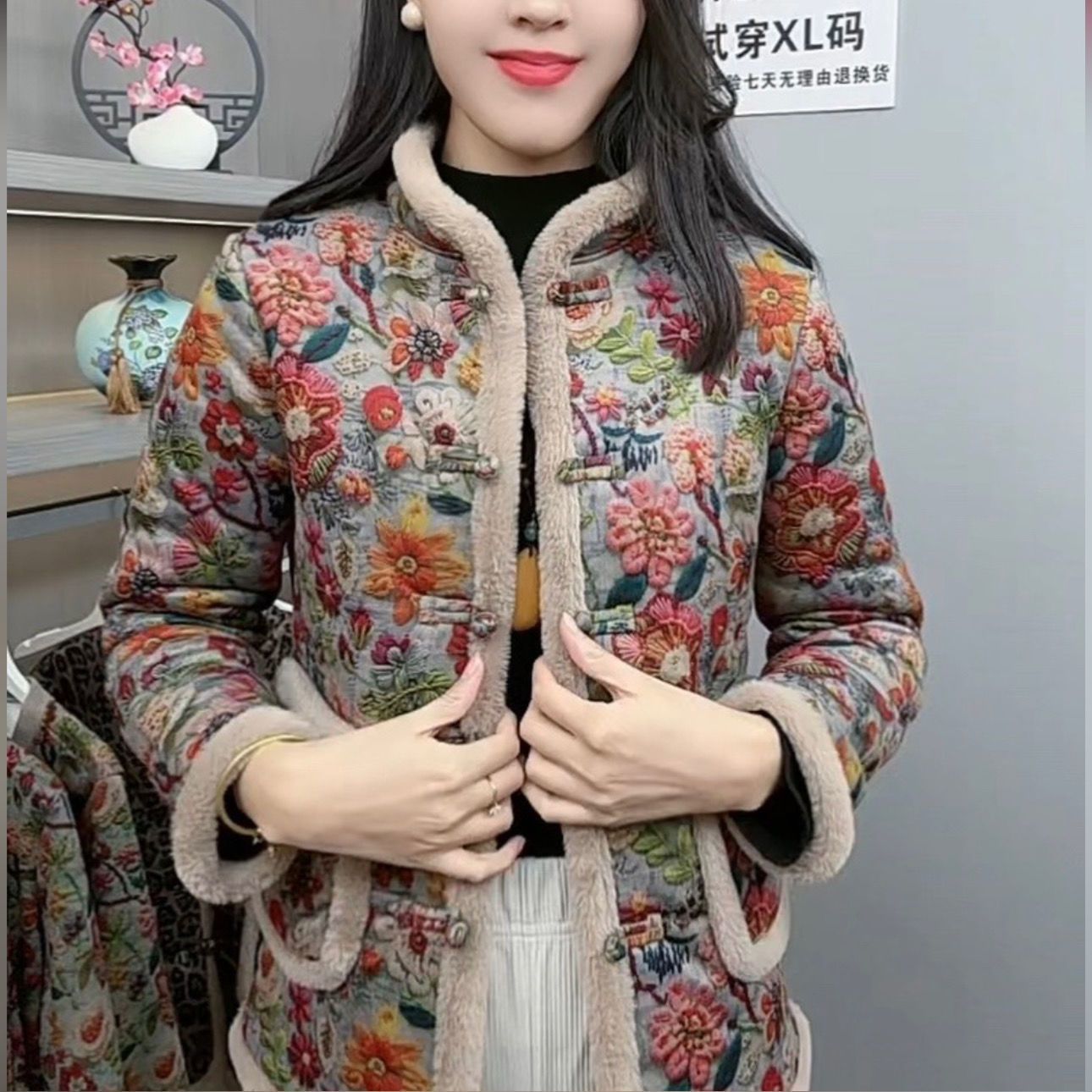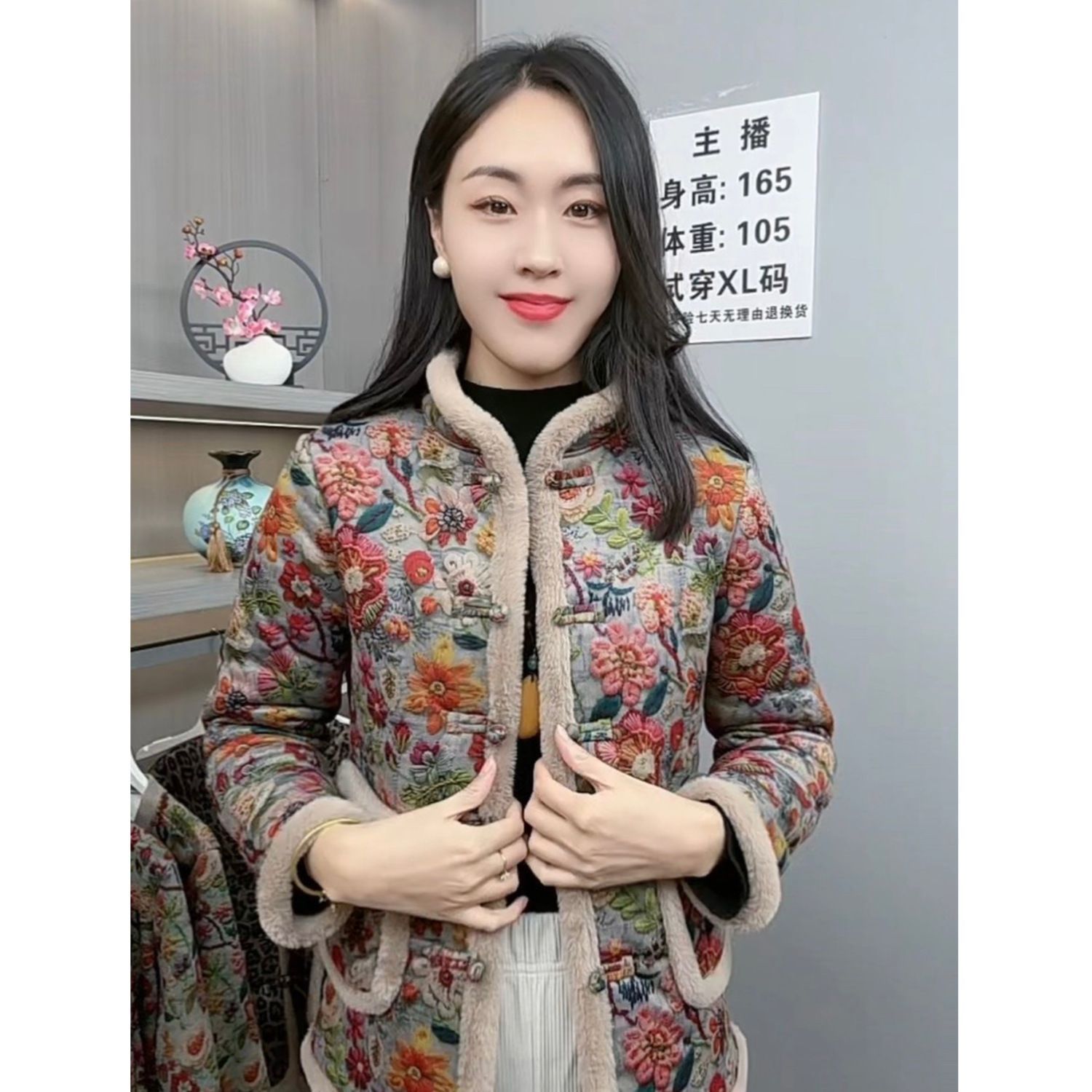 冬季新款妈妈加绒加厚棉衣棉服中老年碎花保暖时尚洋气外套棉袄女