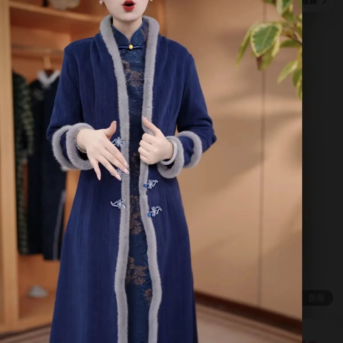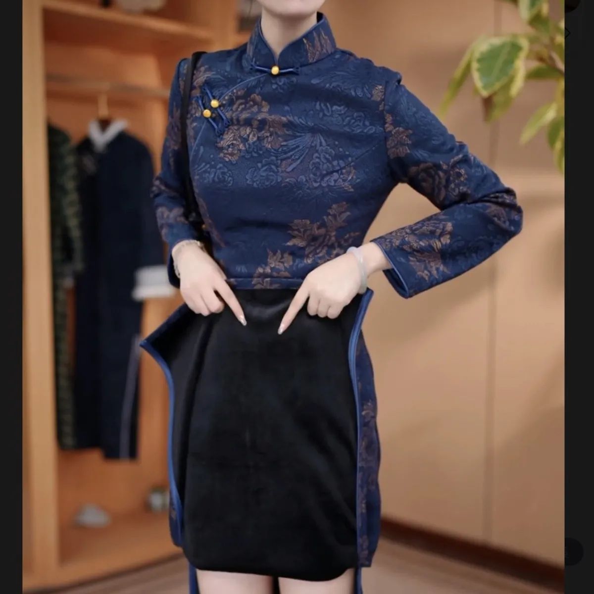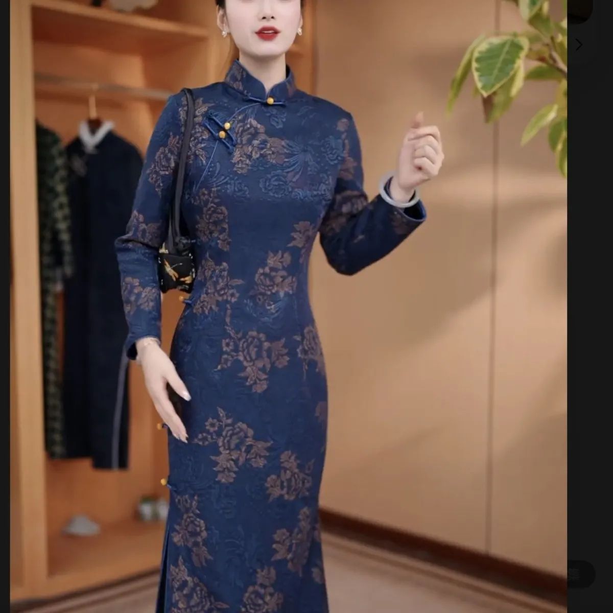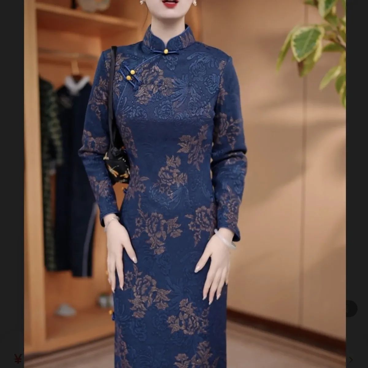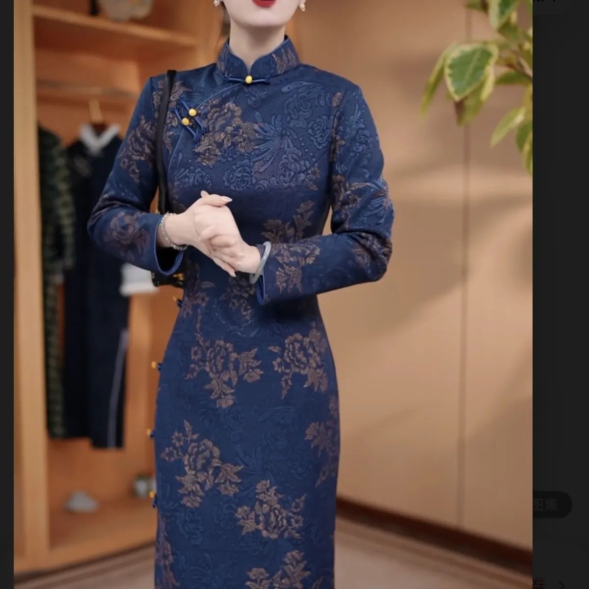 气质旗袍连衣裙2025高端冬季新中式加绒加厚提花中长款长袖显瘦