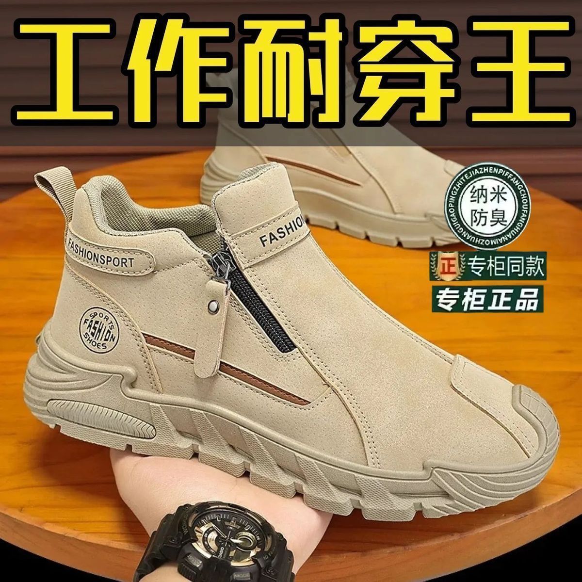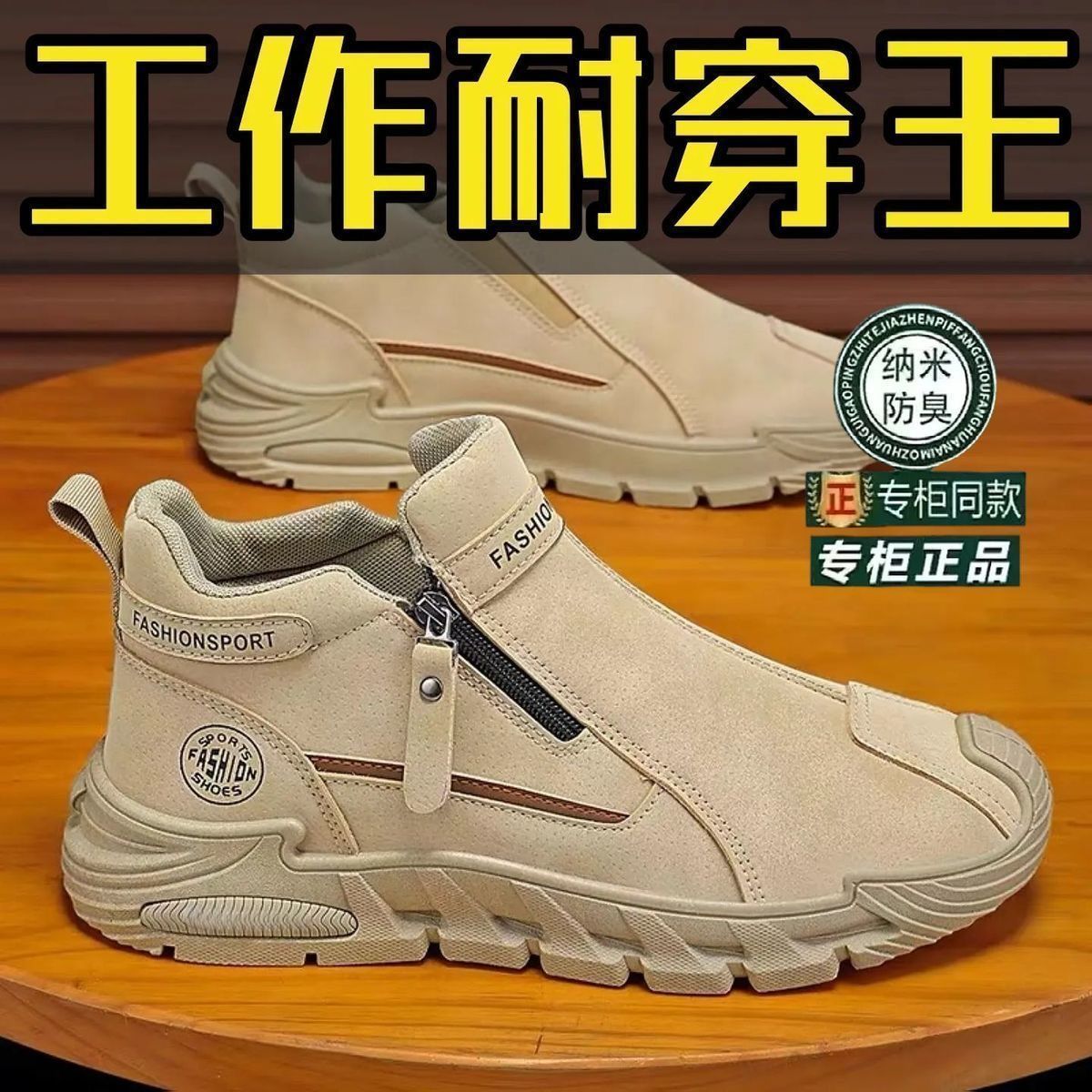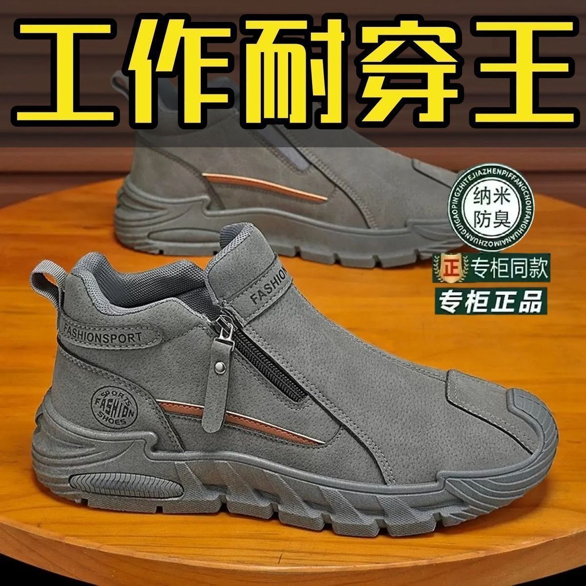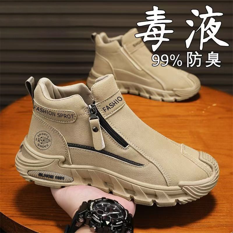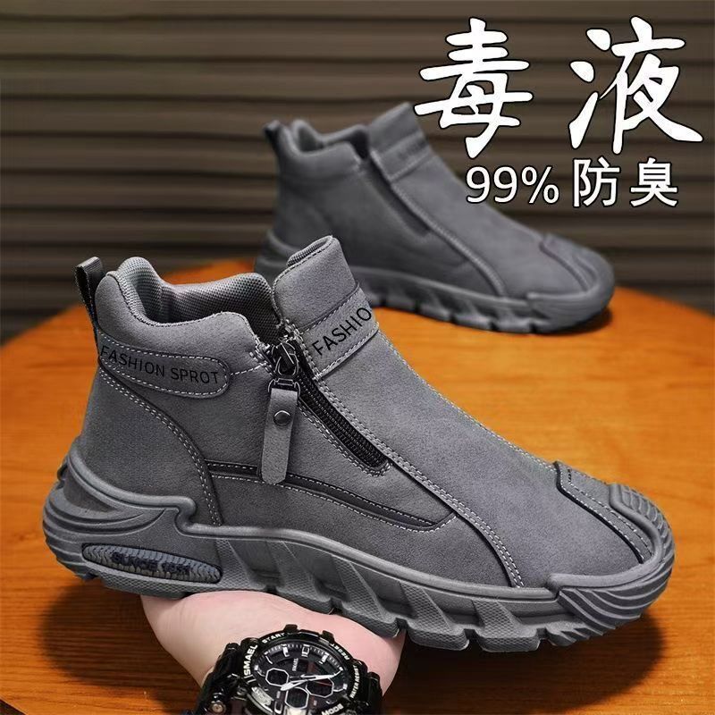 2026春季新款潮流男士防滑工装百搭男鞋高帮拉链一脚蹬厚底休闲鞋