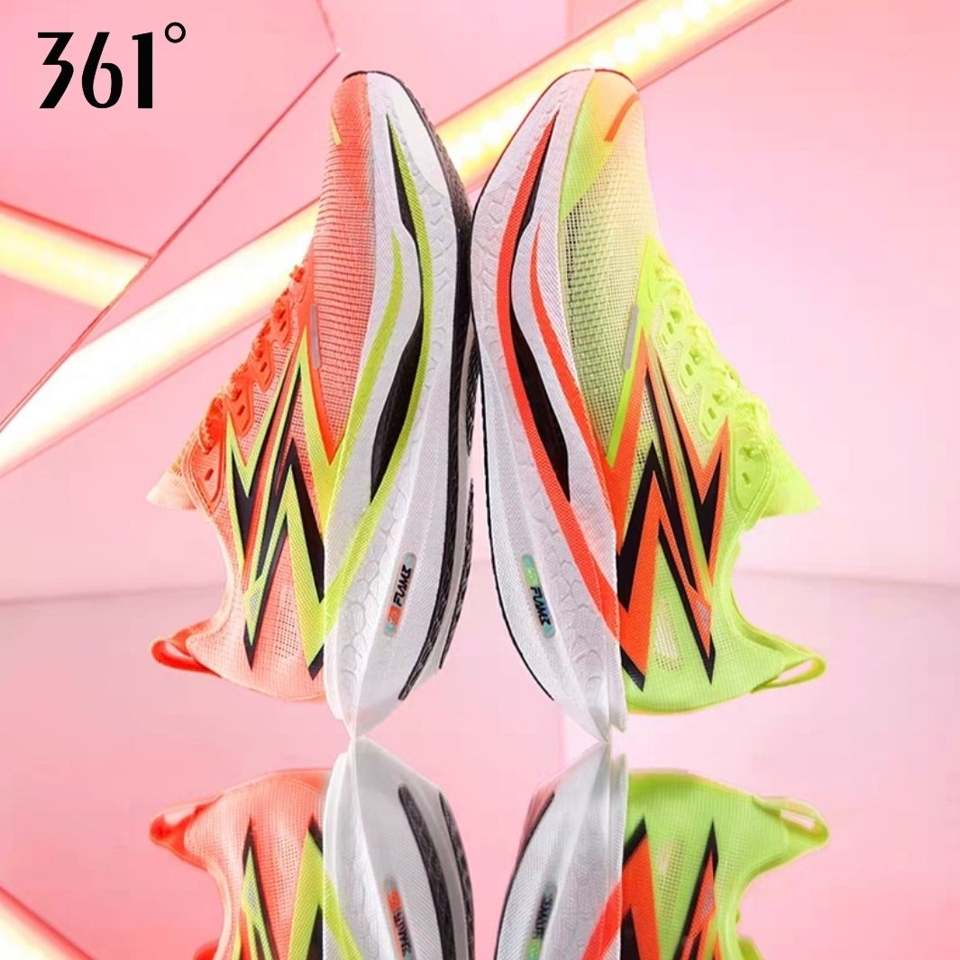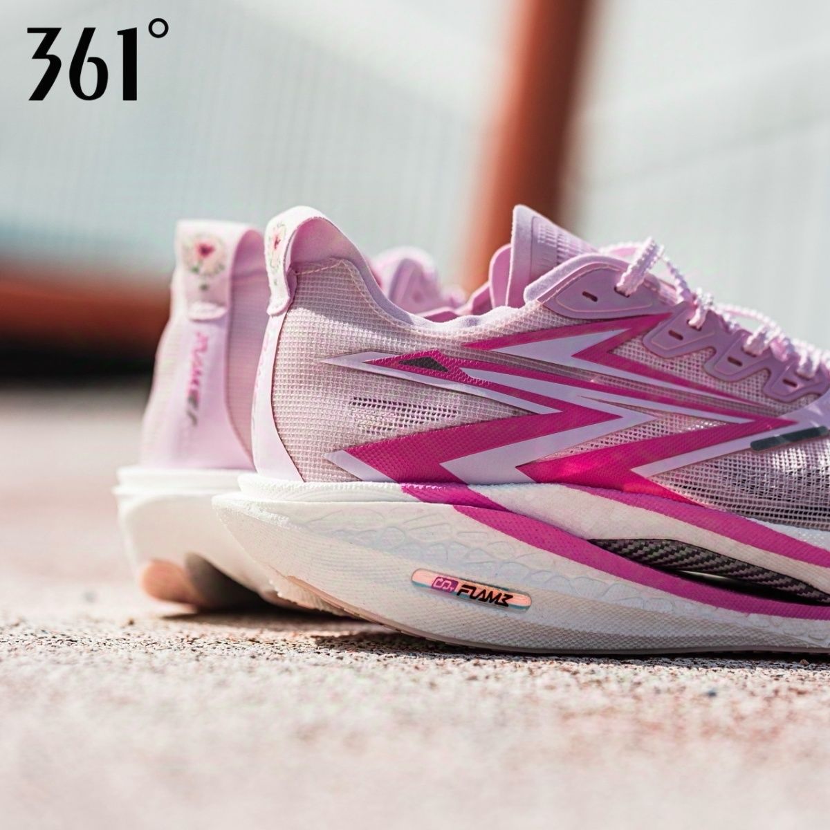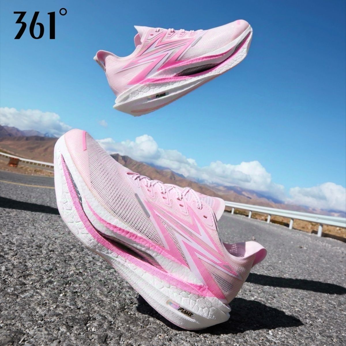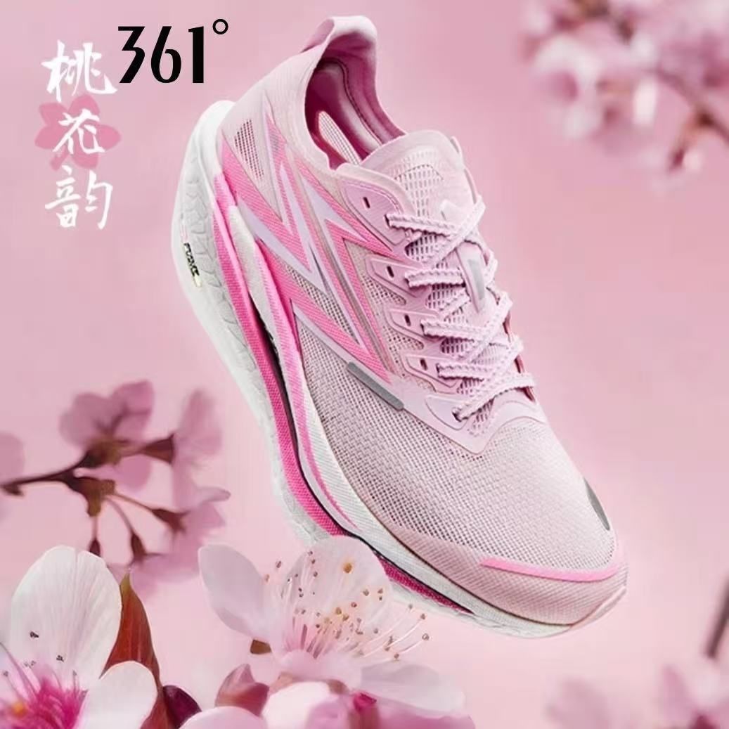 361°飞燃4.5桃花韵体测跑步鞋马拉松碳板竞速跑鞋减震透气运动鞋